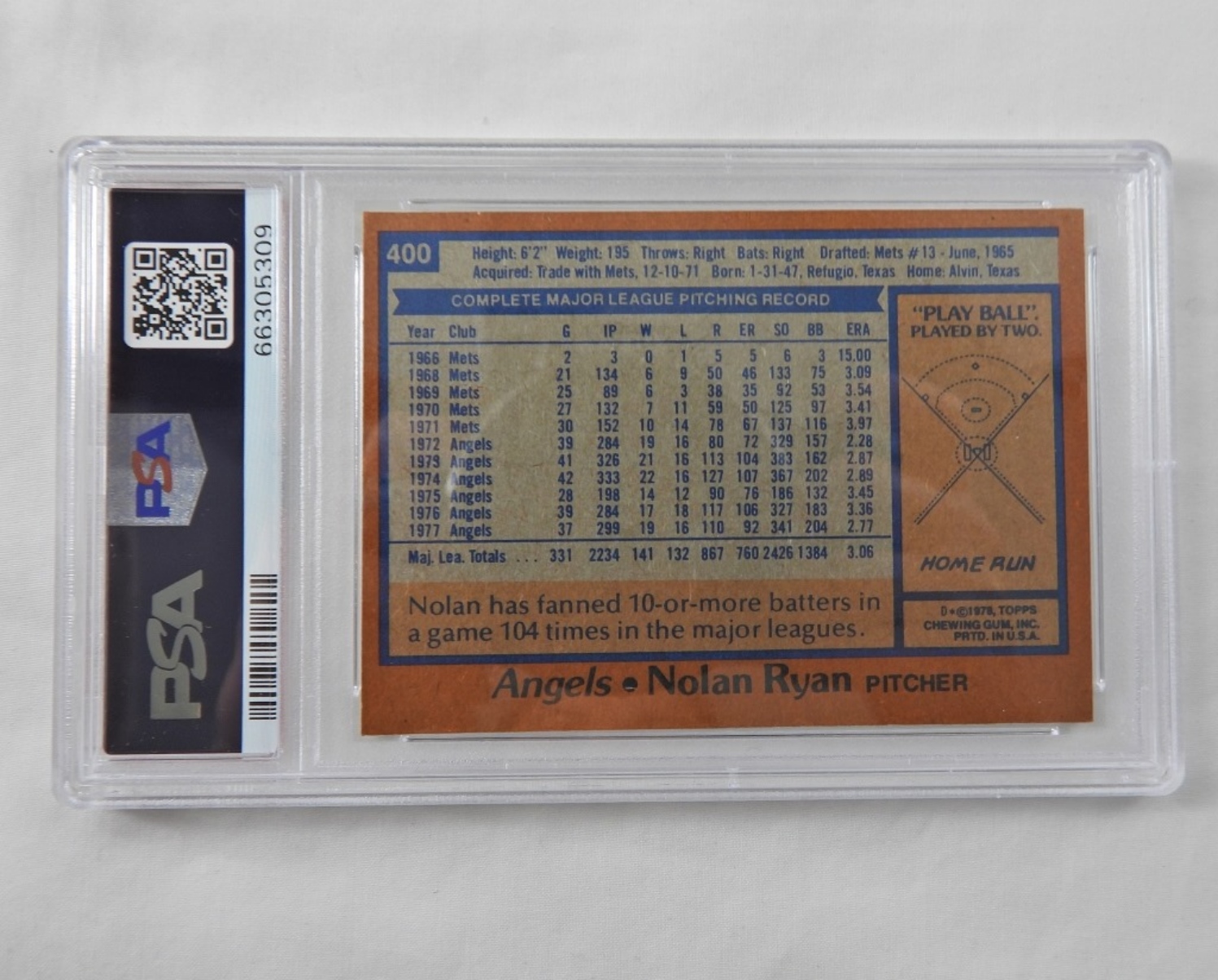 PSA TOPPS 1978 NOLAN RYAN #400 NM 7. 66305309