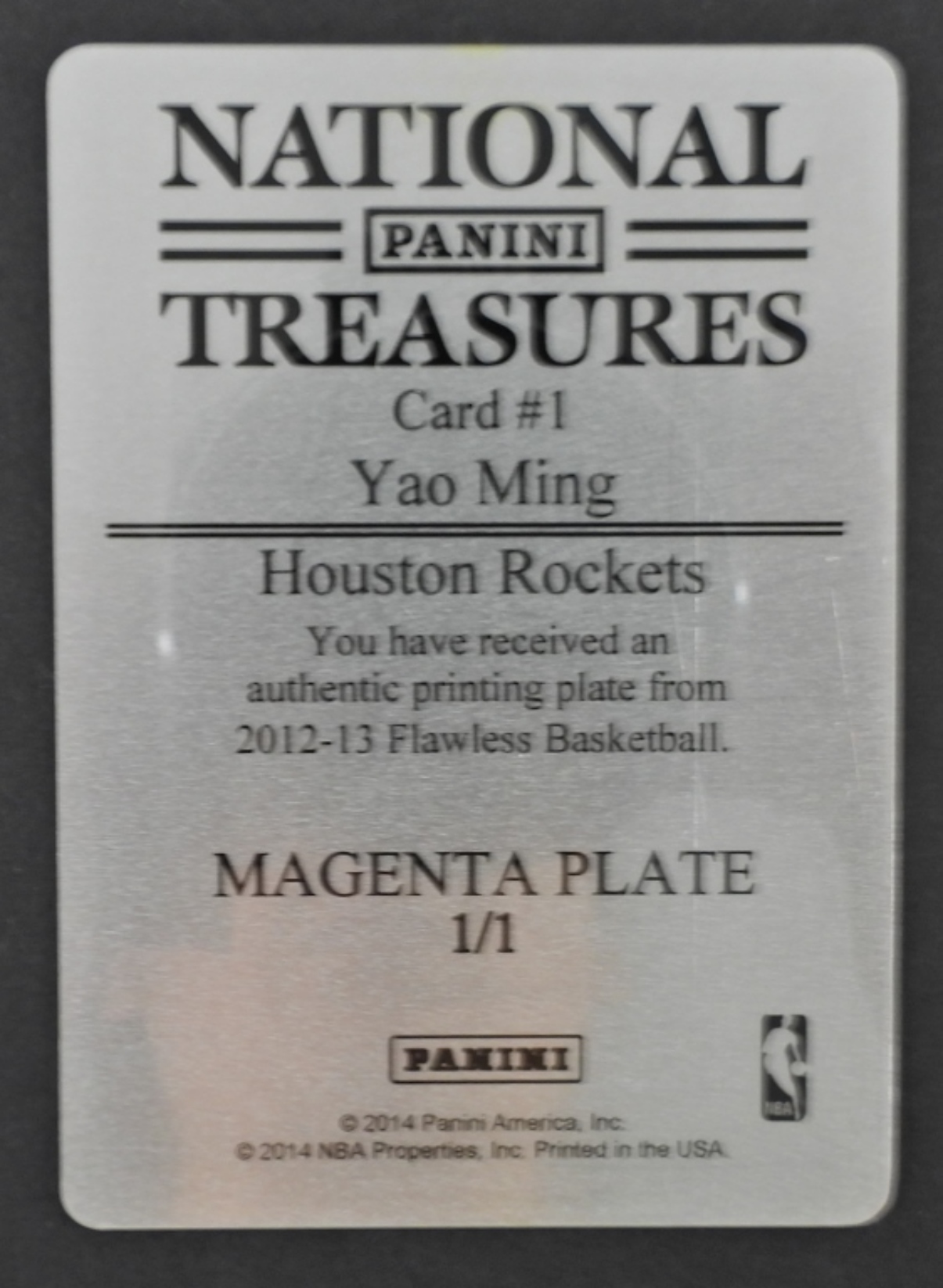 CARD #1, PRINTING PLATE FROM 2012-13 FLAWLESS BASKETBALL CARD, MAGENTA PLATE 1/1