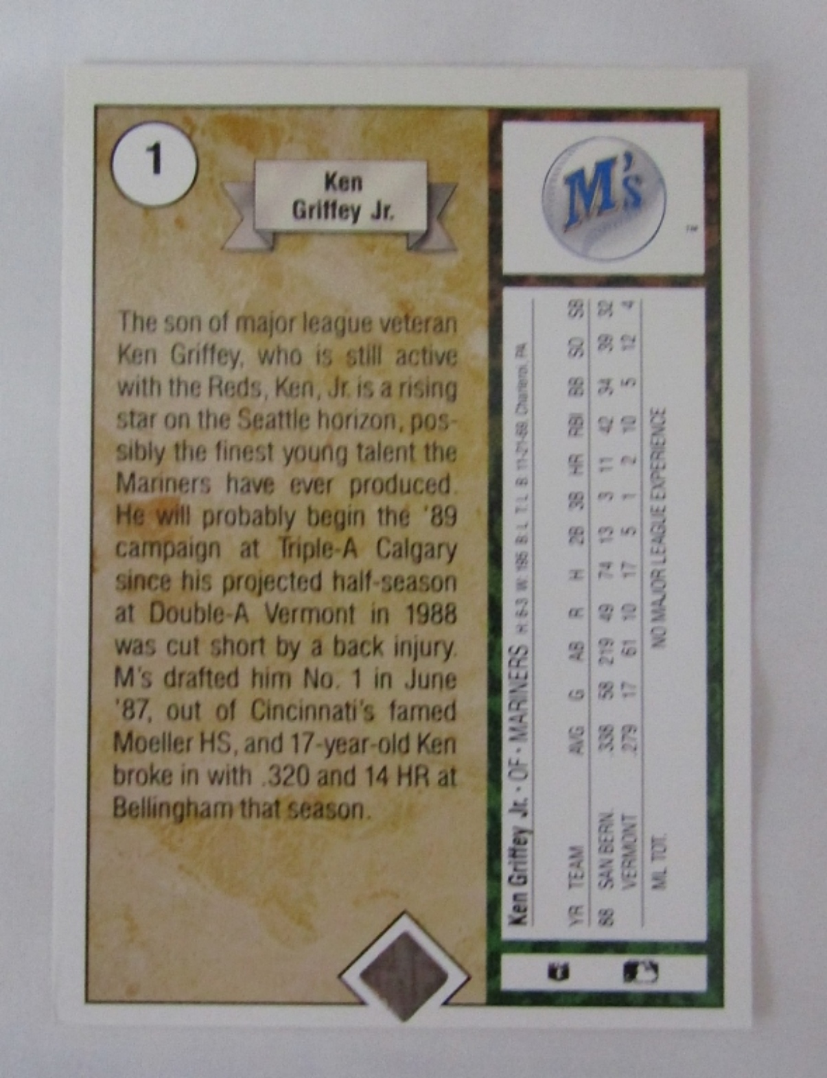1988 UPPDER DECK BASEBALL KEN GRIFFEY JR #1 ROOKIE CARD RC MARINERS