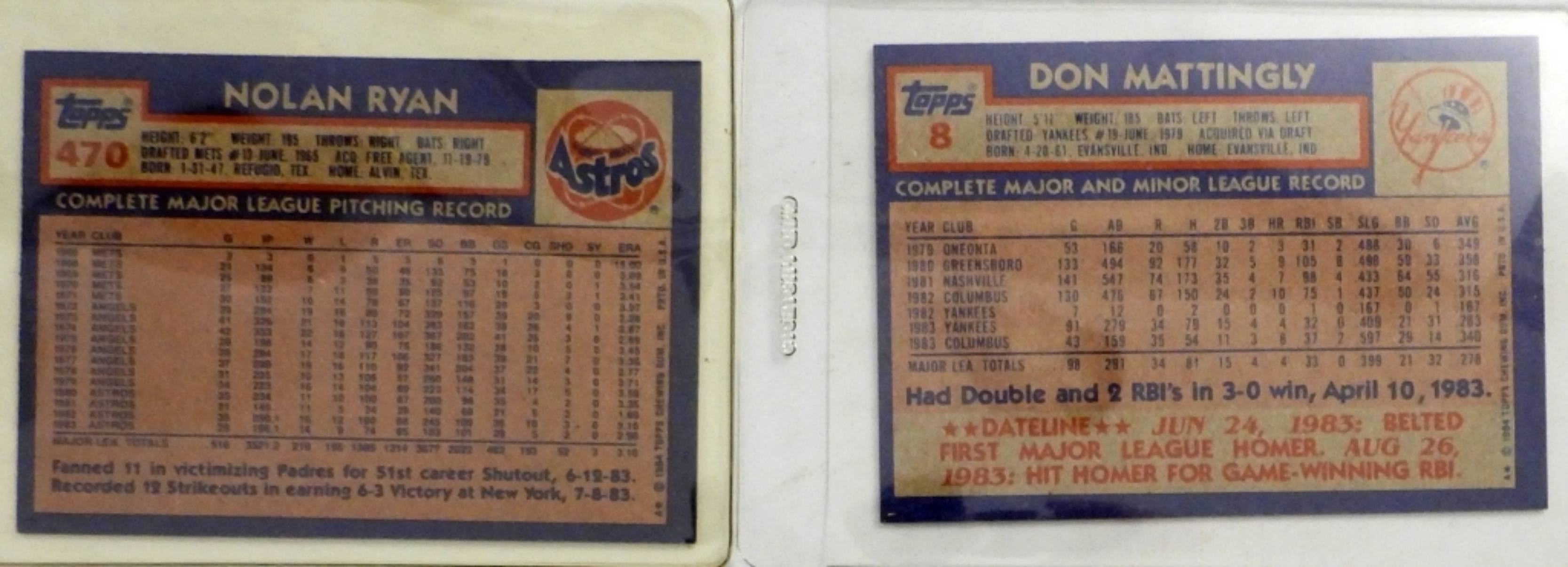INCLUDES MANY TEAMS, 1984, UNVERIFIED IF COMPLETED, MAY HAVE DUPLICATES, NOLAN RAYAN, DON MATTINGLY