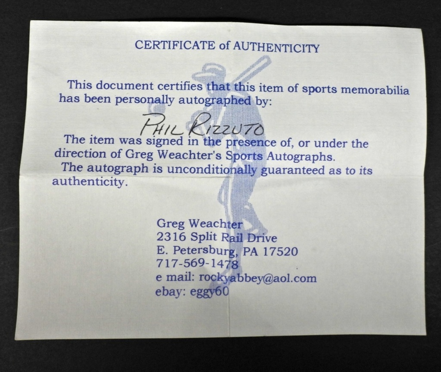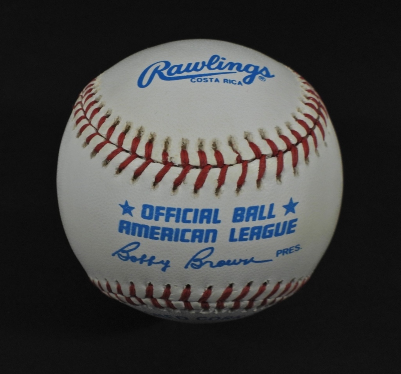 COA FROM GREG WEACHTER’S SPORTS AUTOGRAPHS, PETERSBURG PA, SIGNED ON A OFFICIAL AMERICAN LEAGUE BALL BOBBY BROWN, IN A CASE