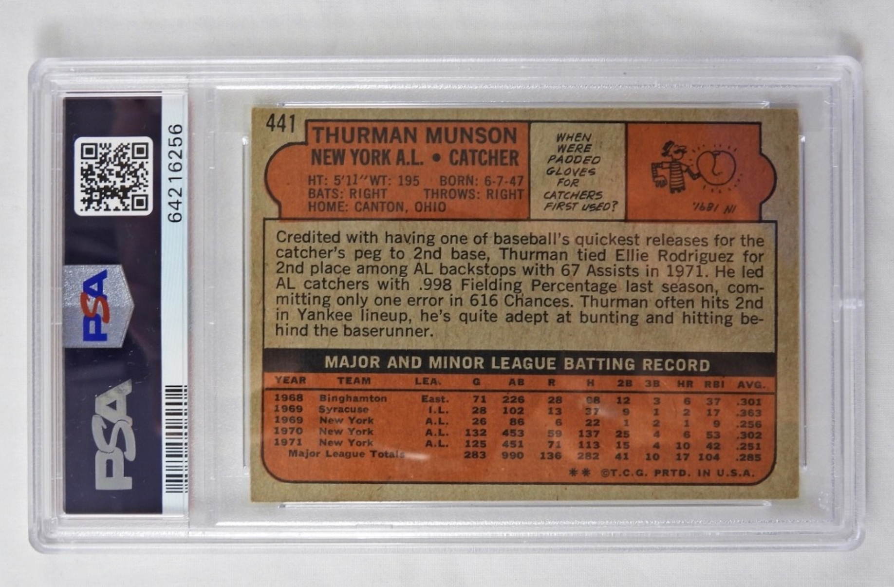 PSA TOPPS 1972 THURMAN MUNSON #441 EX-MT, 6, 64216256