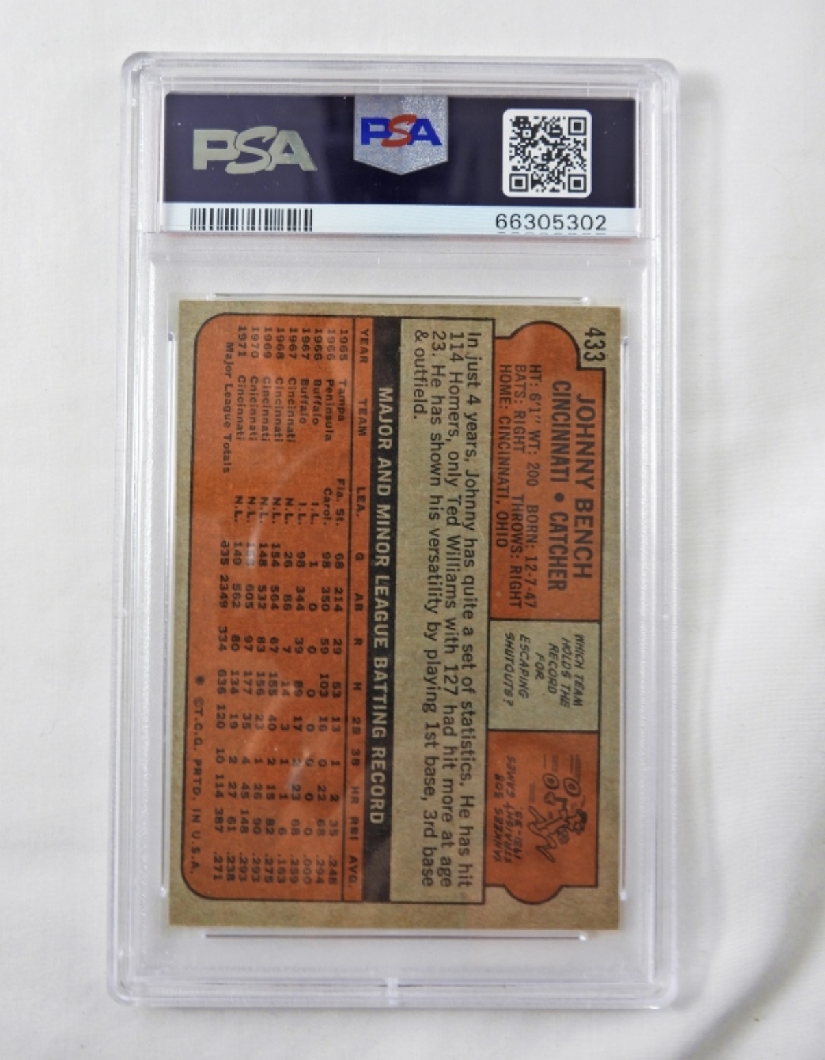 PSA TOPPS 1972 JOHNNY BENCH #433 NM 7, 66305302