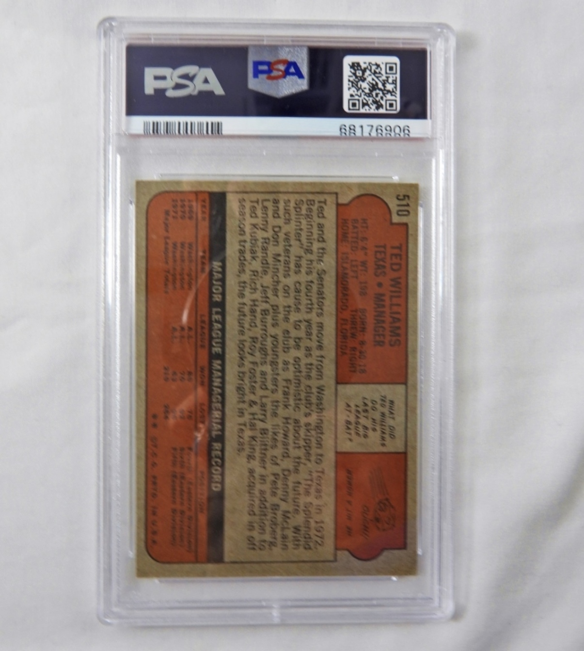 PSA TOPPS 1972 TED WILLIAMS #510 EX 5, 68176906