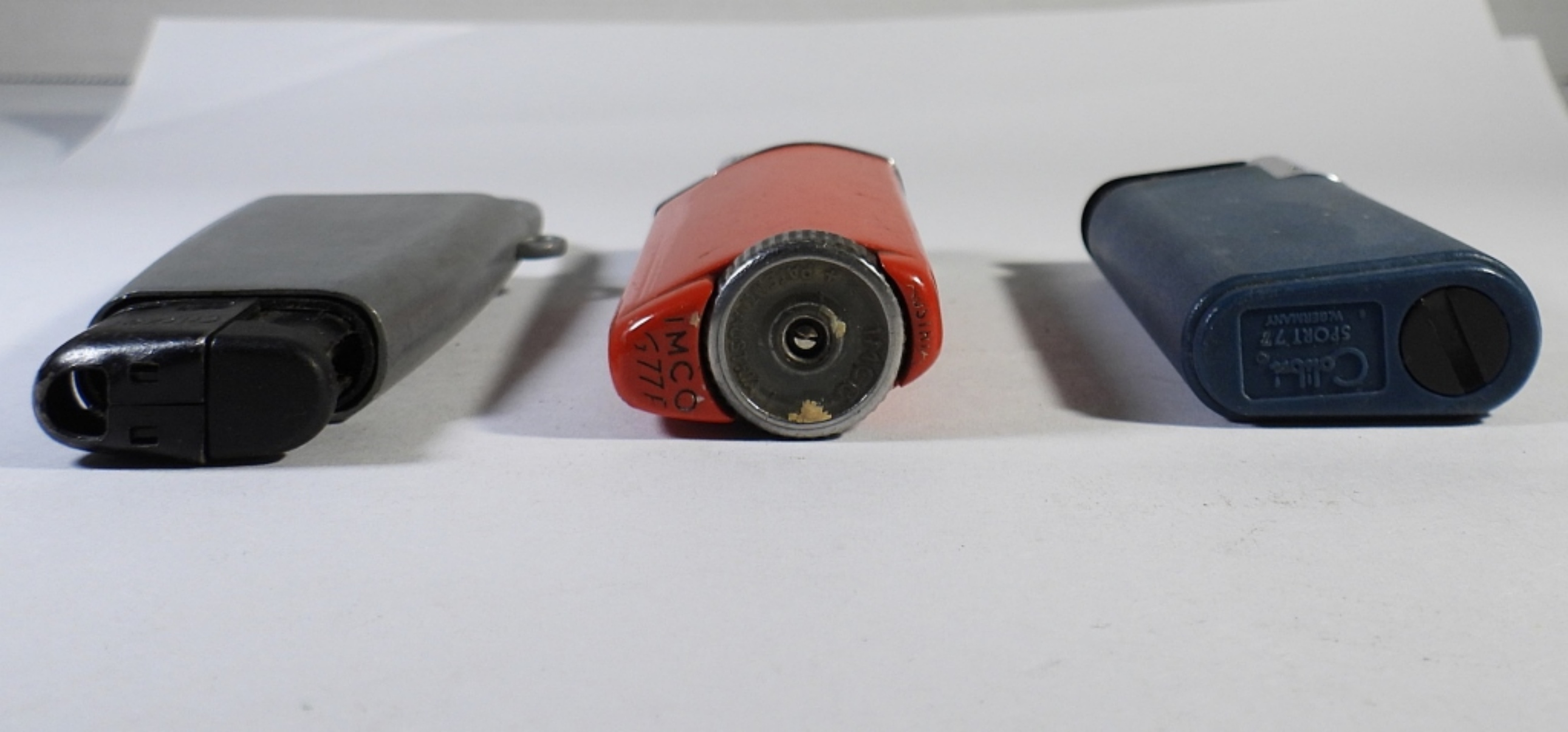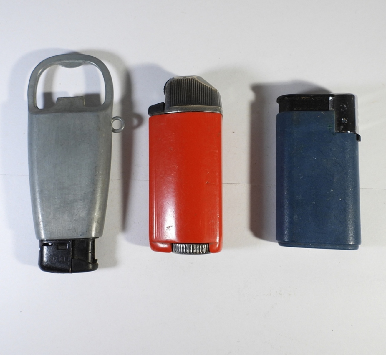1 BOTTLE OPENER SILVER TONED LIGHTER, 2 COLOR LIGHTERS