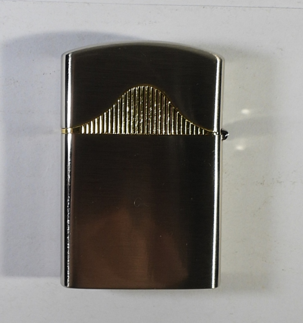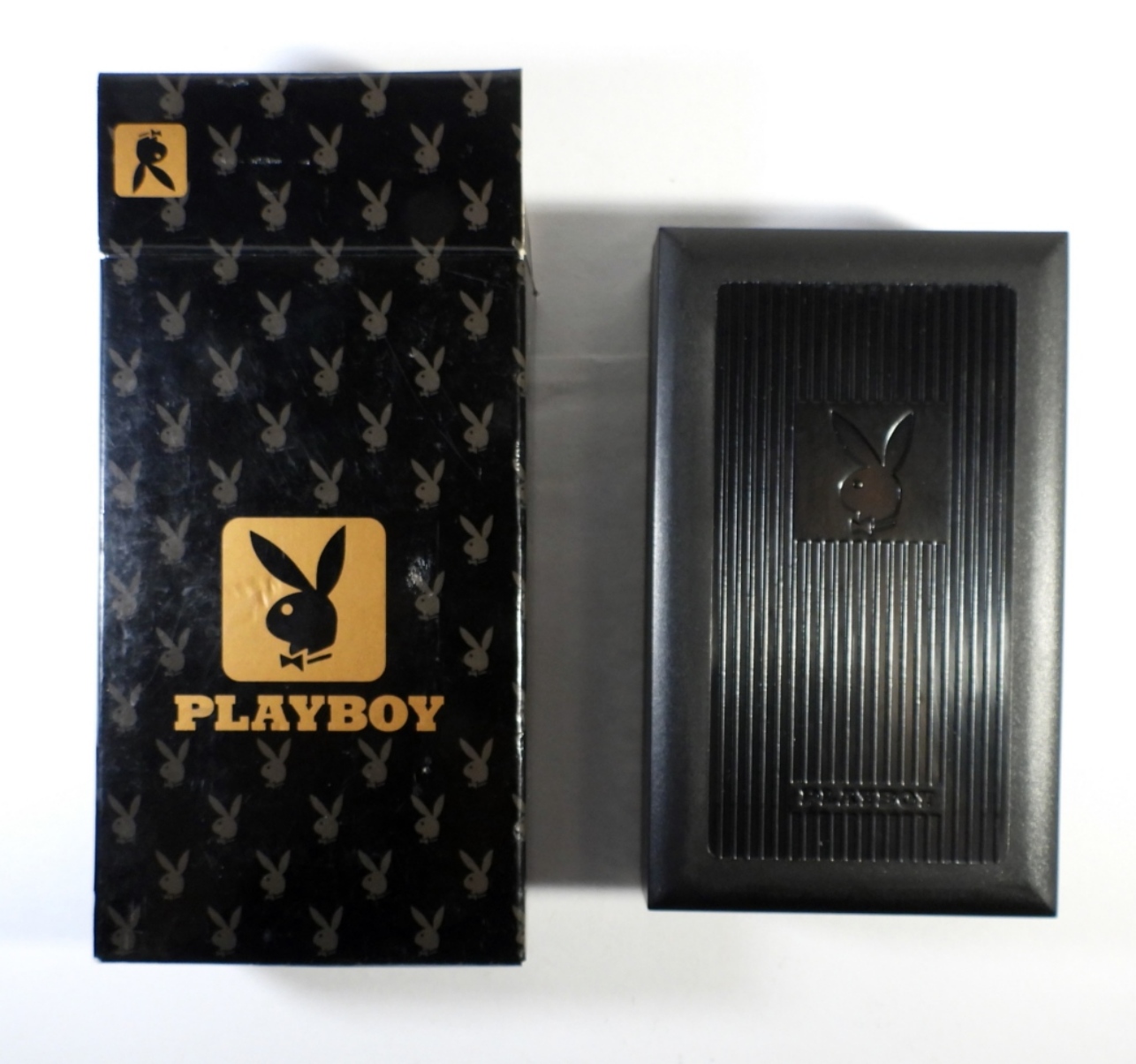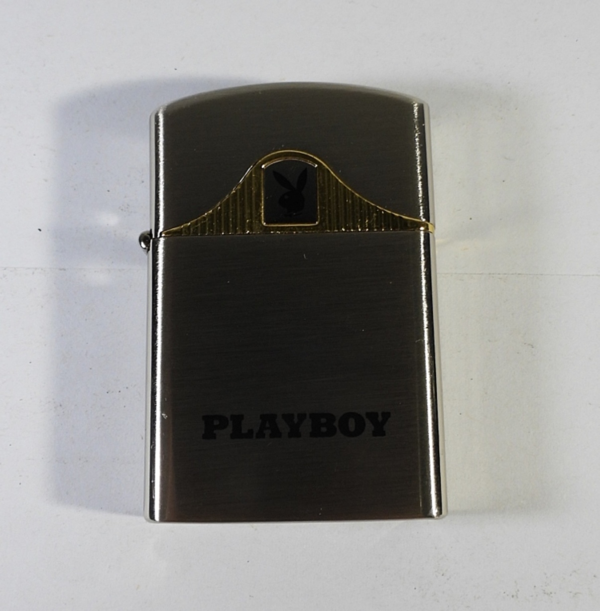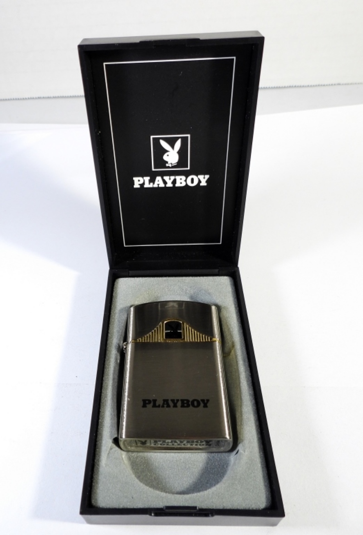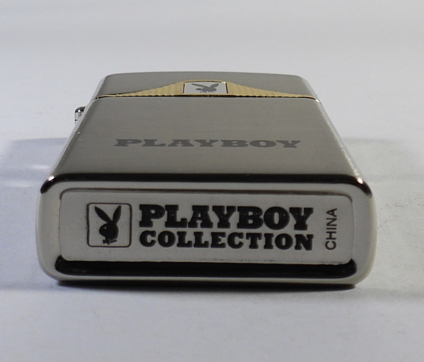 PLAYBOY SILVER TONED LIGHTER WITH GOLD TONED ACCENTS AND IN ORIGINAL PACKAGING