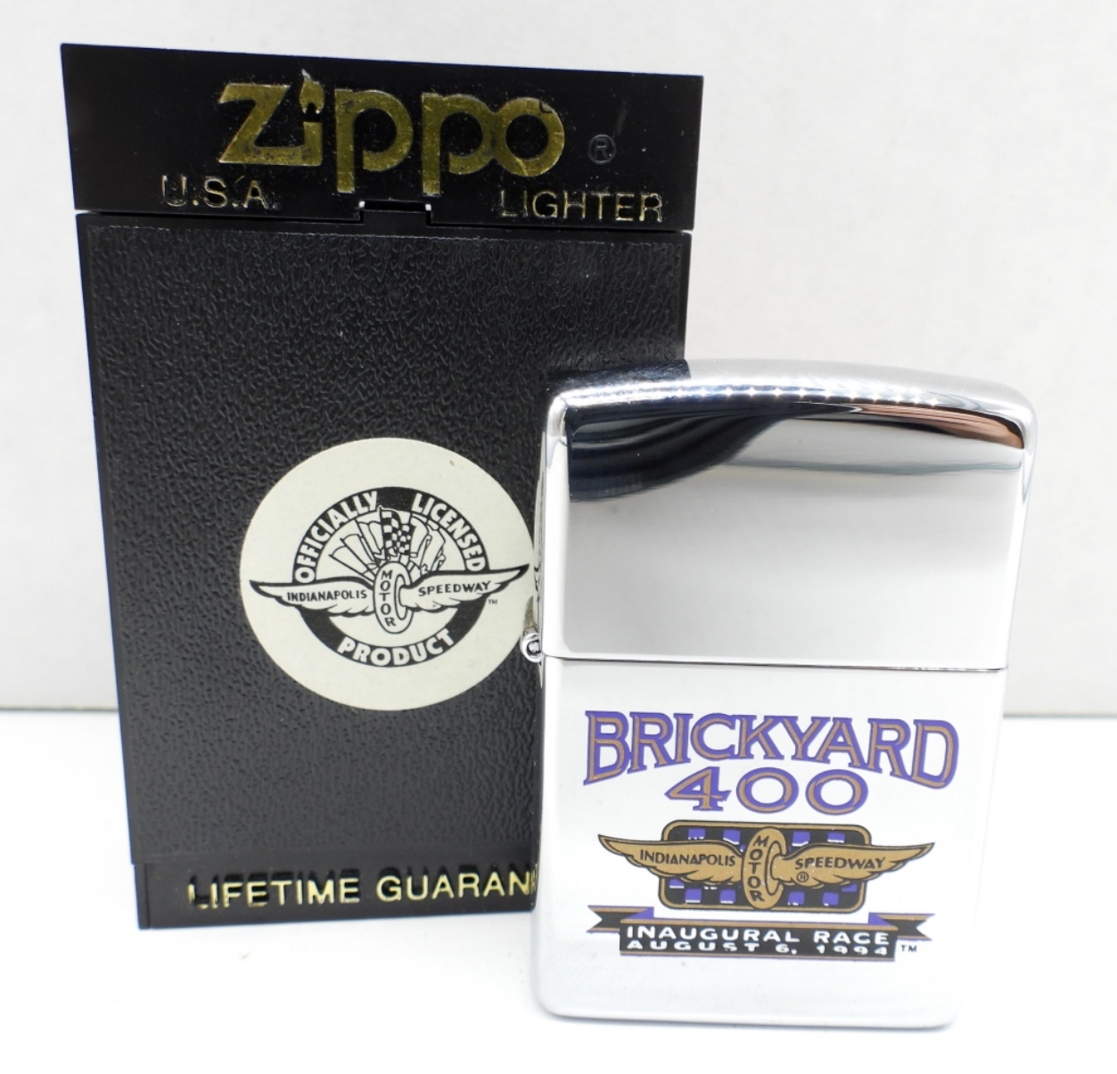 OFFICIALLY LICENSED PRODUCT OF THE INDIANAPOLIS MOTOR SPEEDWAY, BRICKYARD 400, INAUGURAL RACE AUGUST 6, 1994, IN ZIPPO BOX