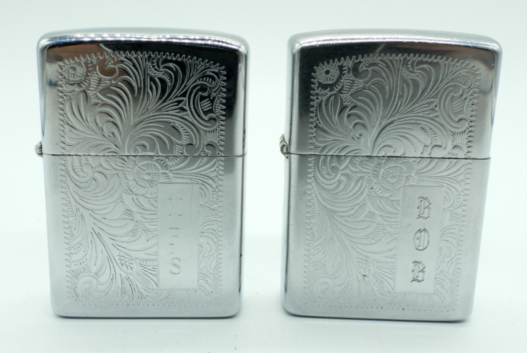 FIRED, PRETTY ETCHED DESIGN, BOTH ENGRAVED ON THE RIGHT CORNER, “MFS” AND “BOB”