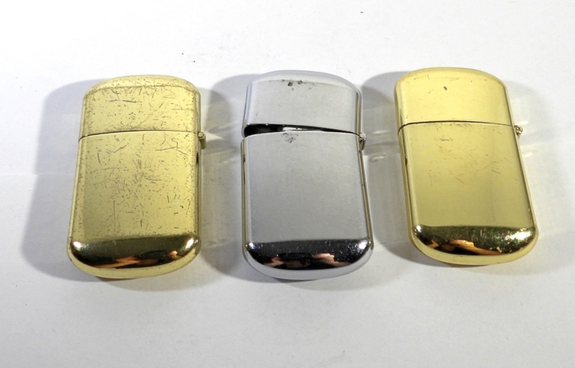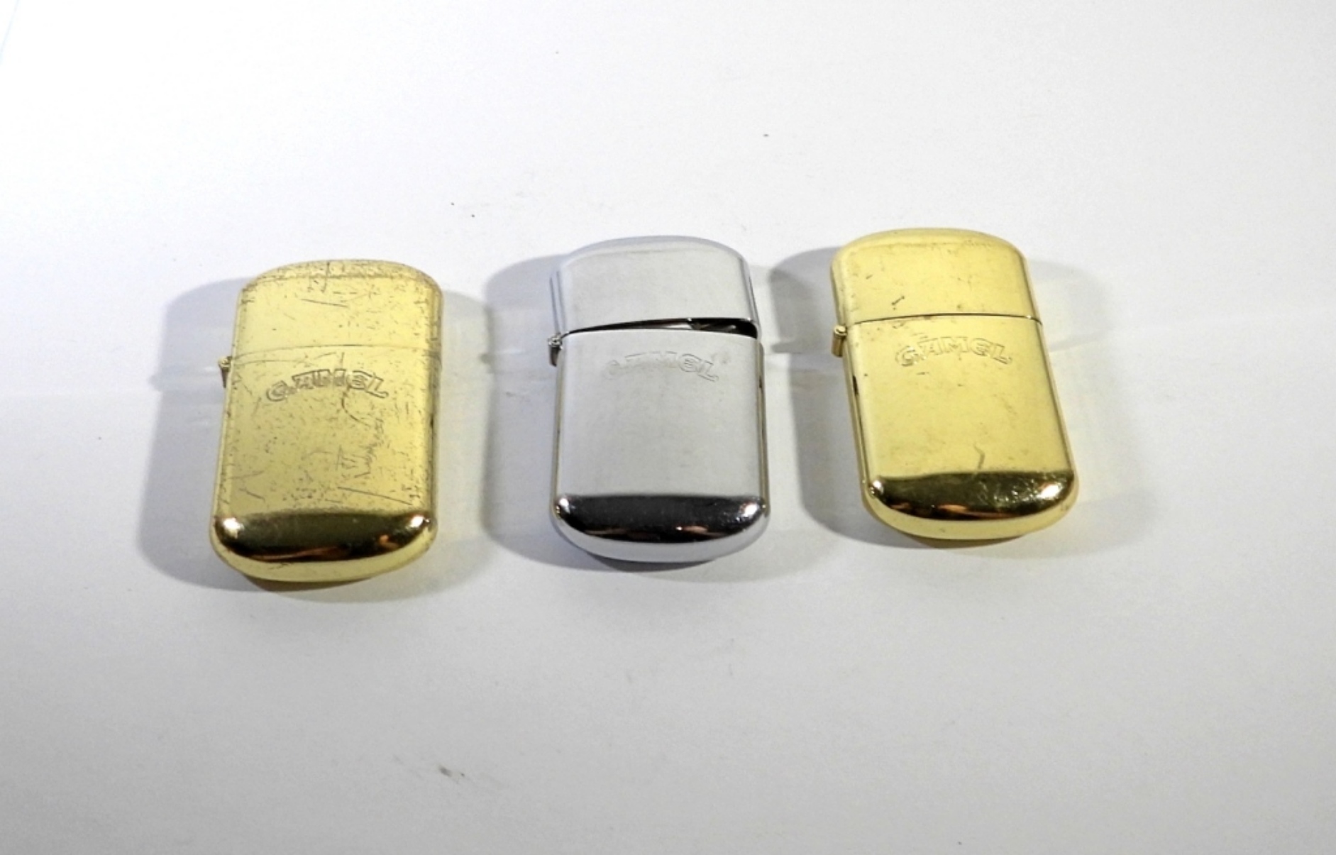 2 GOLD TONED 1 SILVER TONED CAMEL BRAND LIGHTERS