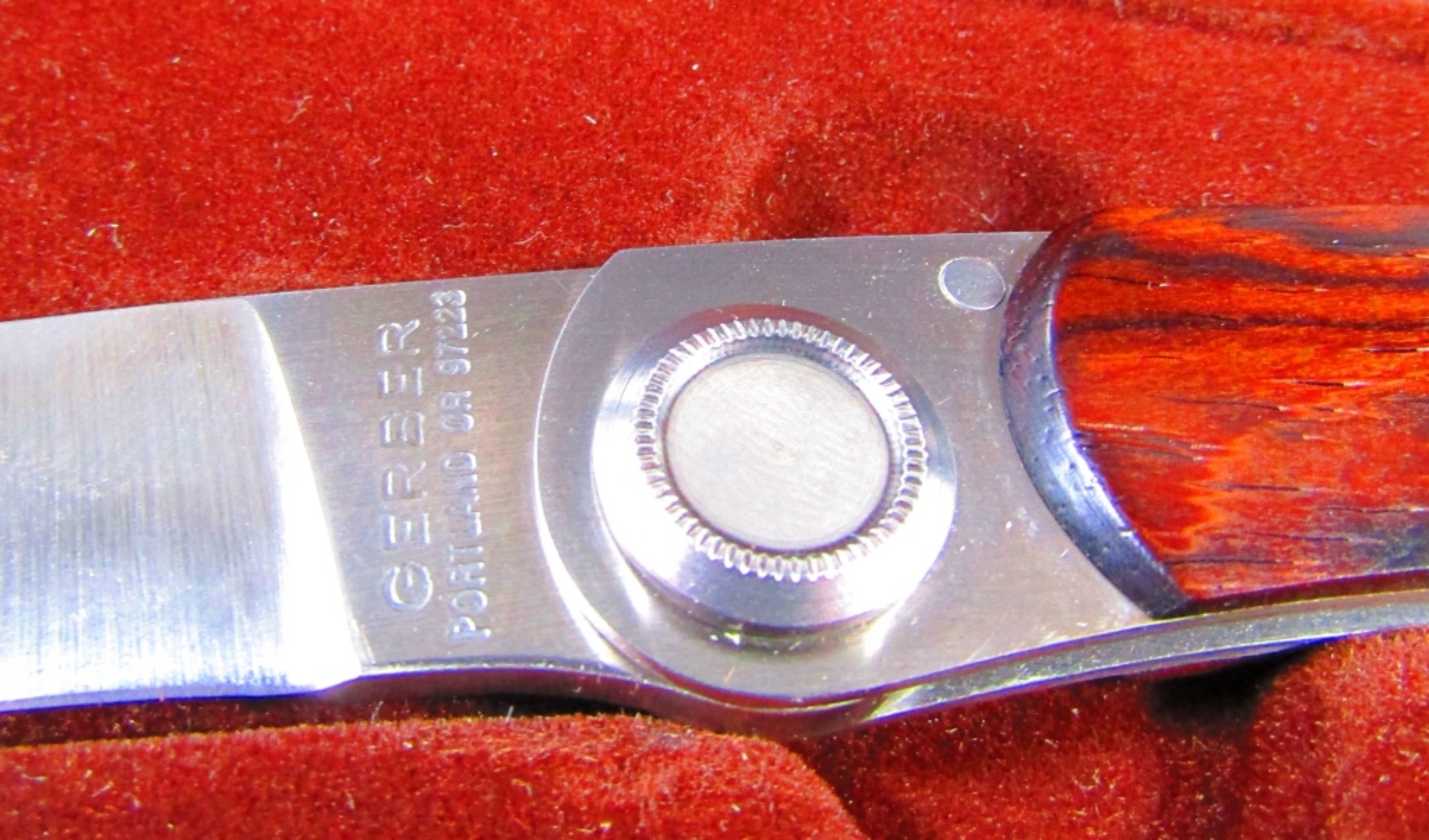 VINTAGE PAUL KNIFE BY GERBER, DARK WOOD HANDLE MODEL PW2 COMES IN ORIGINAL CASE