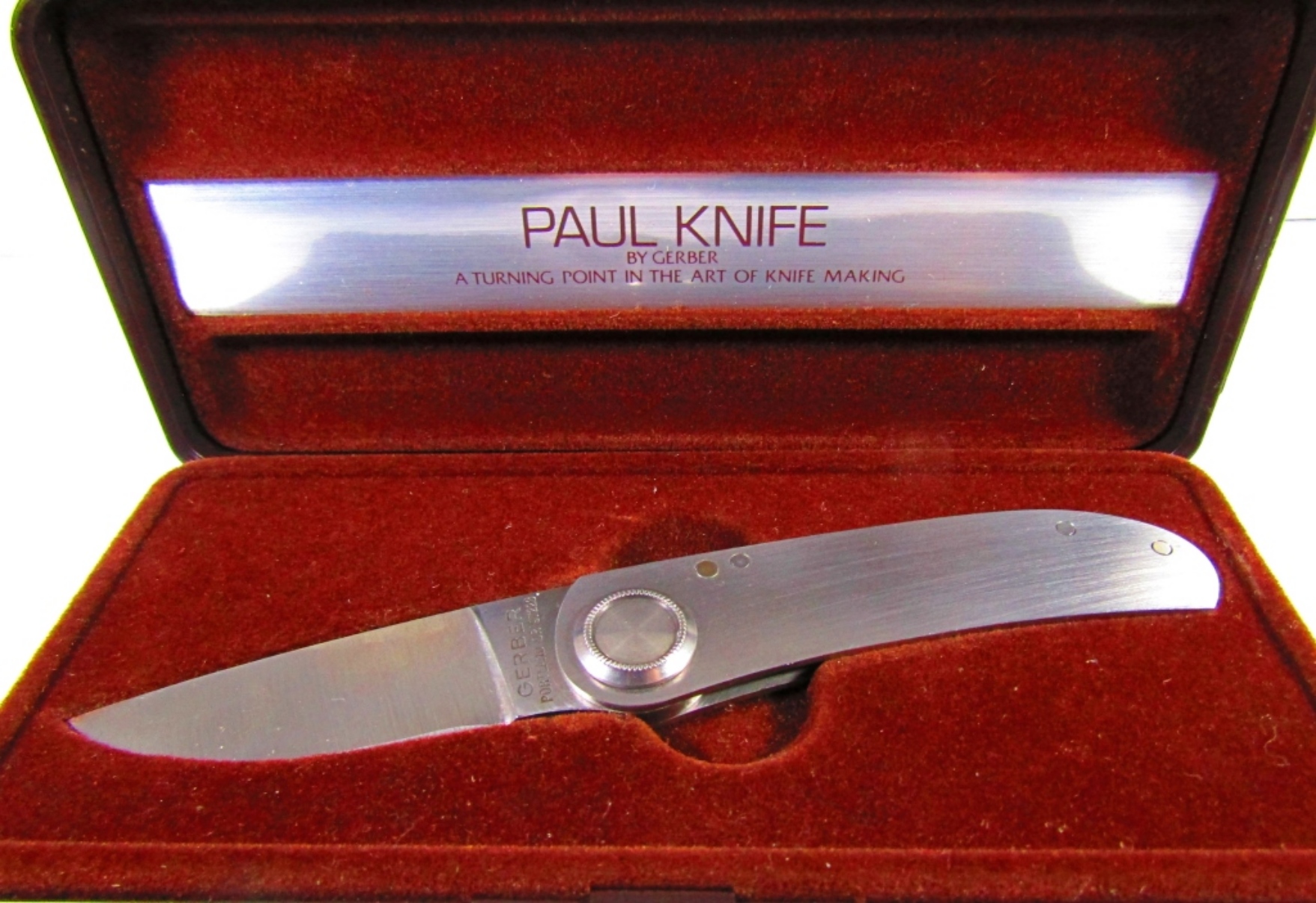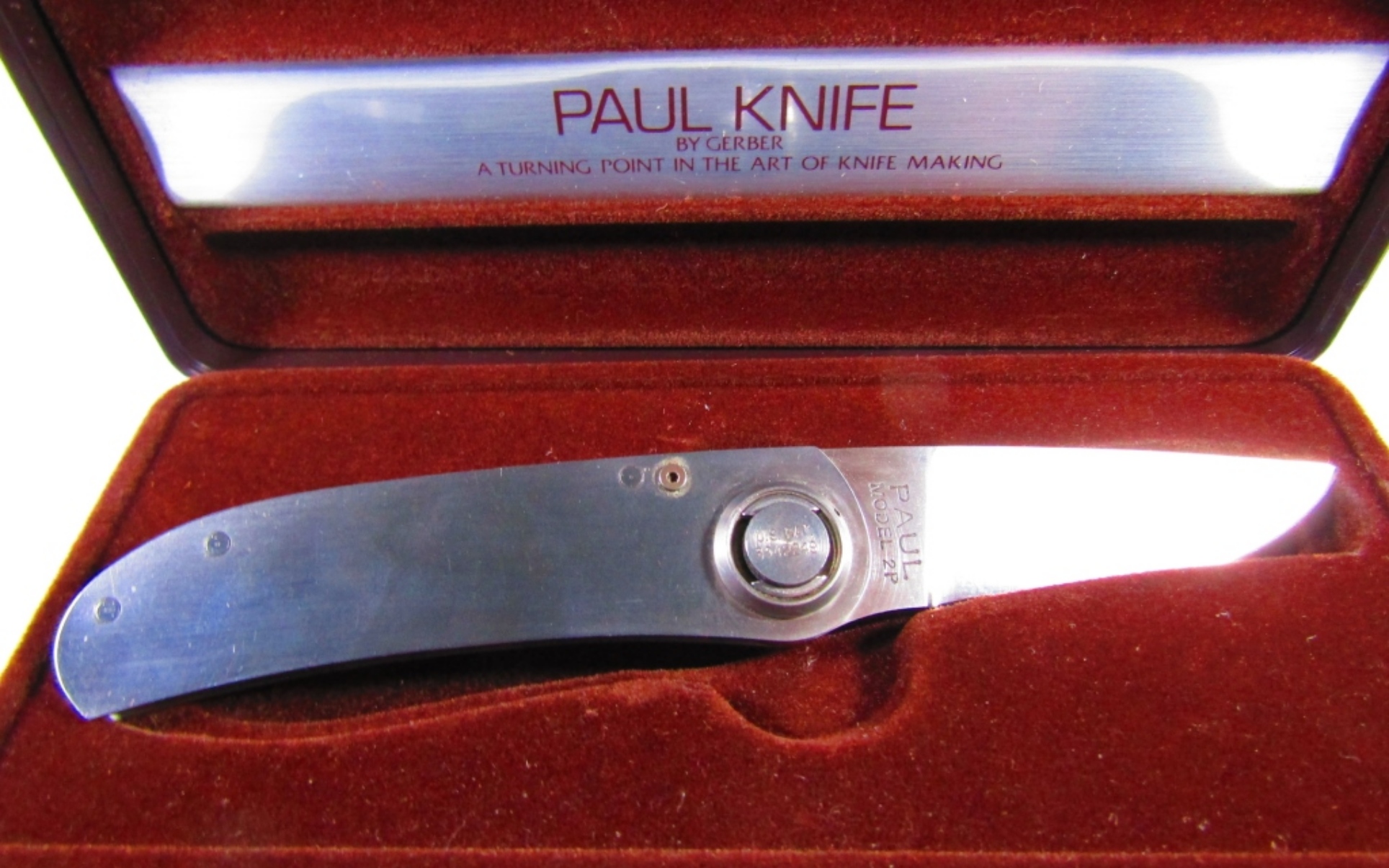 VINTAGE PAUL KNIFE BY GERBER, ALL METAL HANDLE MODEL 2P IN ORIGINAL CASE