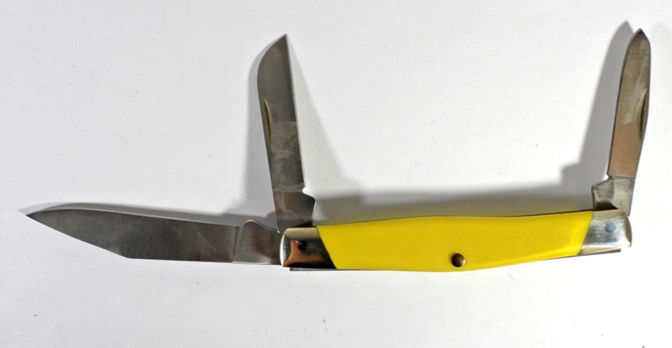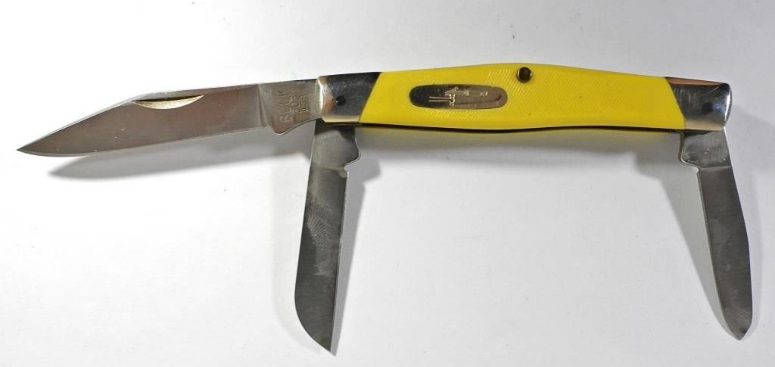 VINTAGE BUCK 3 BLADE KNIFE MODEL CADET 303 YELLOW