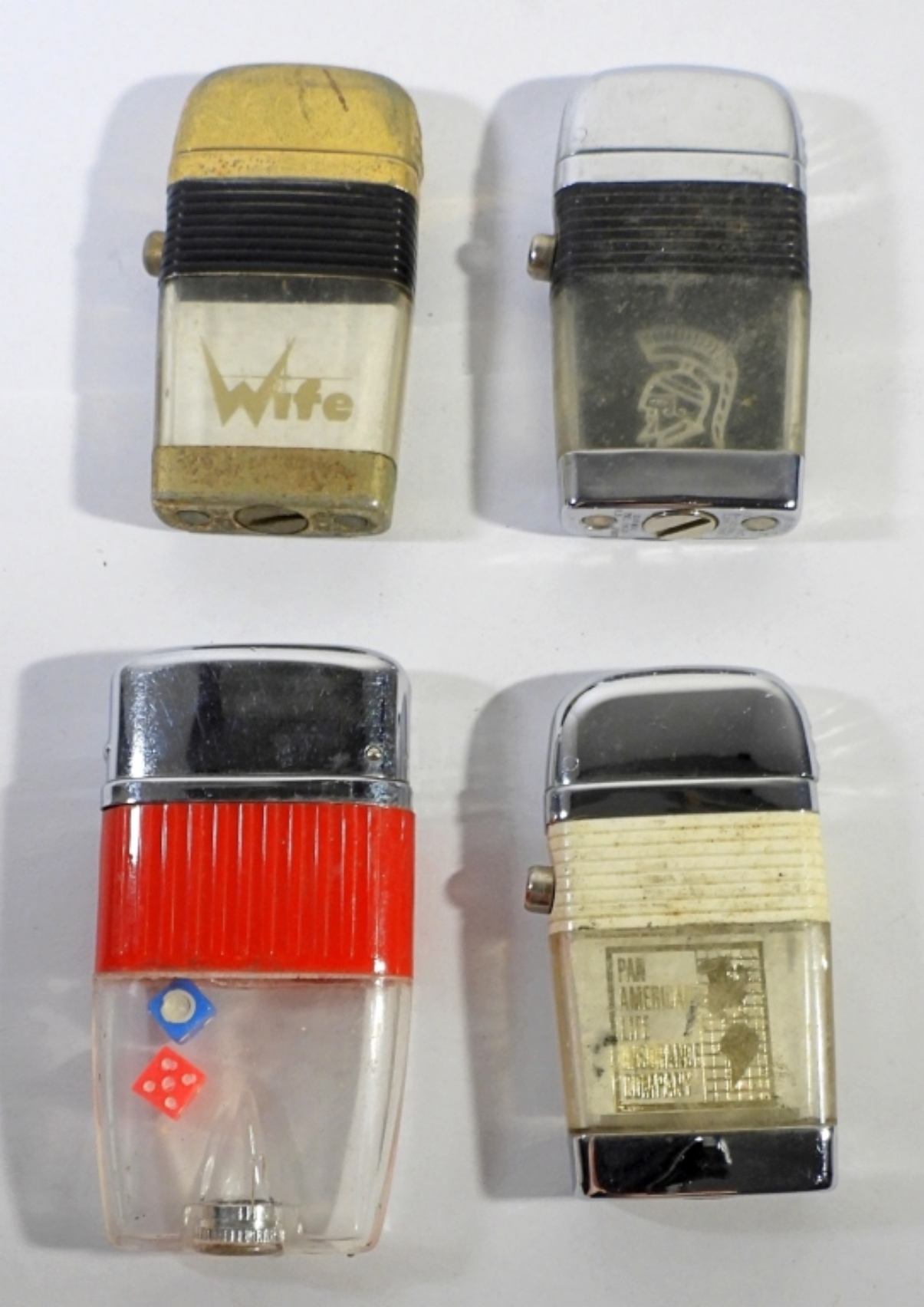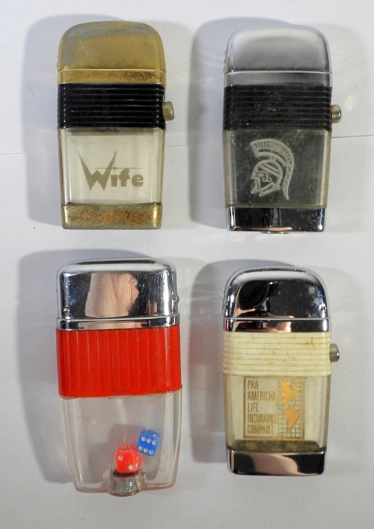 1 DICE THEME LIGHTER, 1 WIFE LIGHTER, 1 SPARTAN LIGHTER AND 1 PAN AMERICAN LIFE INSURANCE COMPANY LIGHTER