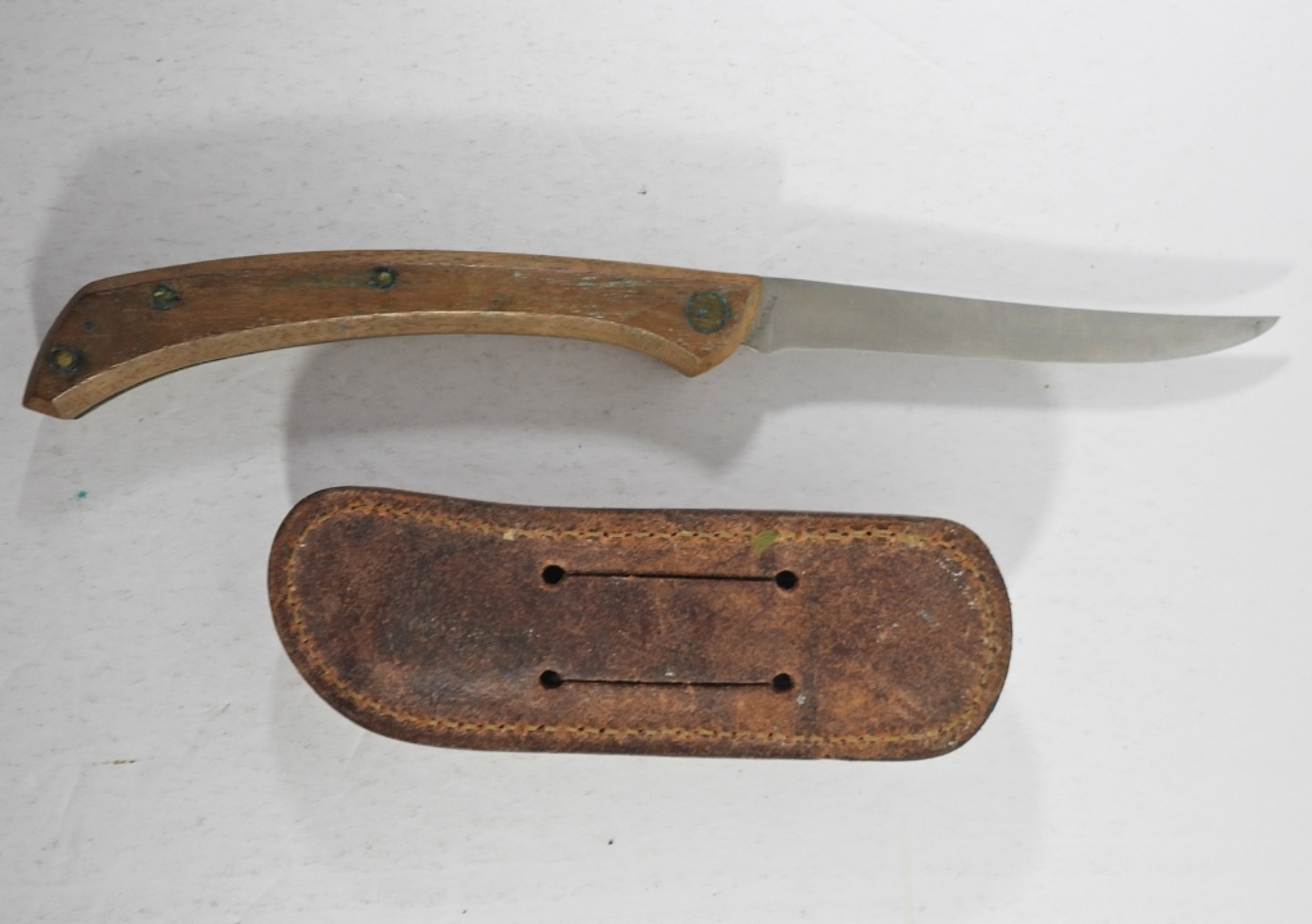 CHICAGO CUTLERY-THE TRAVELER FOLDING KNIFE AND SHEATH. LOOKS USED BUT IN GOOD CONDITION.