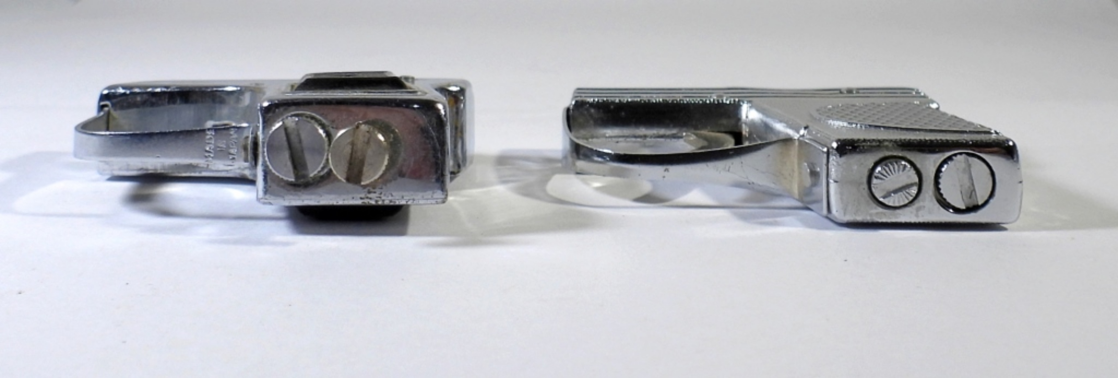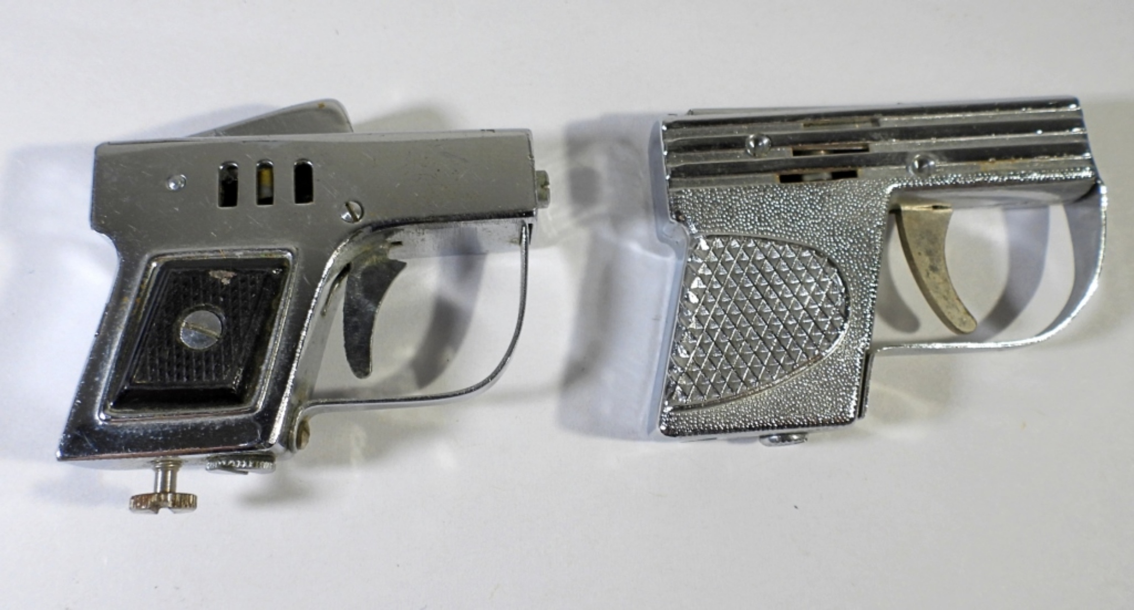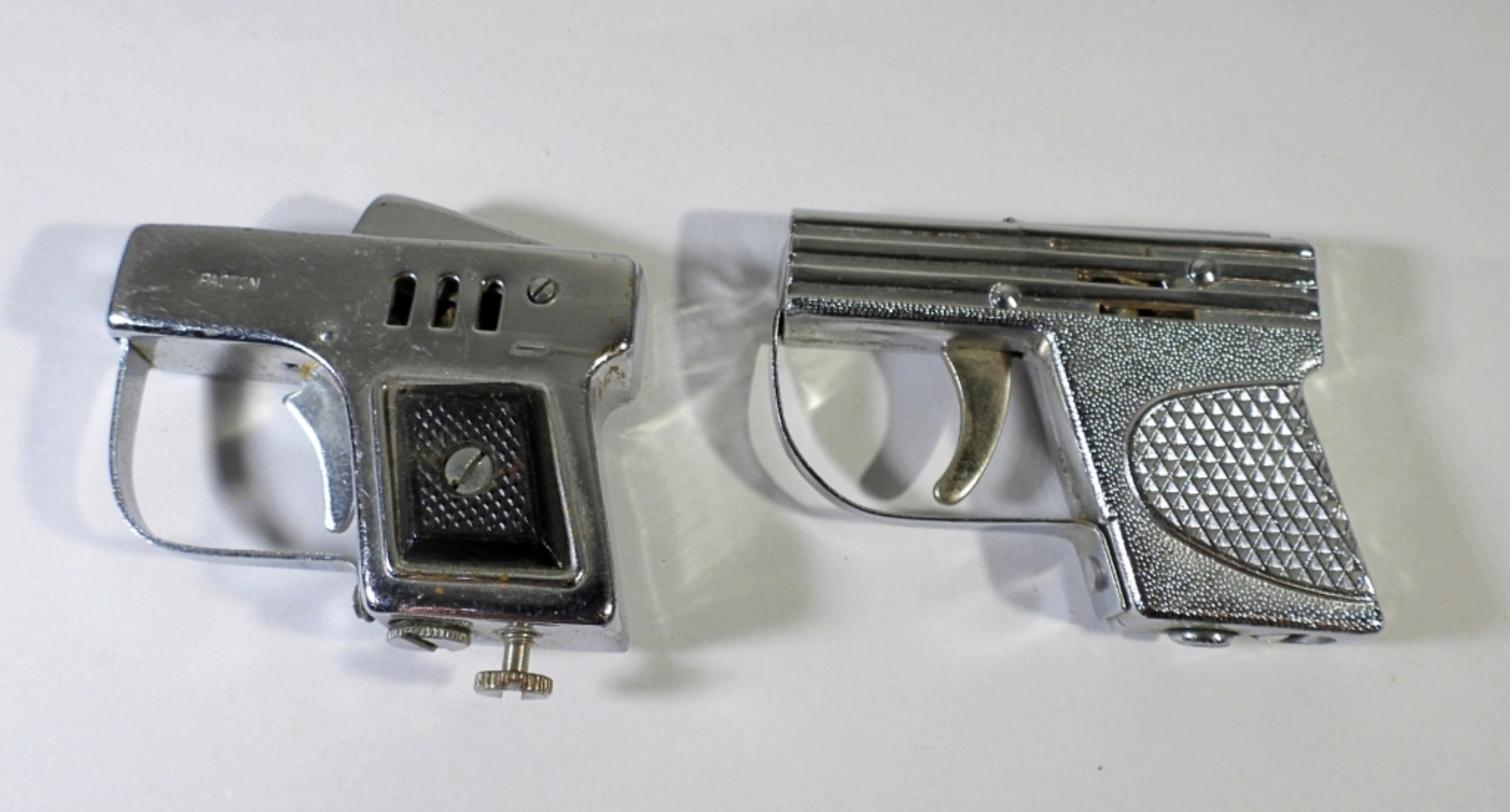 2 SILVER TONED VINTAGE PISTOL SHAPED LIGHTERS