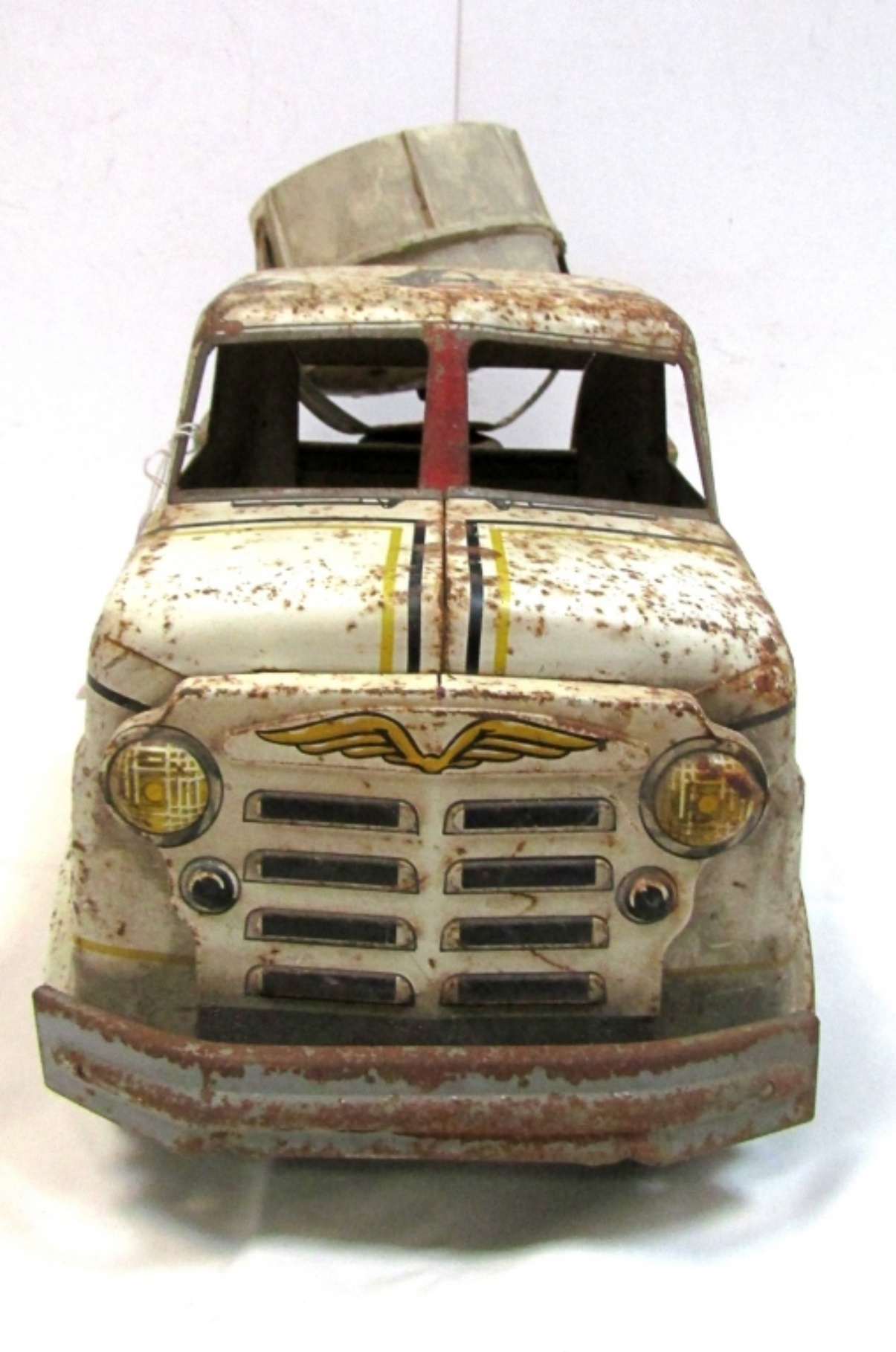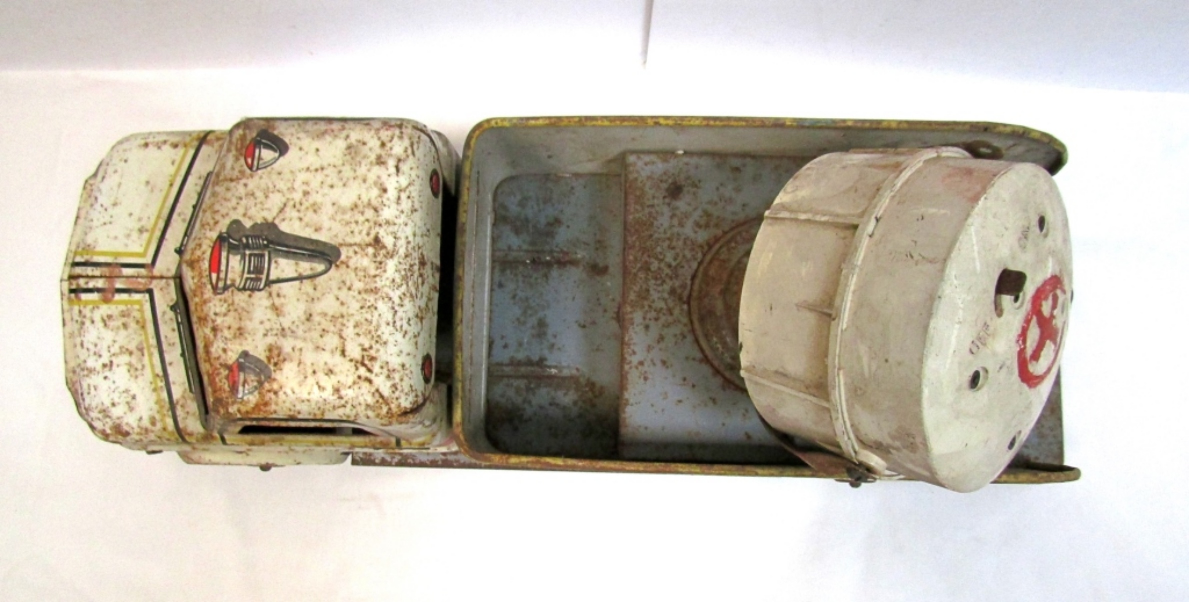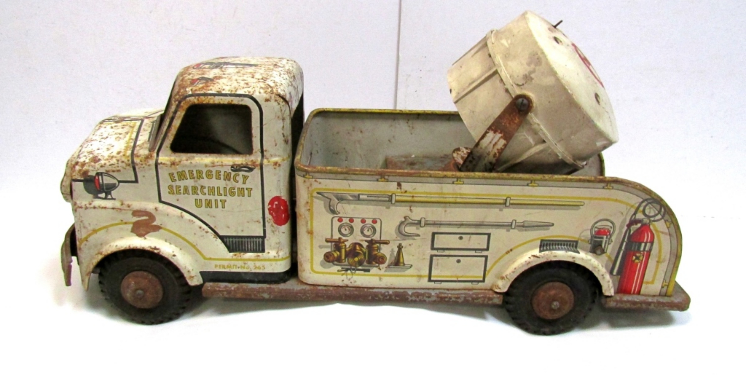 VINTAGE MARX METAL, SEARCH LIGHT BIG TOY TRUCK. RUSTY, SEARCH LIGHT DOES NOT WORK & IS BROKEN.