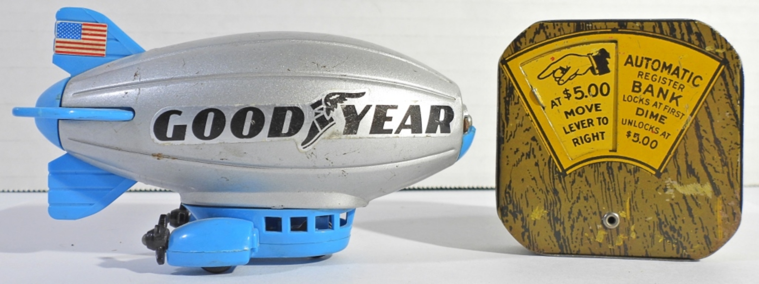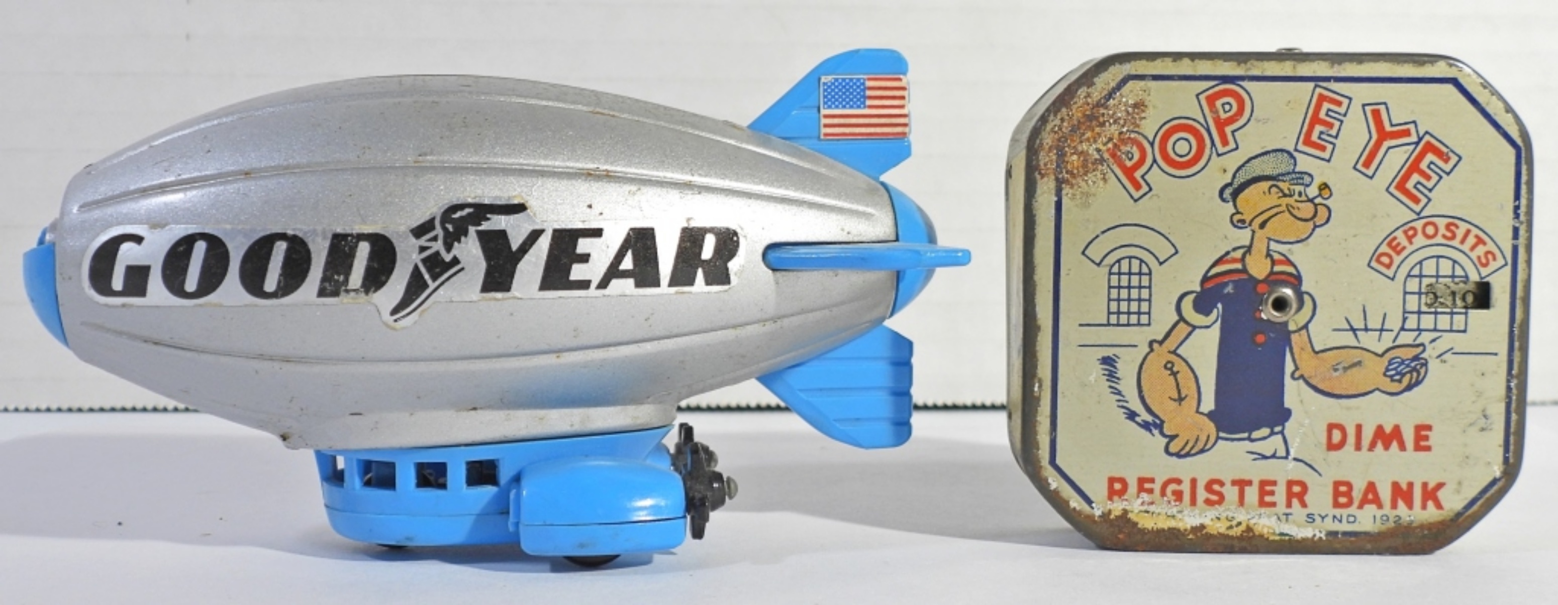 VINTAGE POP EYE DIME REGISTER BANK PLUS VINTAGE GOOD YEAR TOY BLIMP