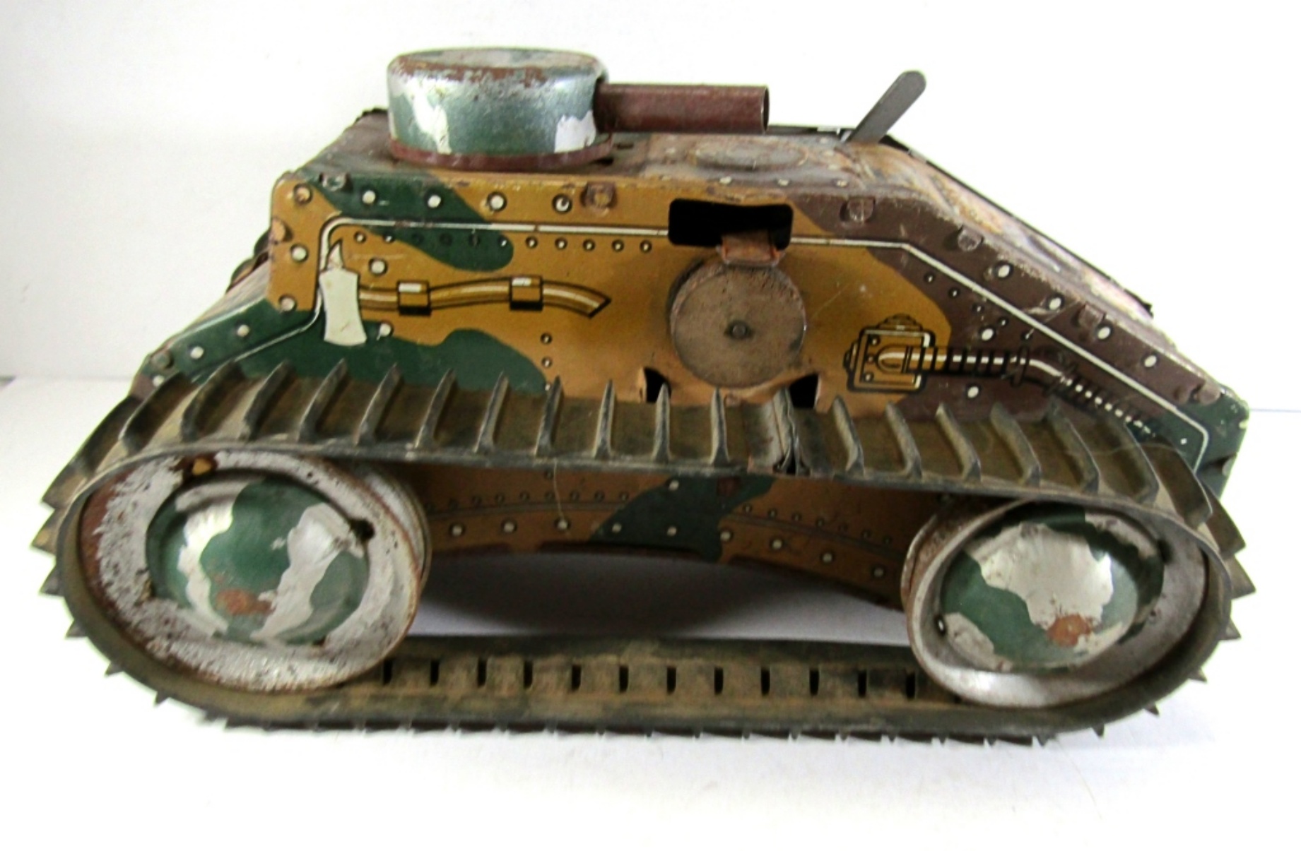 MARX 1950s TIN WIND-UP ARMY TANK. IT CAN WIND UP, BUT DOESN’T RUN PROPERLY.