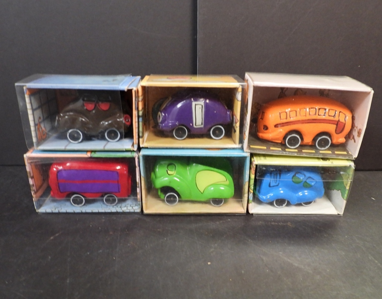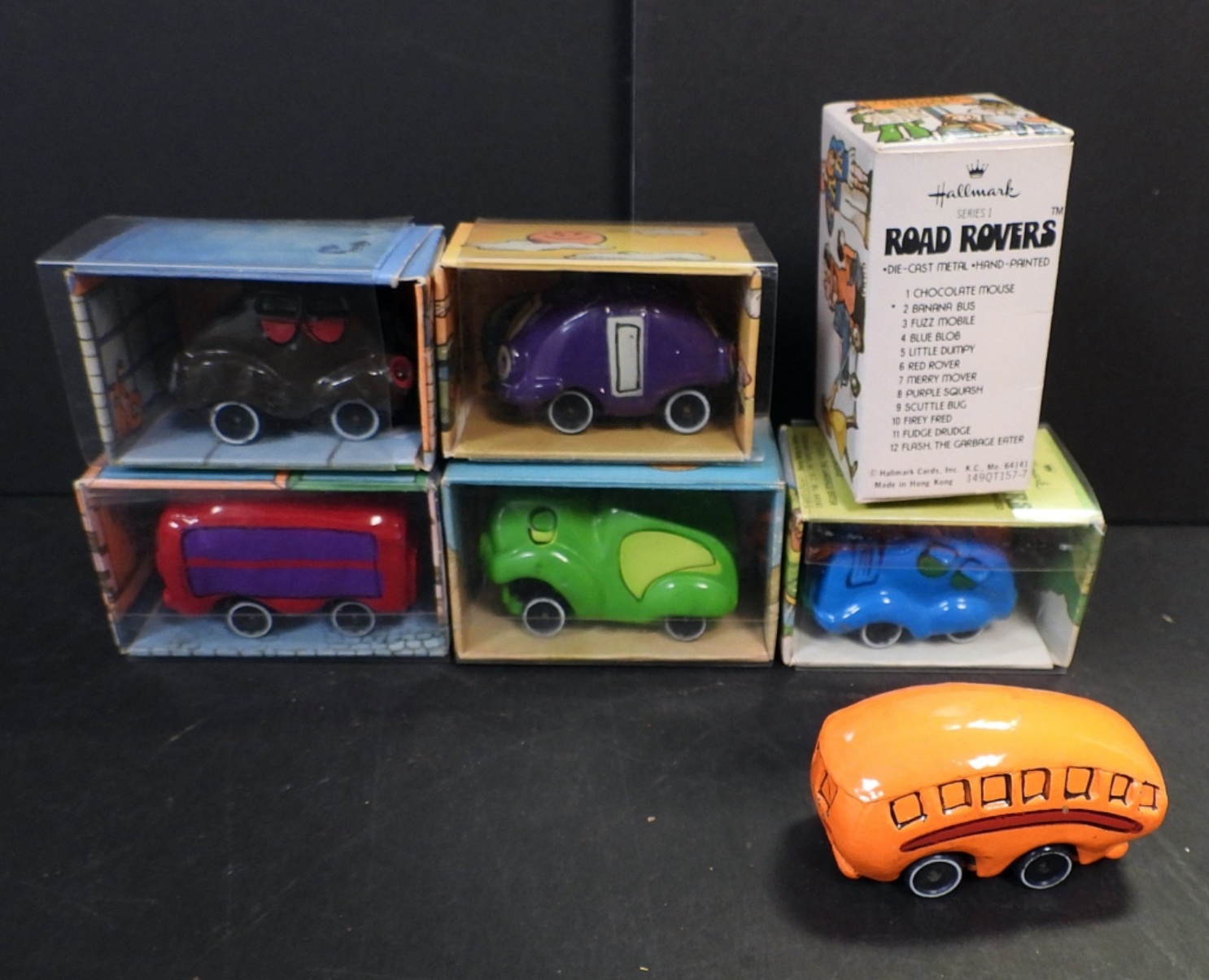 SIX HALLMARK CARDS, ROAD ROVERS FROM THE 1970’s. BLUE BLOB, PURPLE SQUASH, FUDGE DRUDGE, LITTLE DUMPY, BANANA BUS, RED ROVER.