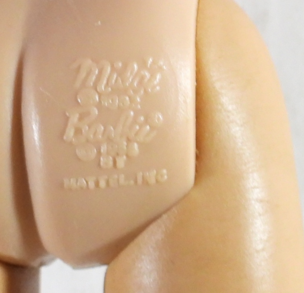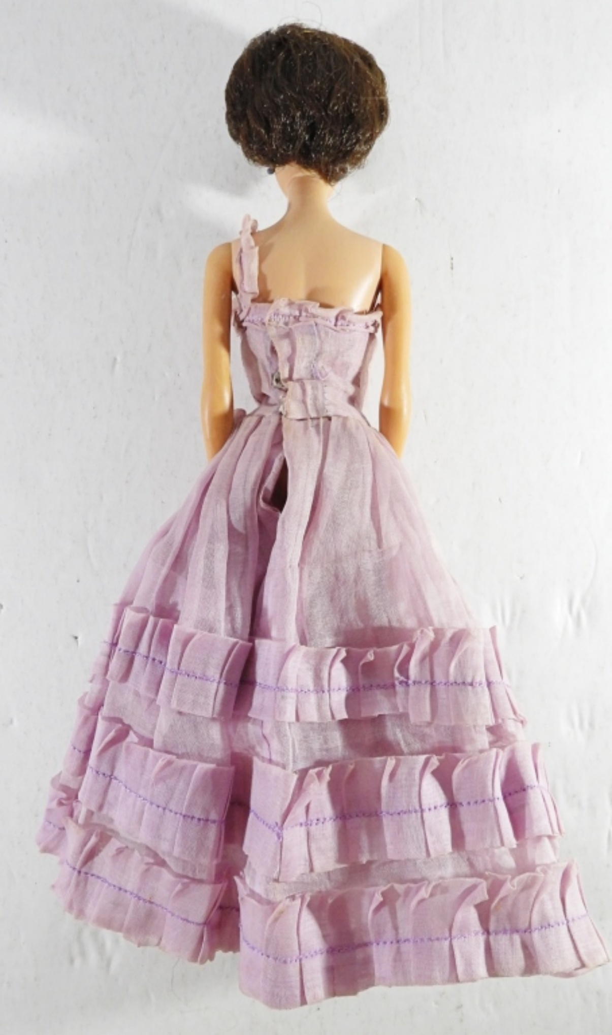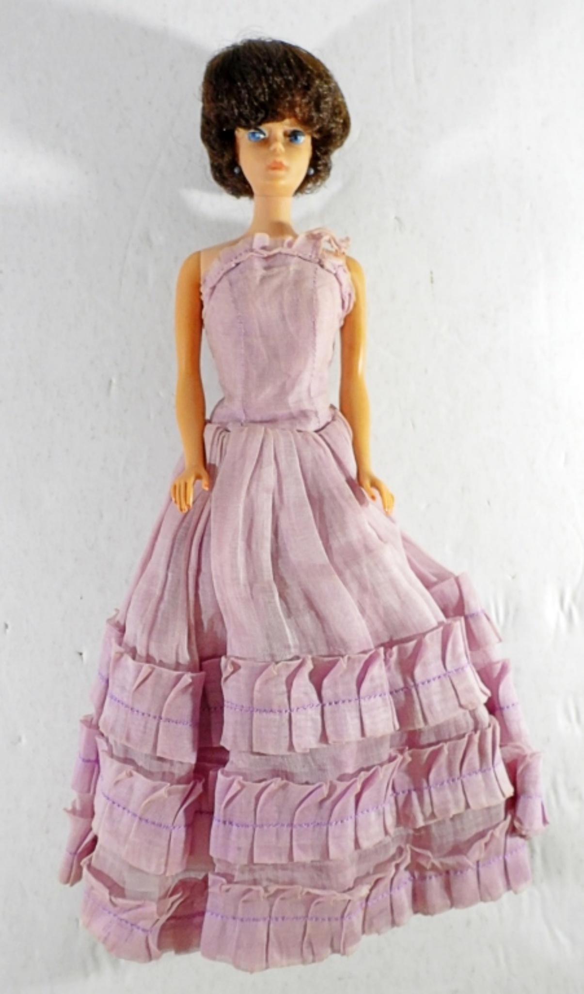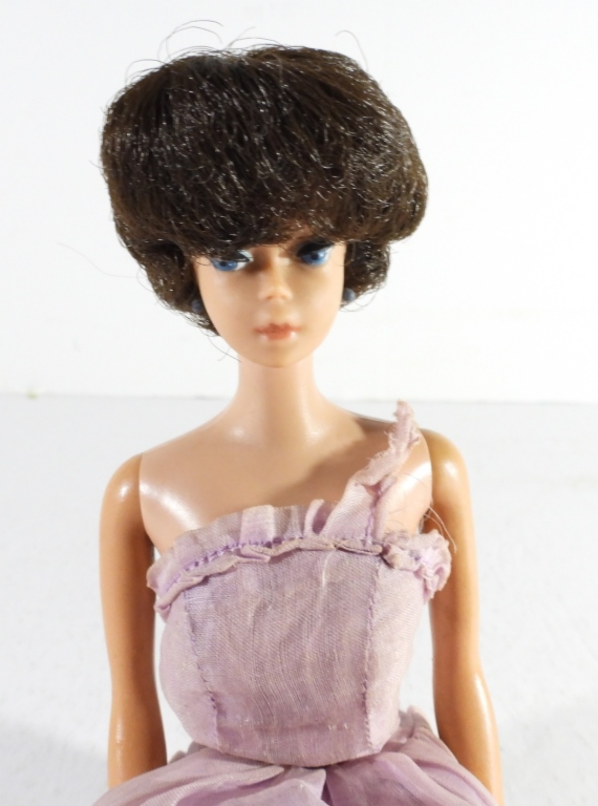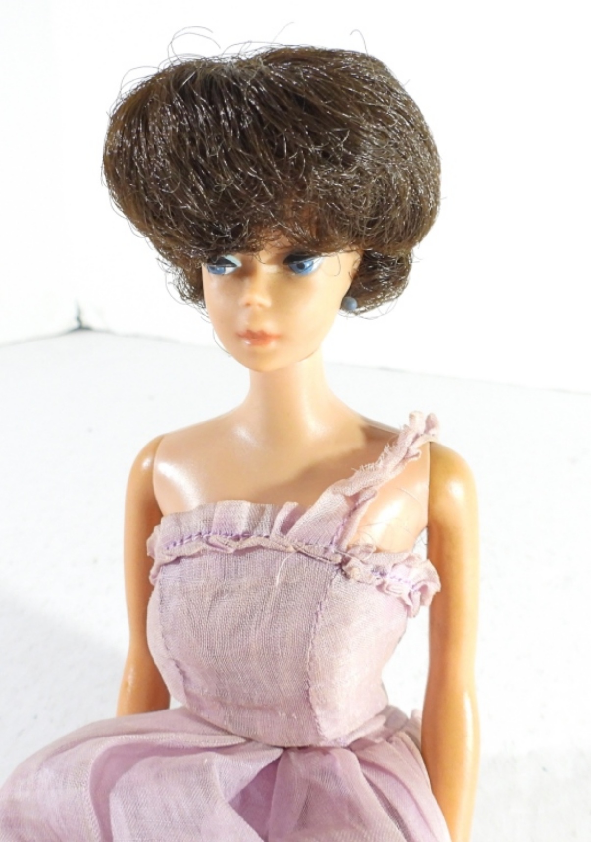 MIDGE BY BARBIE, BRUNETTE HAIR, STAMPED ON THE BUTT, IN PURPLE GOWN, GOOD CONDITION, STRAIGHT LEG