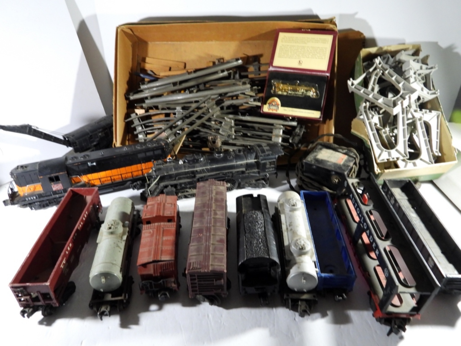 (2) ENGINES (11) CARS – LOTS of TRACKS & MORE – VERY HEAVY LOT! (MAY REQUIRE ADDITIONAL SHIPPING DUE TO WEIGHT)