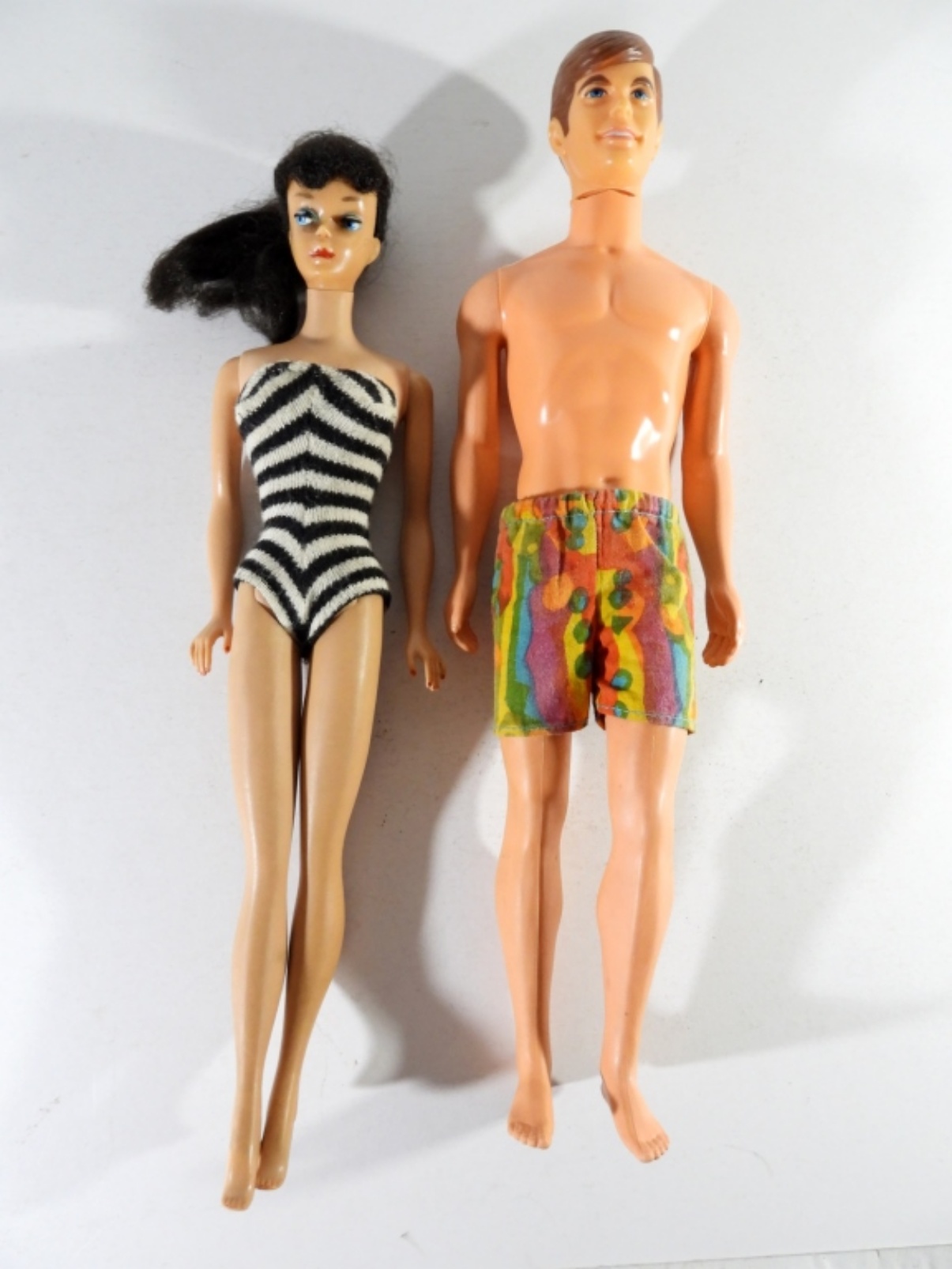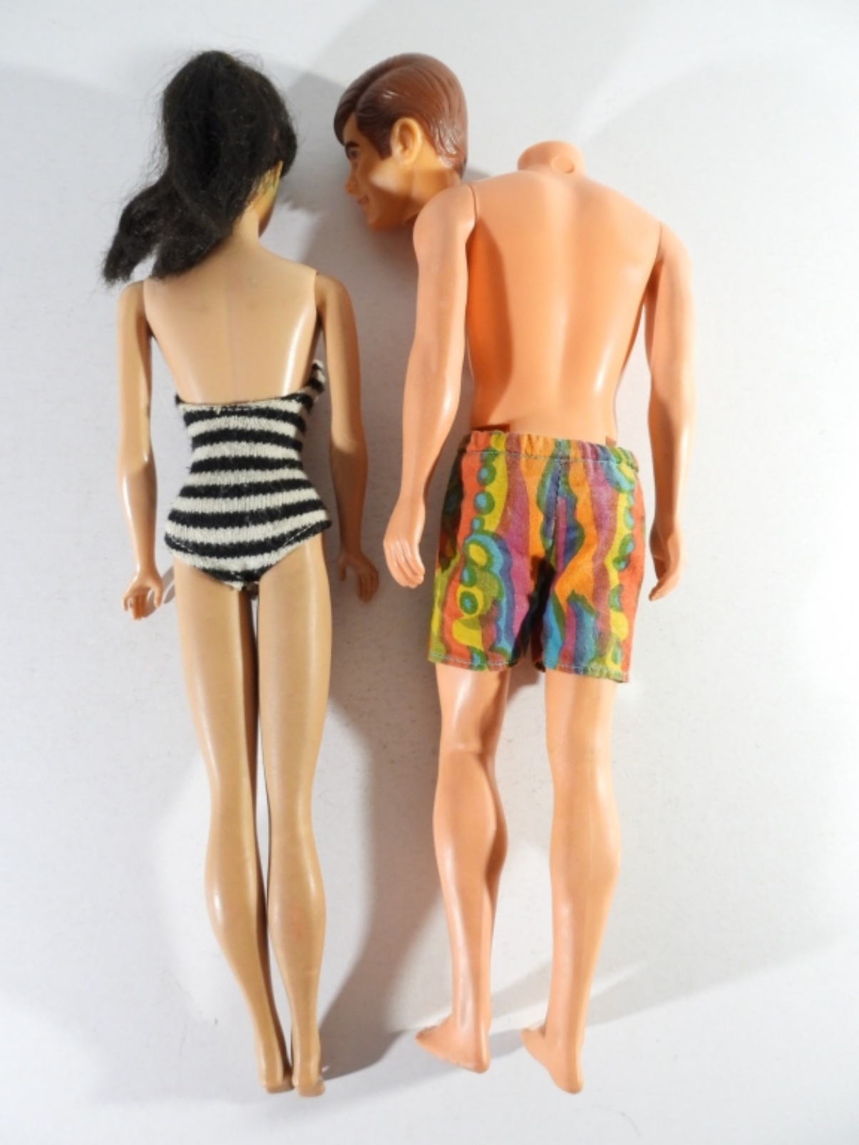 BLACK & WHITE SUITE with 1968 KEN needs head fixed – falls off