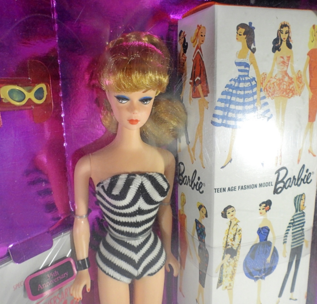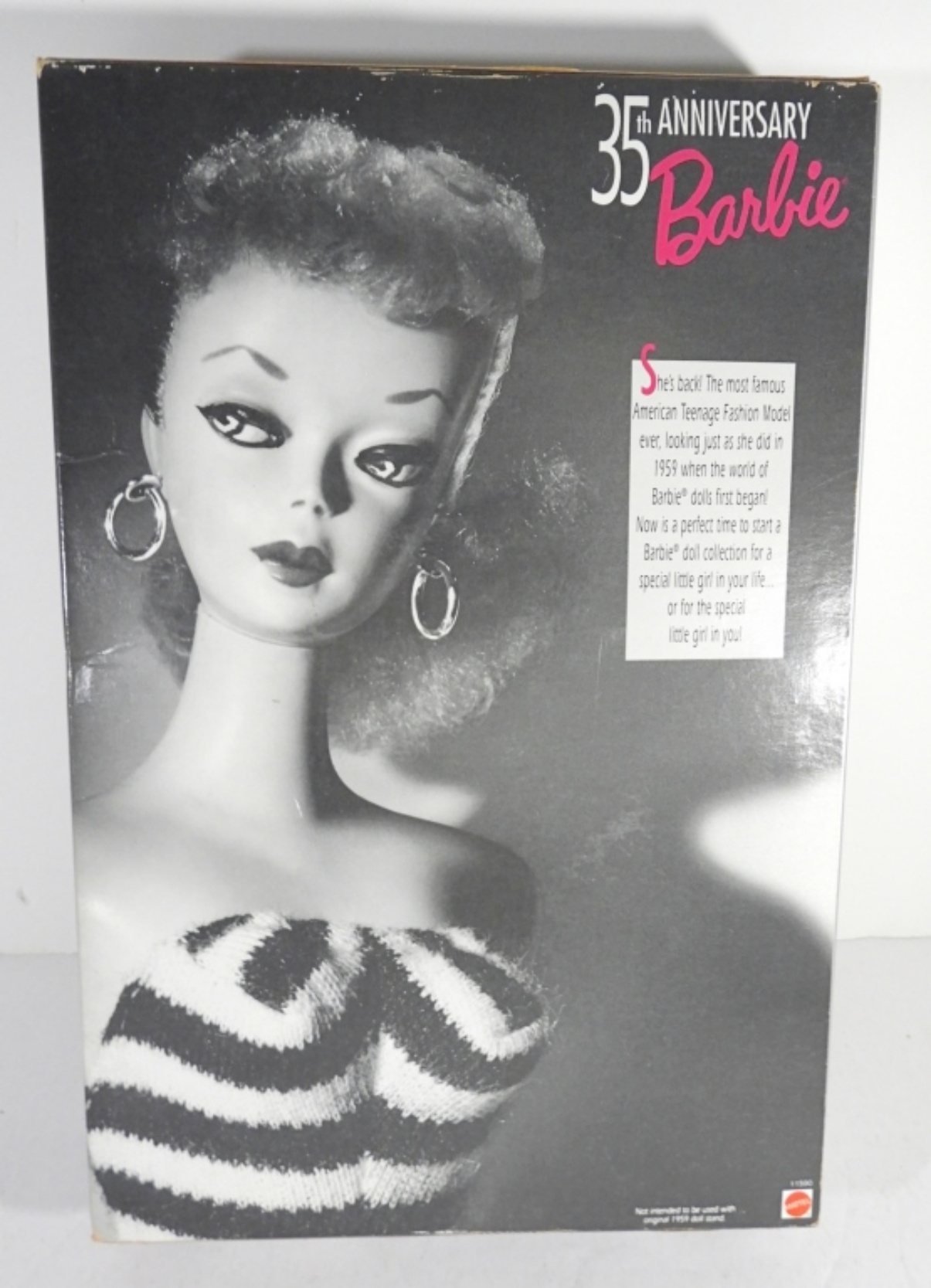 ORIGINAL 1959 BARBIE DOLL AND PACKAGE SPECIAL EDITION REPRODUCTION, BOX IS IN GOOD SHAPE AND THE DOLL IS IN GREAT SHAPE, BY MATTEL