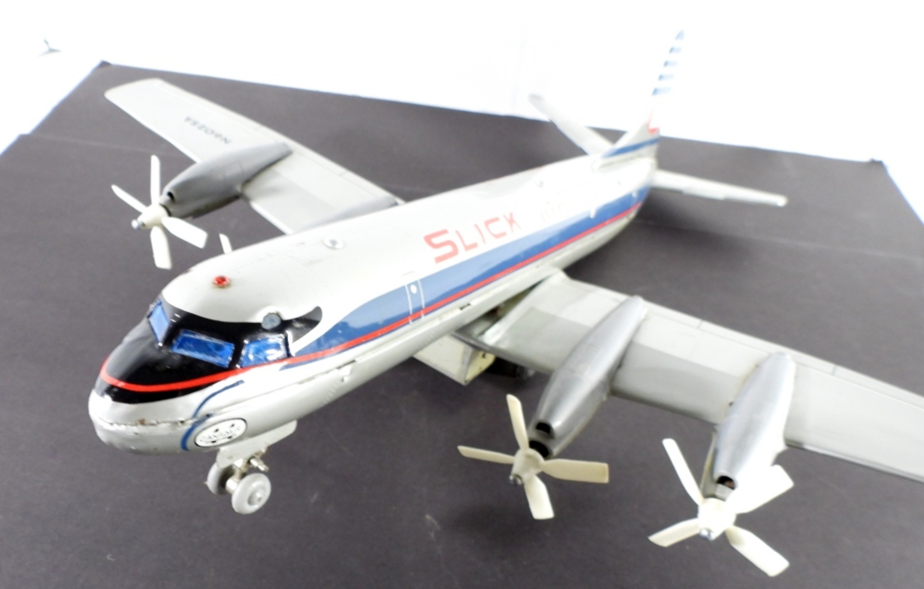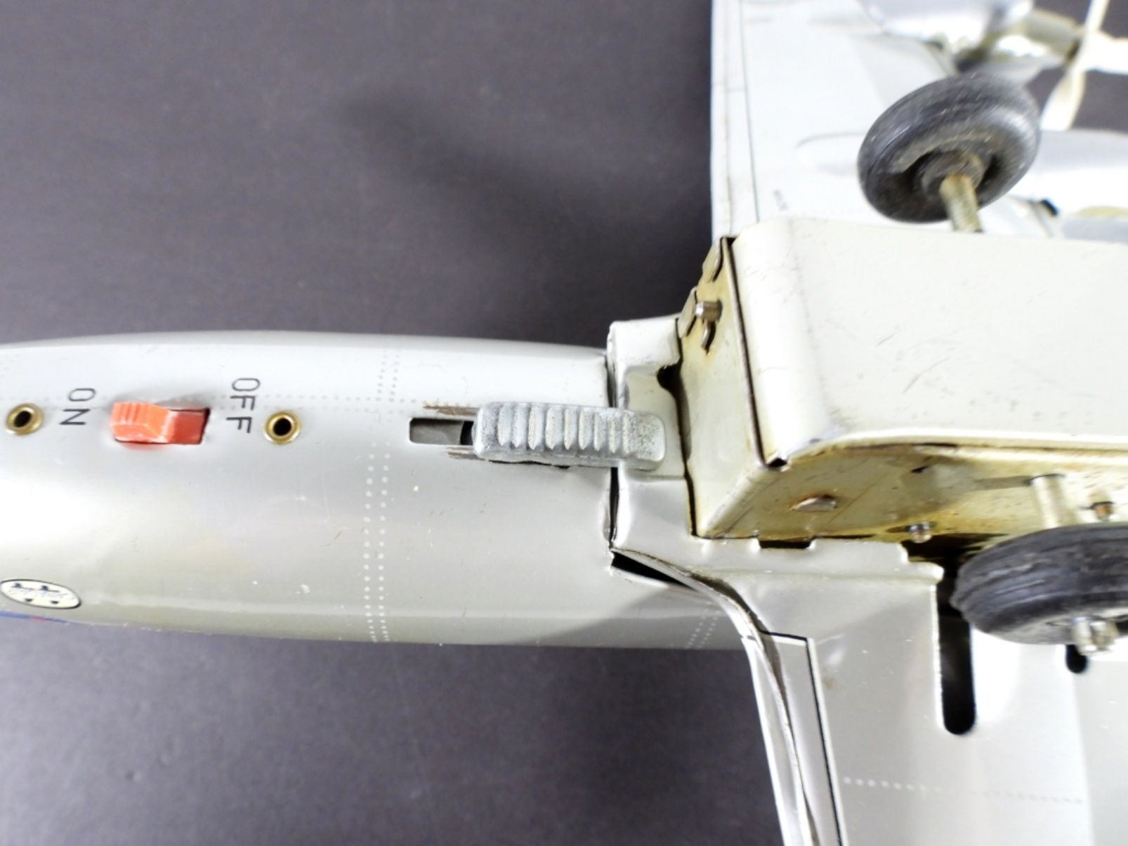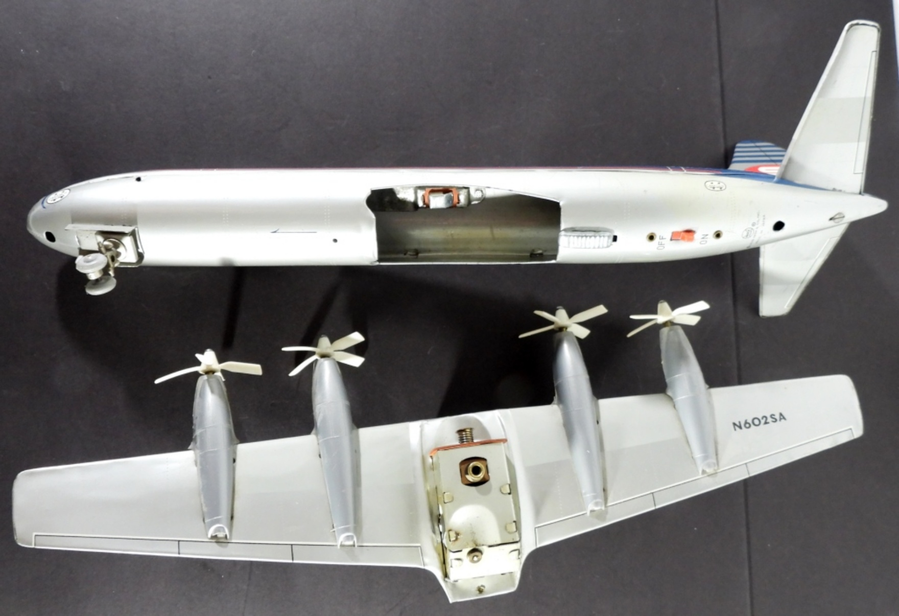 BATTERY AIRPLANE – UNTESTED – VERY NICE CONDITION – SNAPS TOGETHER 2 pc VINTAGE TIN TOY