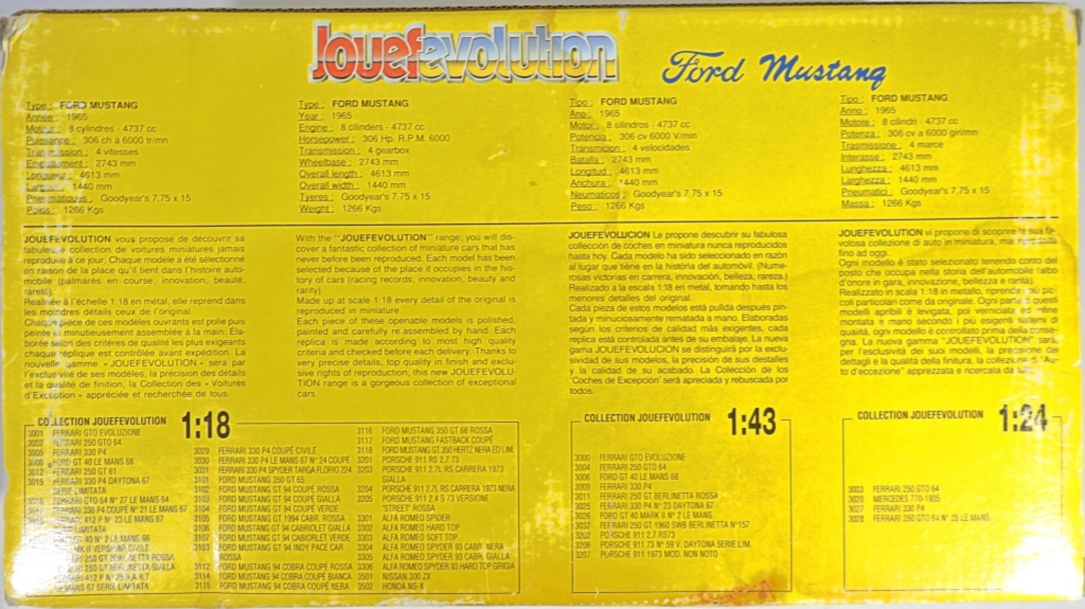 JOUEF EVOLUTION 1965 FORD MUSTANG 1:18 DIE CAST METAL OUVRANT OPENING PARTS