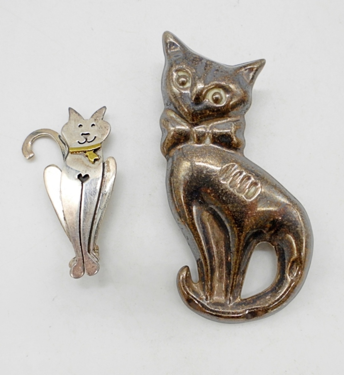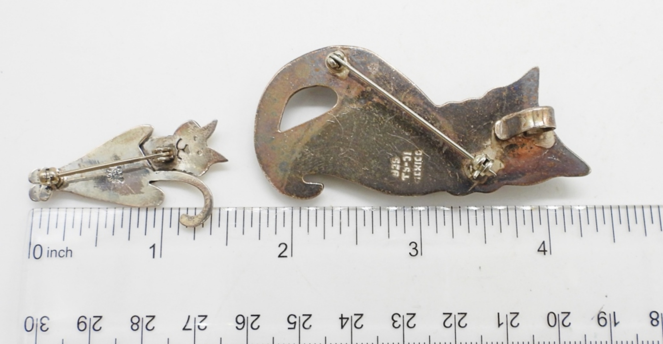 2 CAT SHAPED STERLING PINS, MARKED “MEXICO 925”. 13.8 DWT