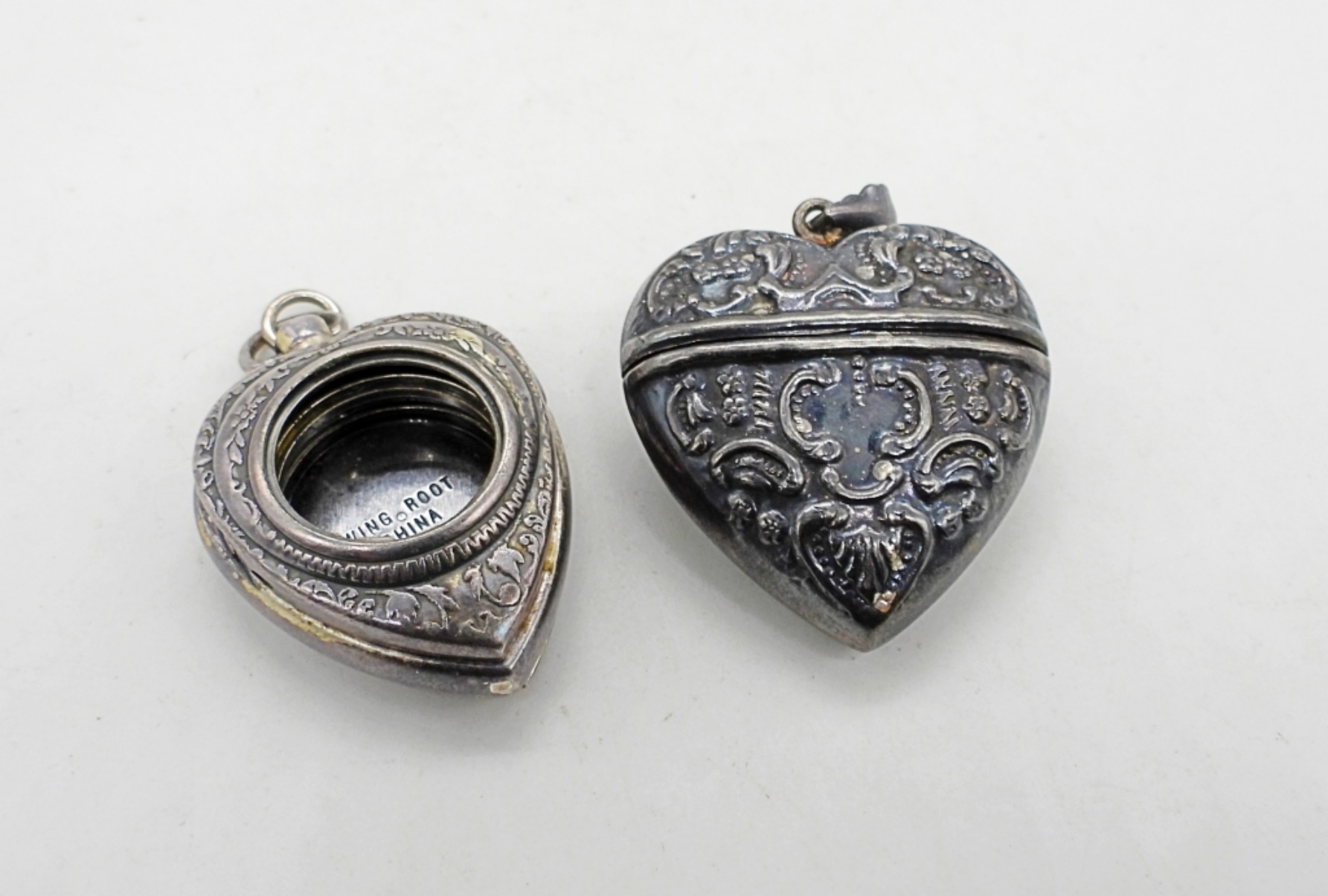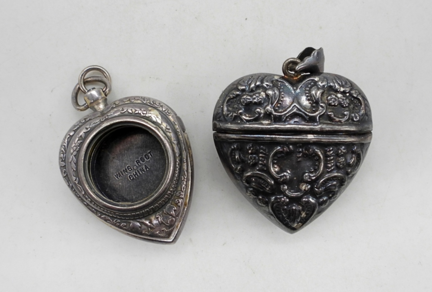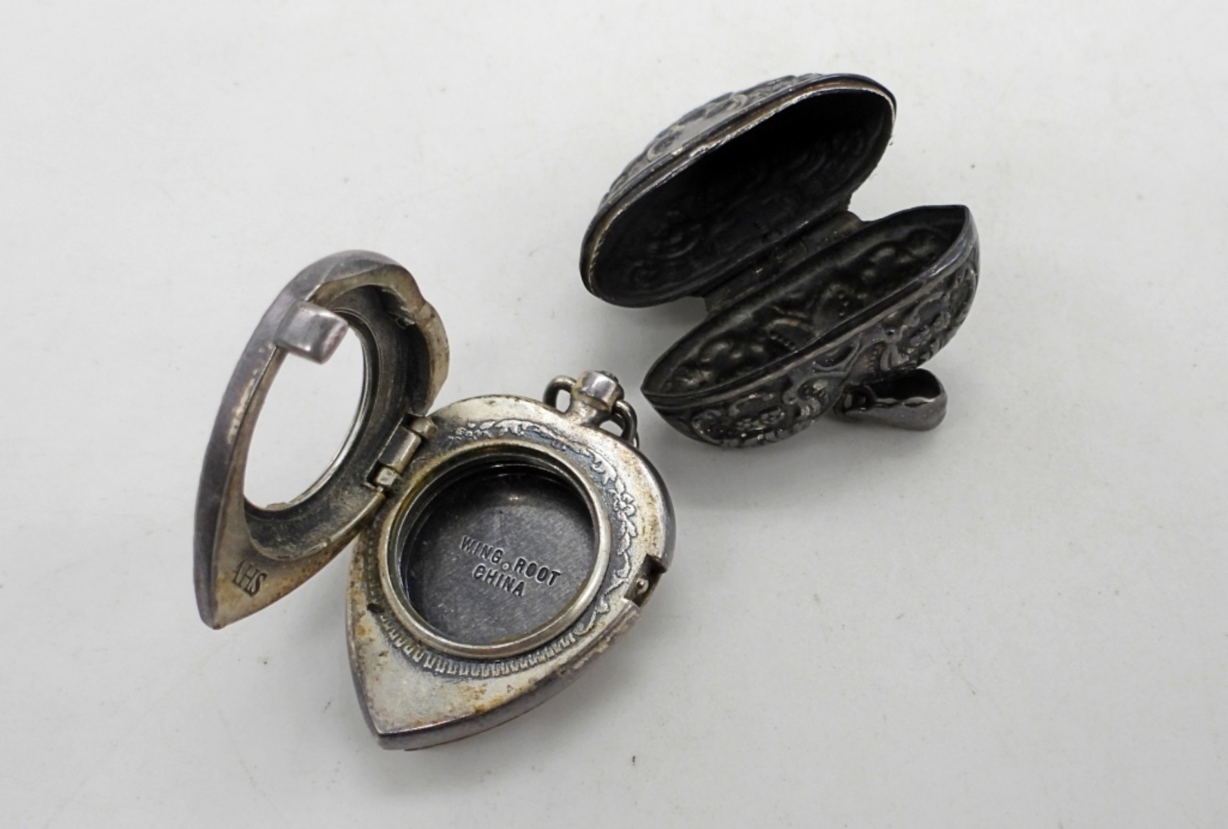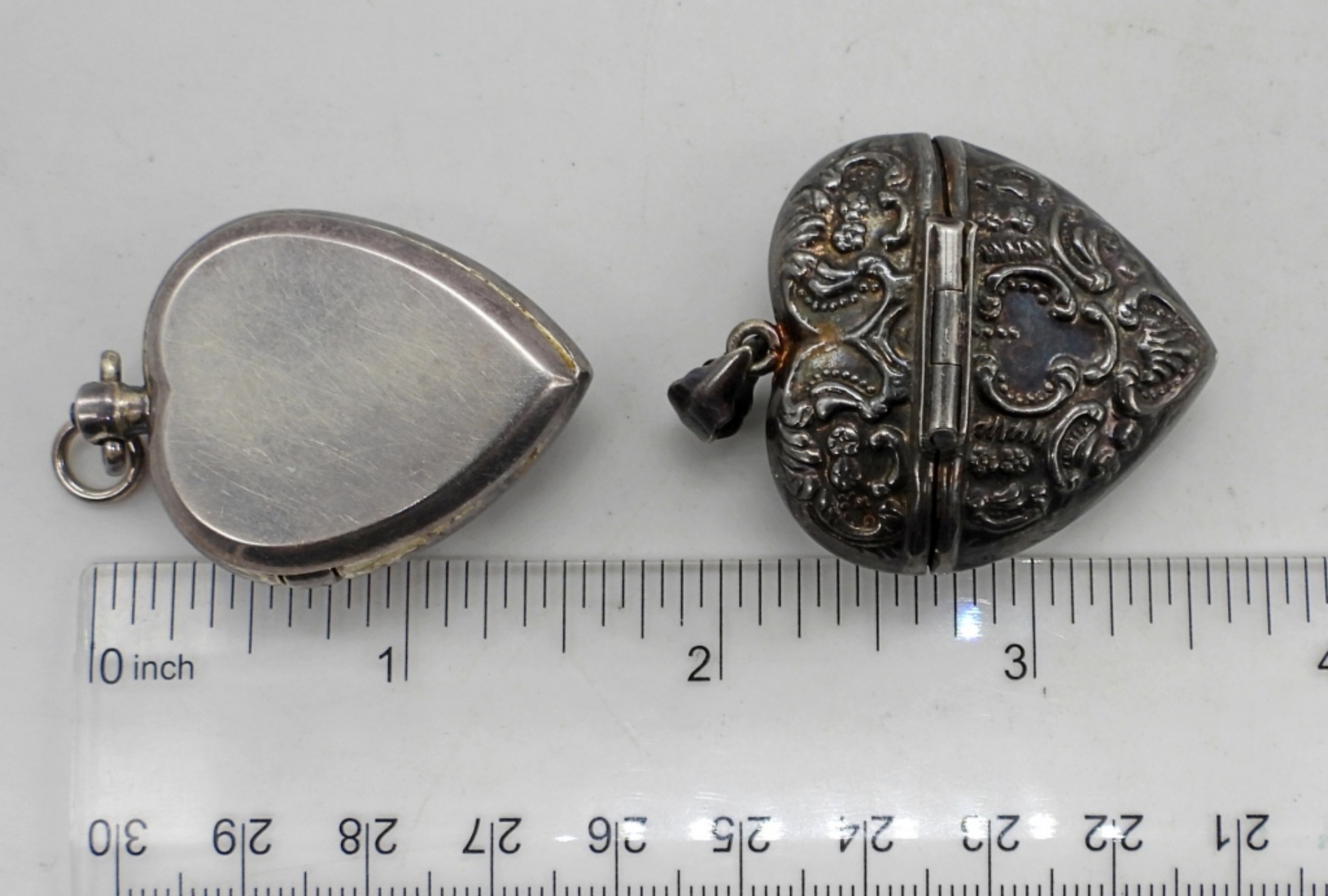 27DWT,BOTH UNDER A 1 1/2″, 1 HEART OPENS AT THE TOP, THE OTHER HOLDS A WATCH