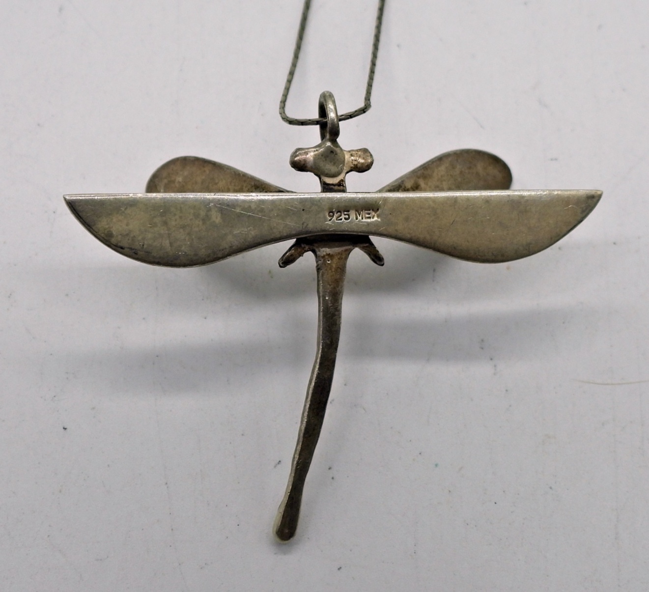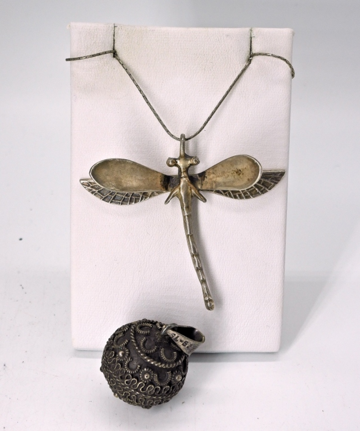 STERLING DRAGON FLY (MEXICO 925) PENDANT ON A STERLING 19″ CHAIN. DARGON FLY MEASURES 2″x2″. VINTAGE ORNATE HARMONY BALL PENDANT. 20.4DWT