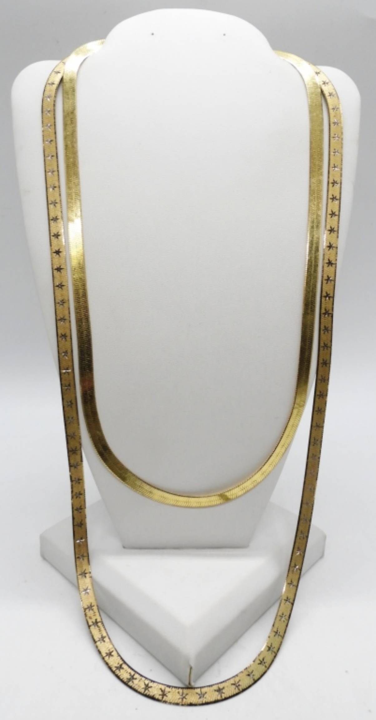 2 GOLD TONE HERRINGBONE CHAINS, STERLING SILVER. 20″ & 26″. 22.5 DWT