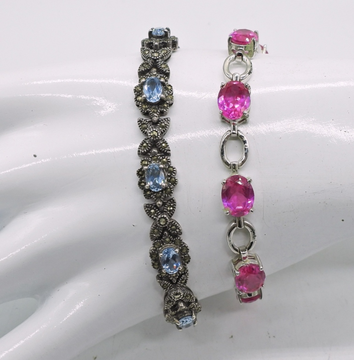STERLING GEMSTONE BRACELETS. 6″, 7″, 8″, 6-8″ ADJUSTABLE. 28 DWT
