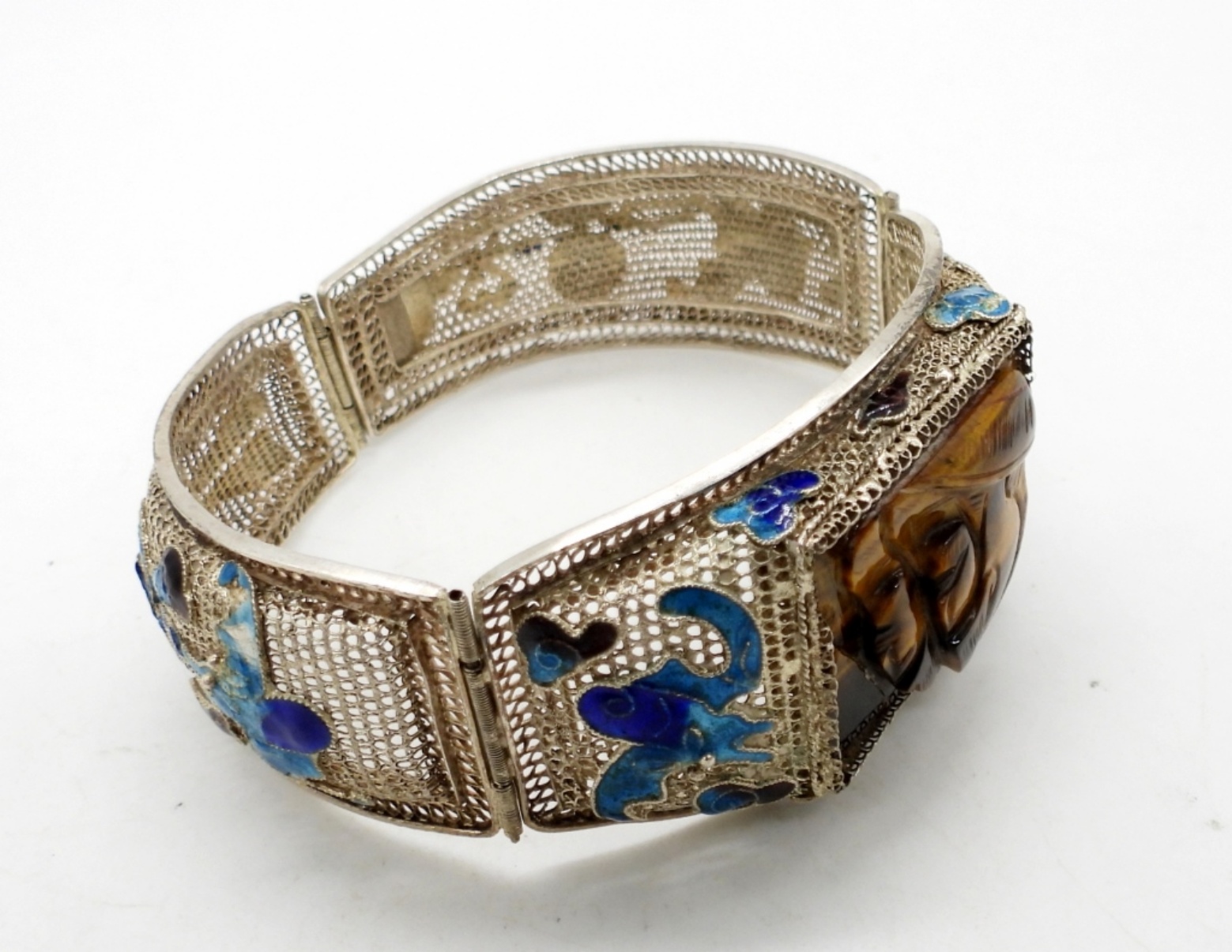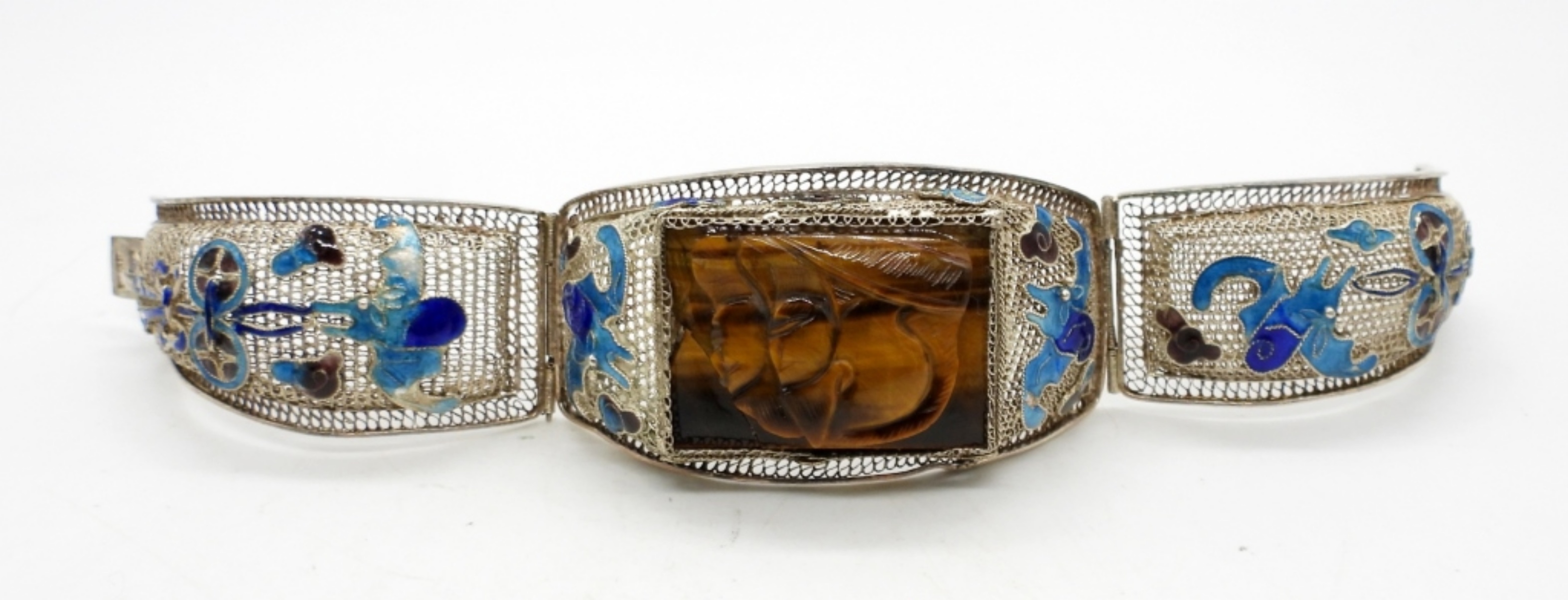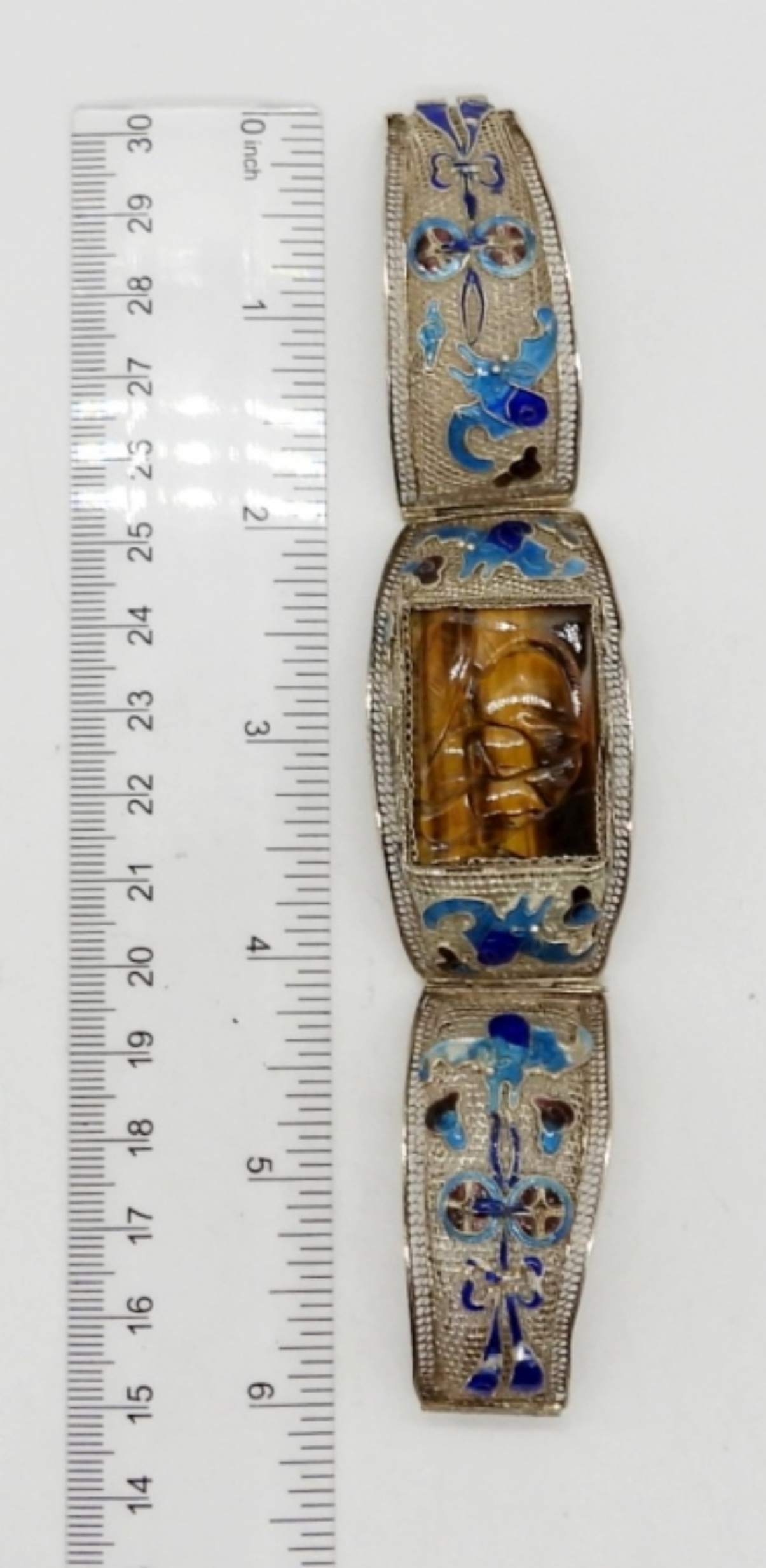 WITH CARVED SMOOTH NATURAL STONE – 7″ – STAMPED CHINA SILVER – 16.5 DWT