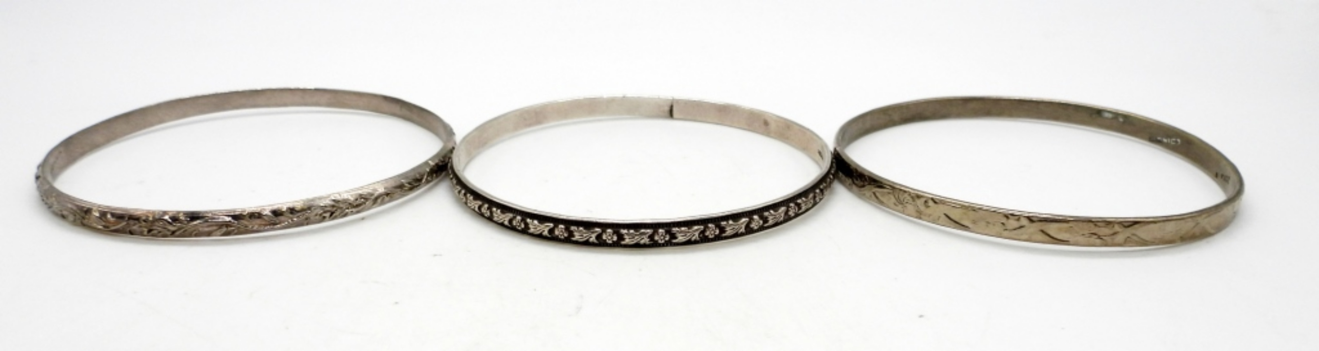 ALL DIFFERENT DESIGNS, SLIM BANGLE BRACELETS – MARKED 925 – 8″ – 43.6 DWT