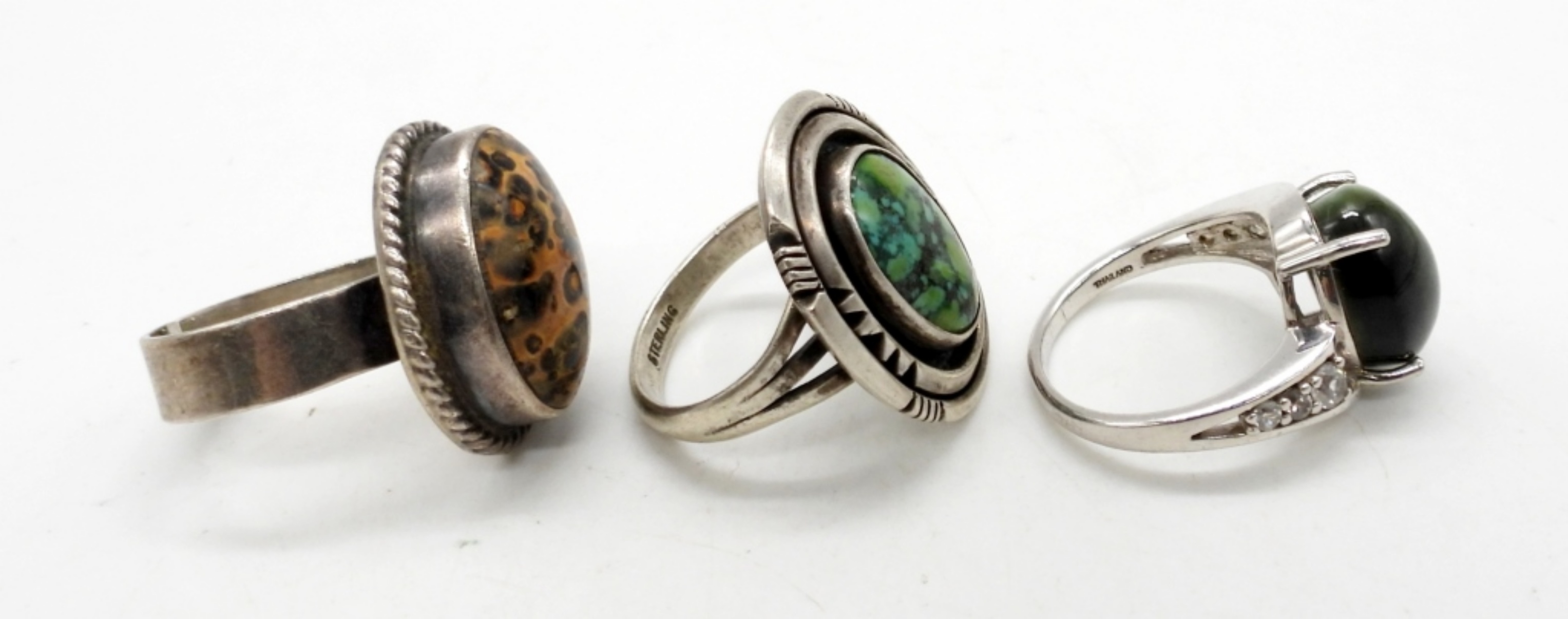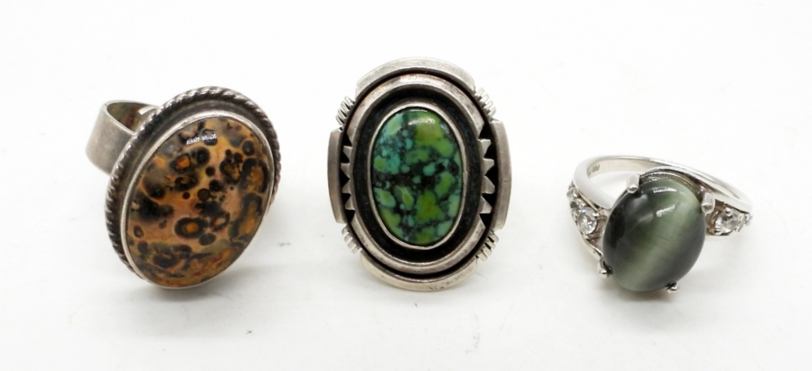 TURQUOISE, CATS EYE, NATURAL STONE – SIZES 7-8 – MEXICO 925, STERLING, 925 – 16 DWT
