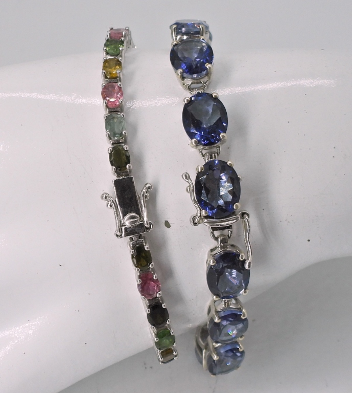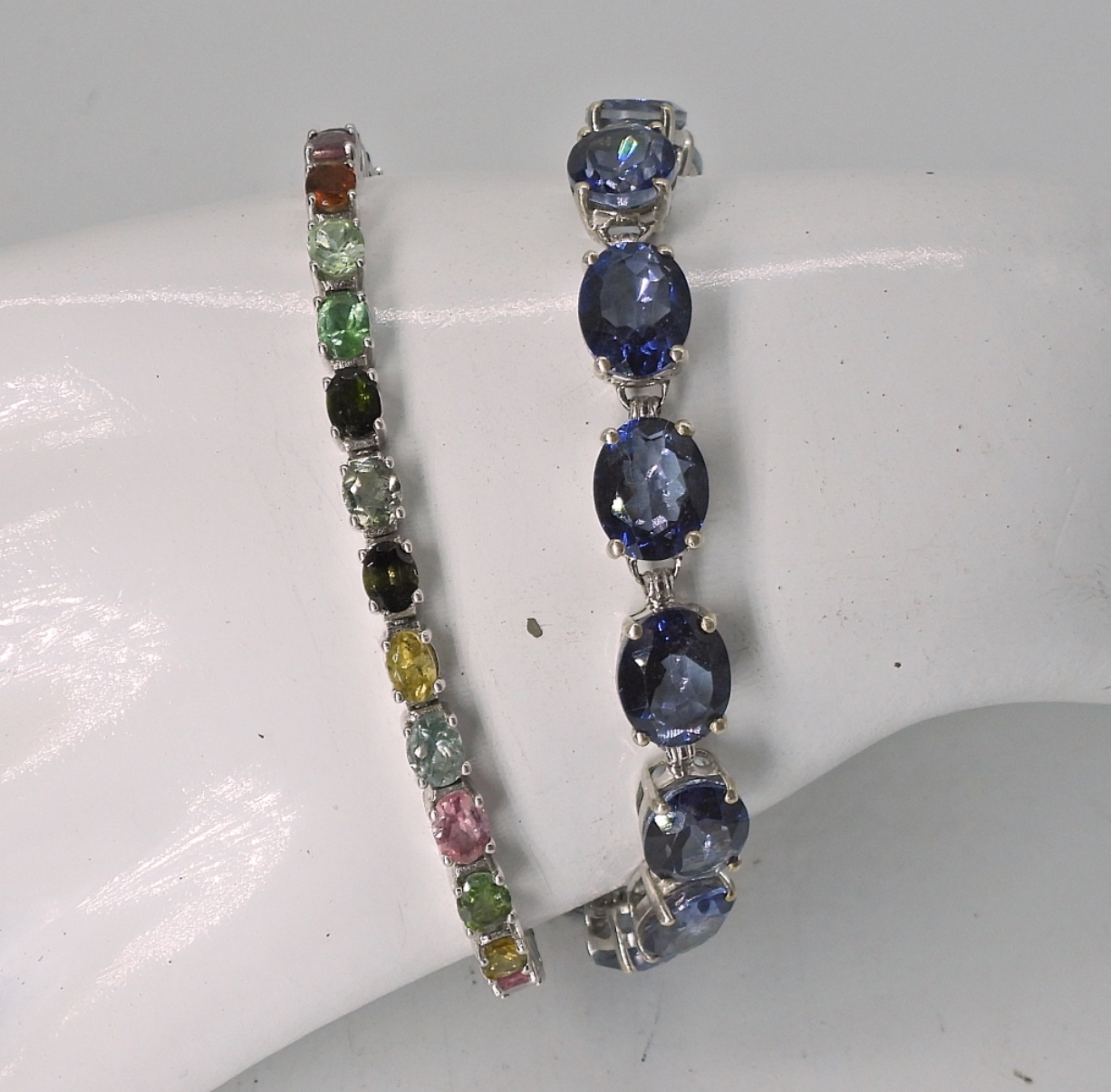 TWO STERLING MULTI GEMSTONE BRACELETS, 7″. VERY CUTE. 18.5 DWT