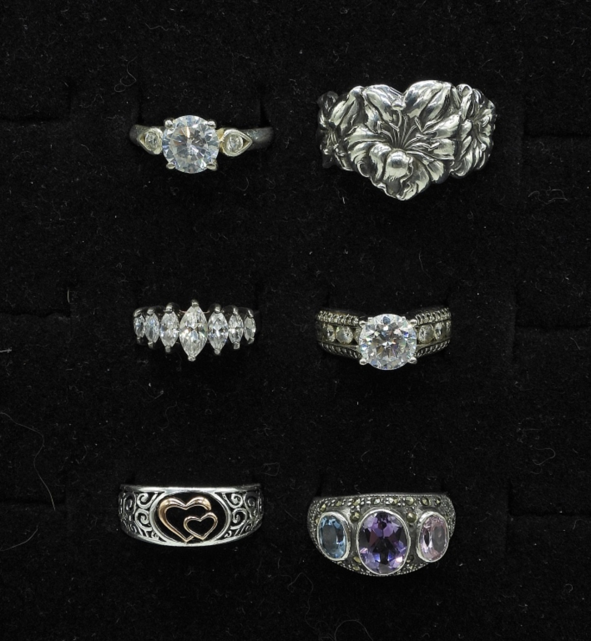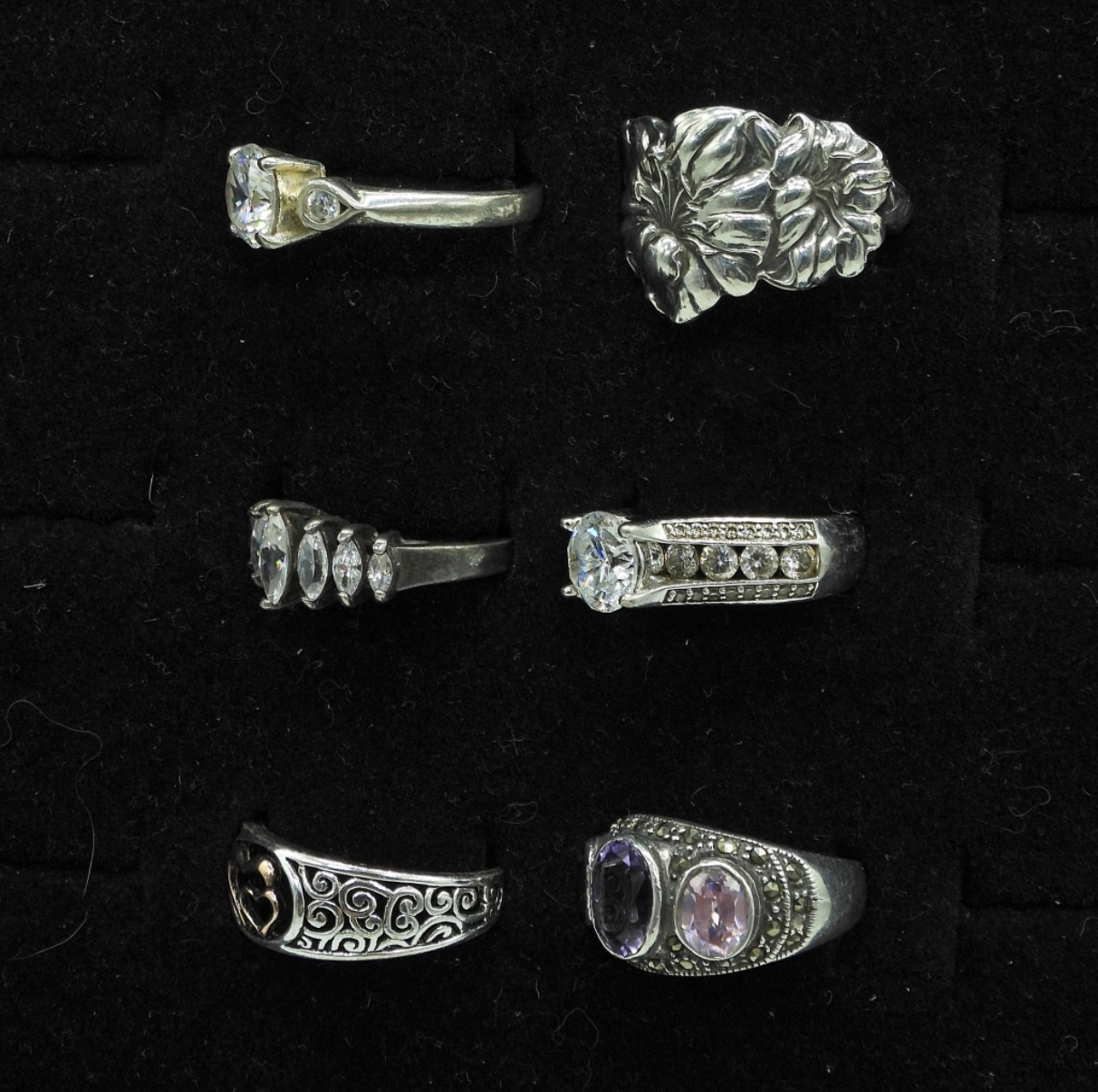 SIX WOMEN’S STERLING RINGS, SIZES 6, 8.5, 9, 9 1/4. 21.8 DWT