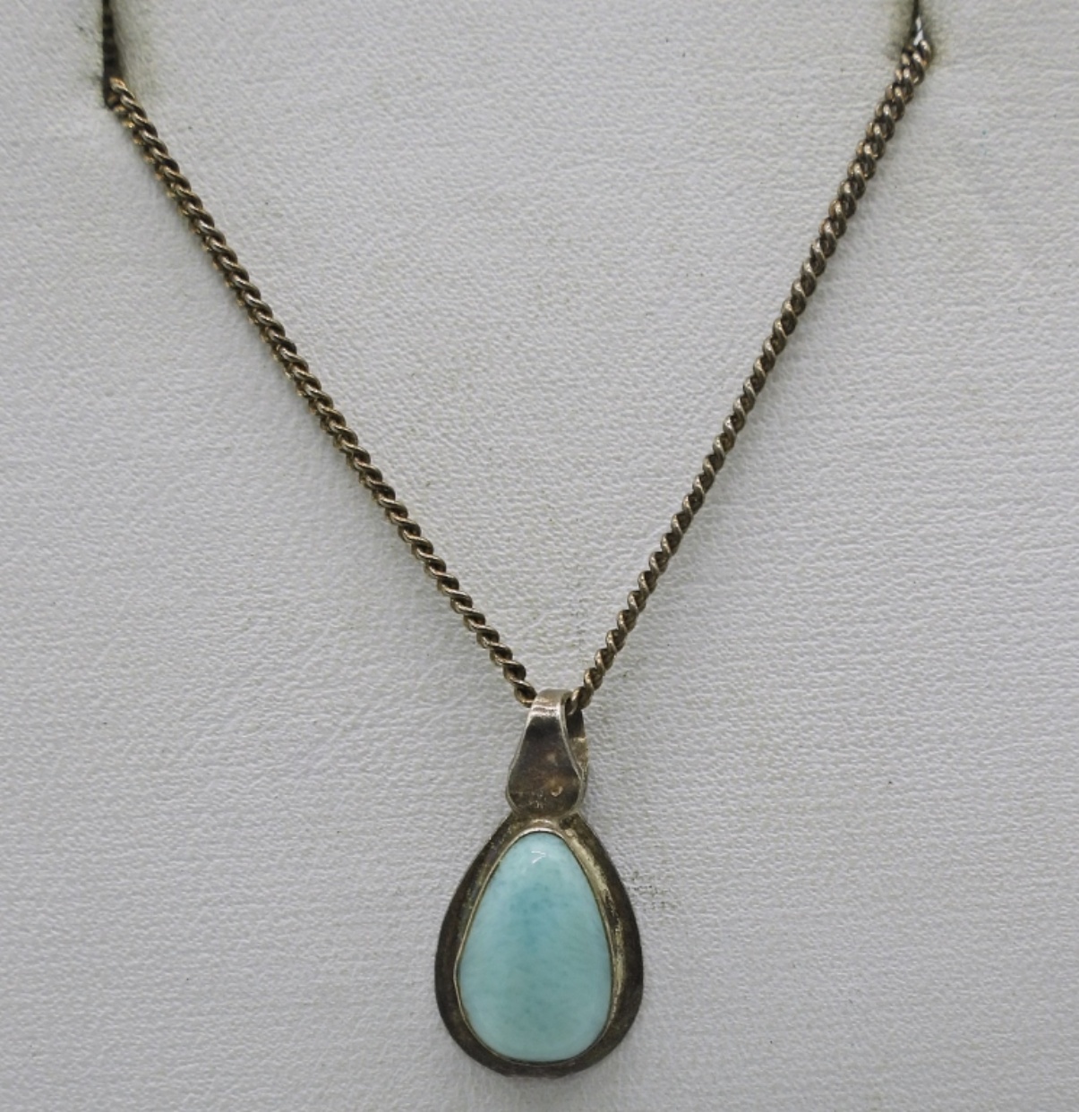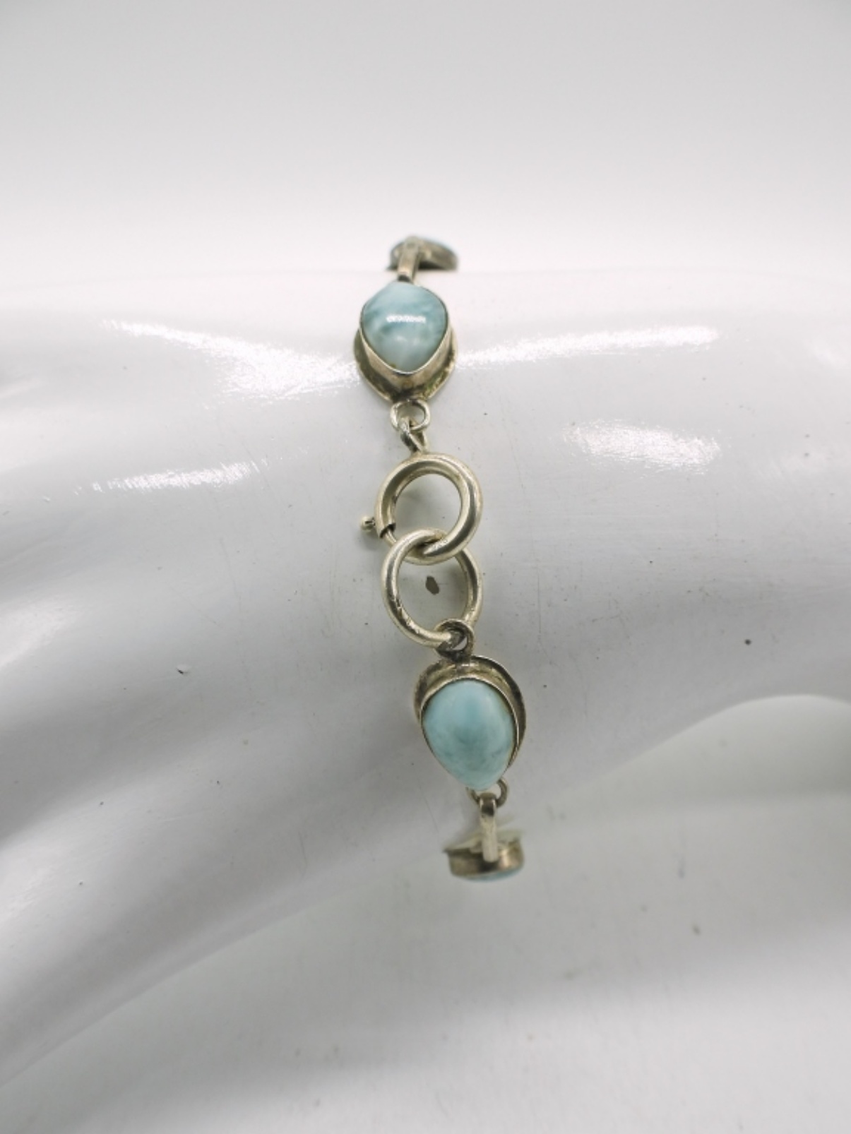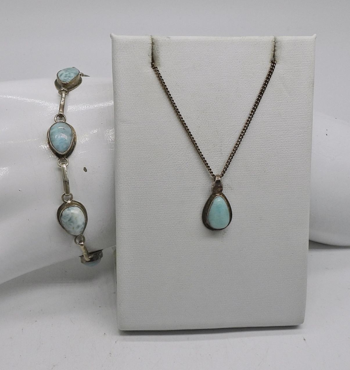 STERLING LARIMAR PENDANT ON AN 18″ STERLING CHAIN. BRACELET IS 7″. 7.4 DWT