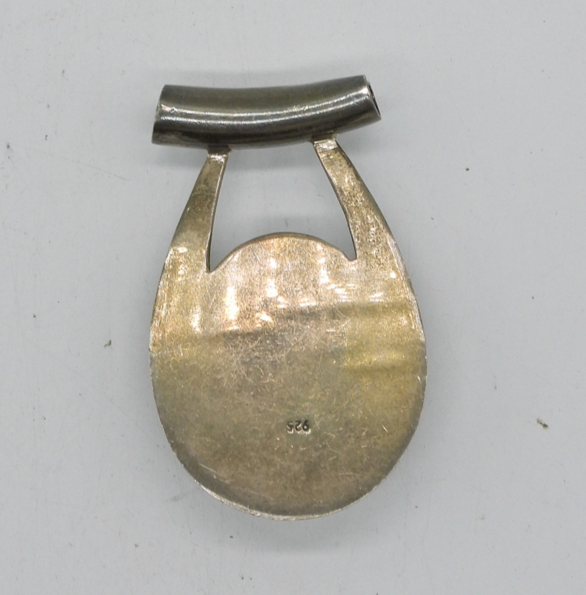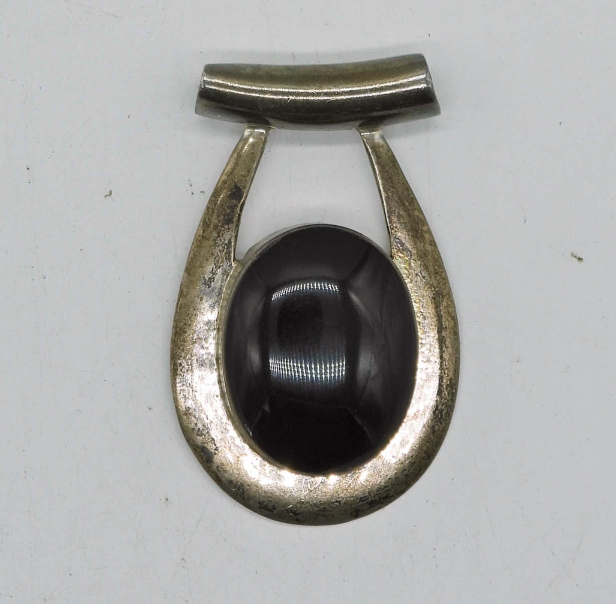 Big Sterling Silver Slider Pendant with Black Gemstone. 2″x 1″. Marked 925. 18.6 DWT