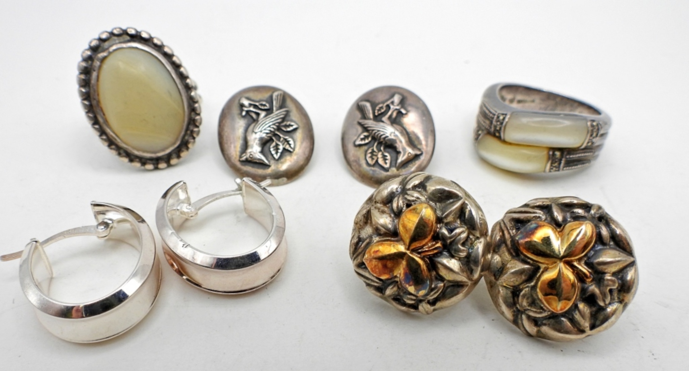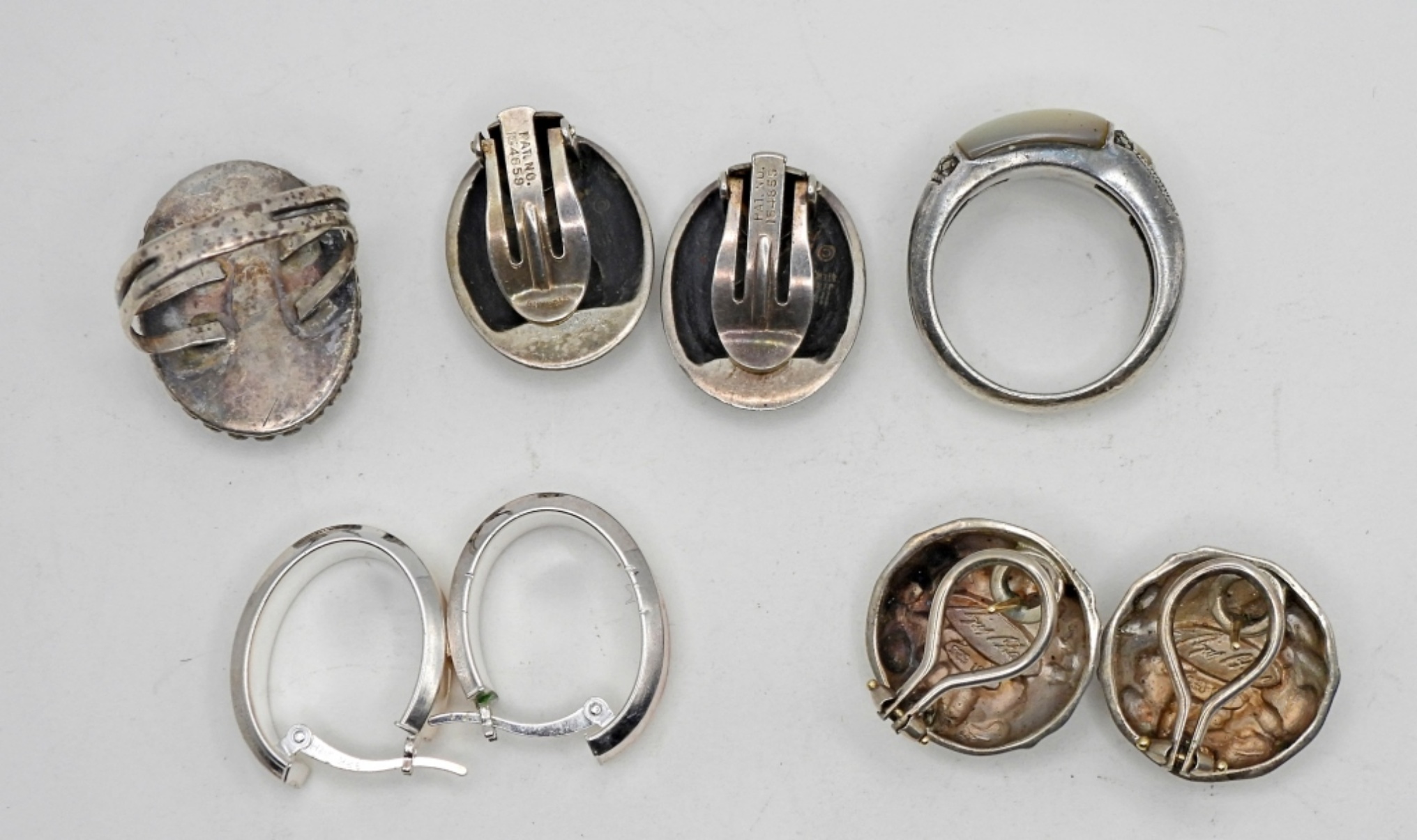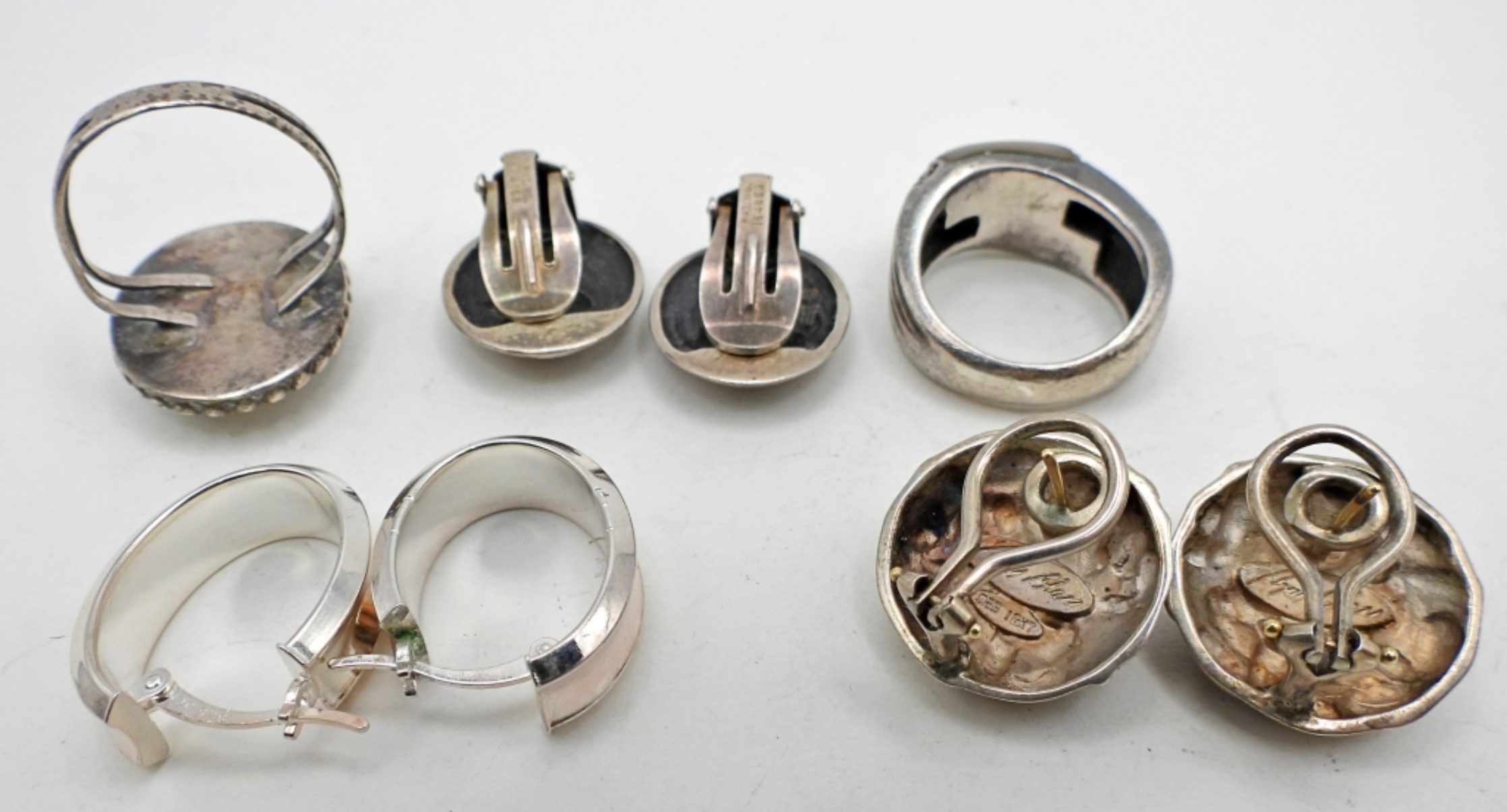 2 VINTAGE STERLING SILVER RINGS, 3 PAIRS OF STERLING SILVER EARRINGS 26.7DWT