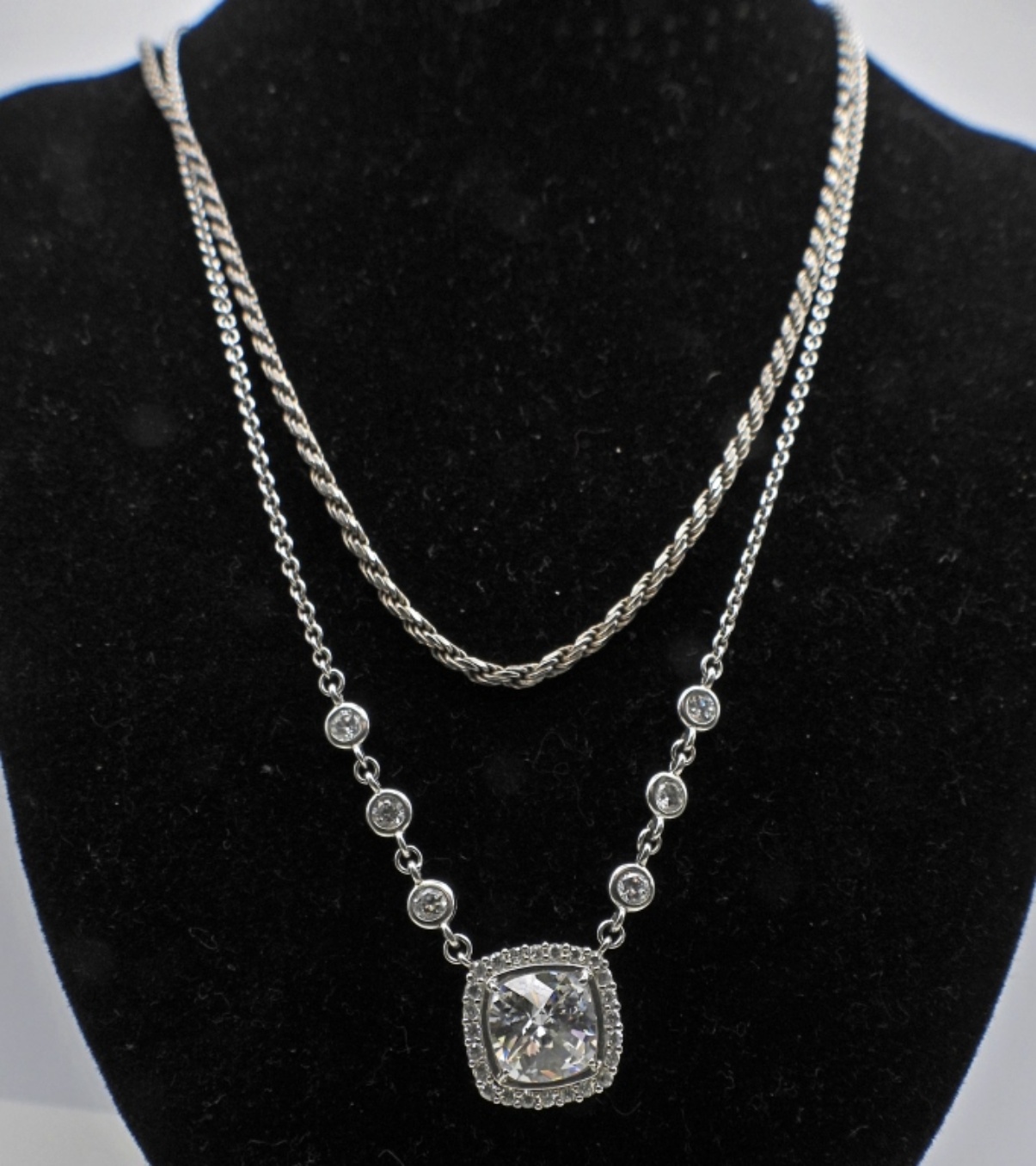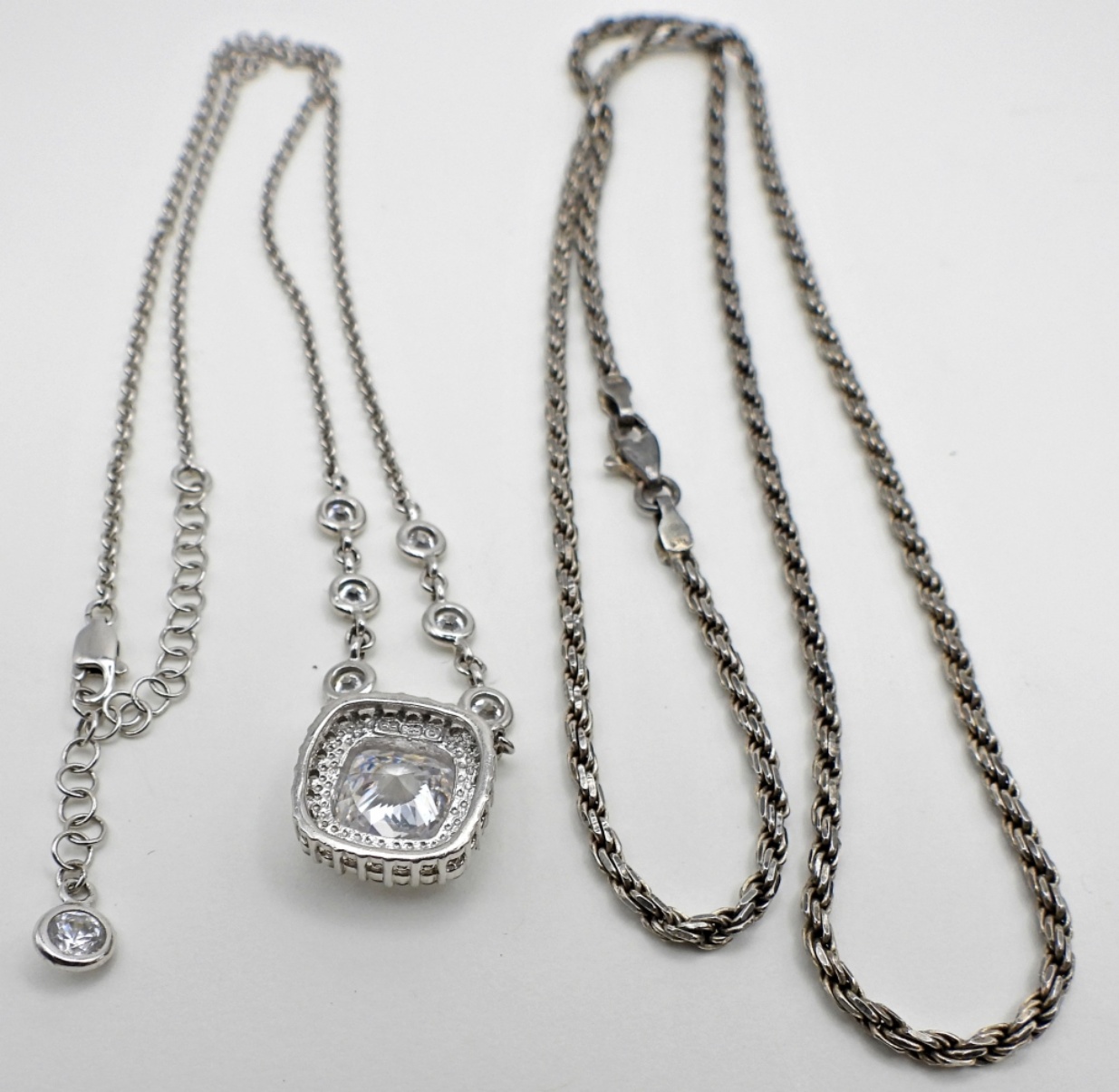 2 STERLING SILVER CHAINS, 1 WITH PENDANT 10.6DWT
