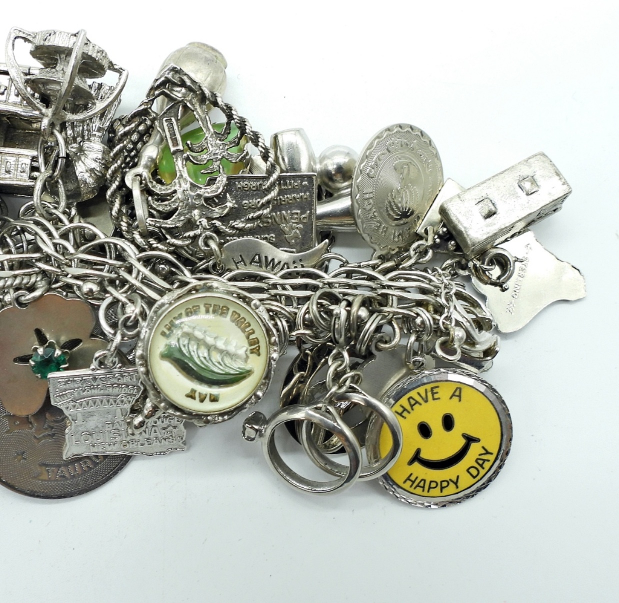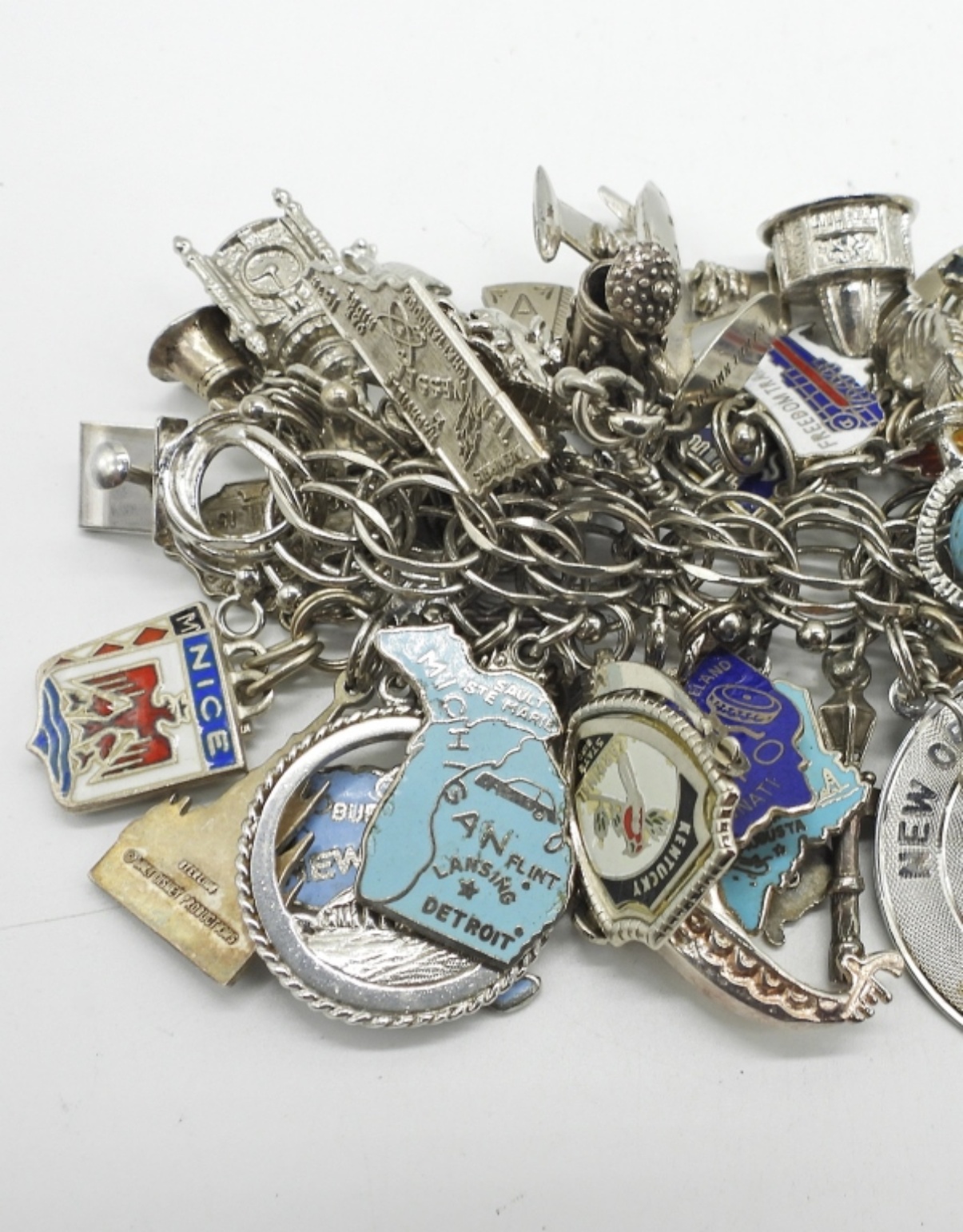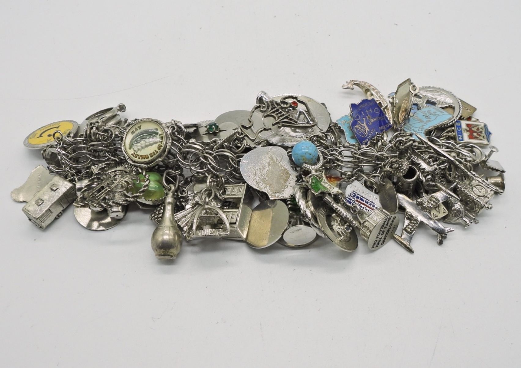 VINTAGE STERLING CHARM BRACELET. THIS IS FULL OF STERLING CHARMS. SO MANY CHARMS!