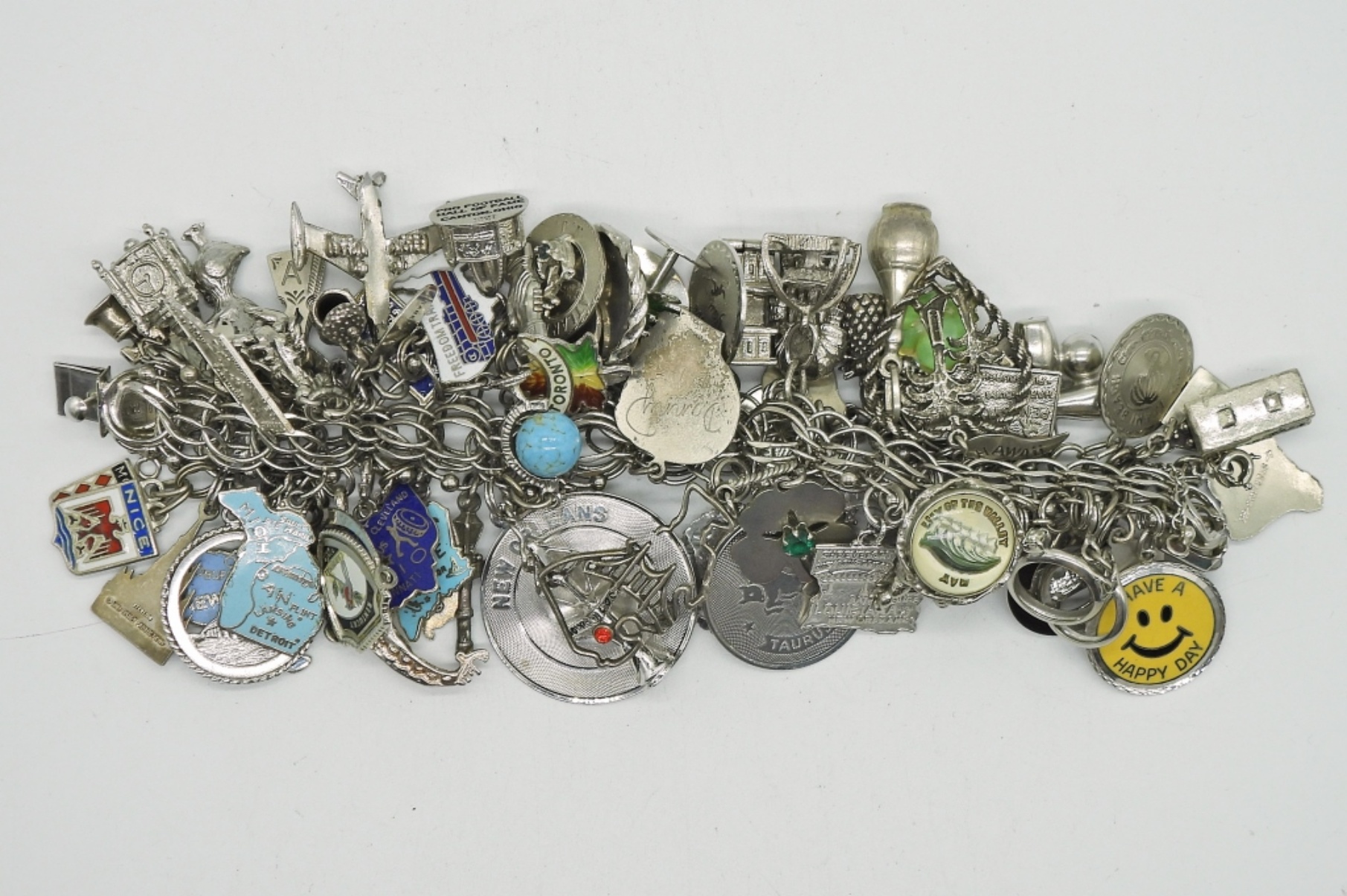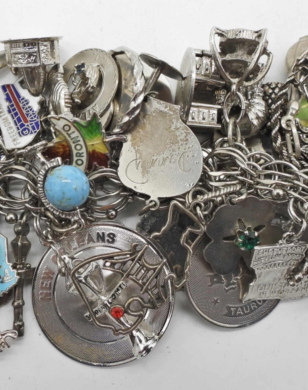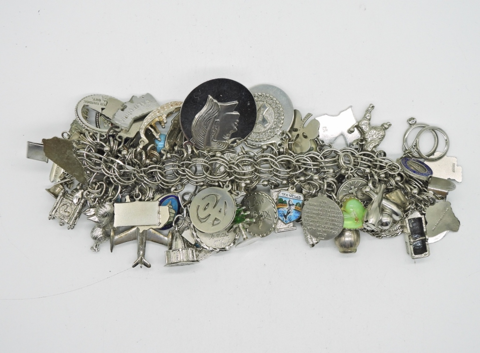 VINTAGE STERLING CHARM BRACELET. THIS IS FULL OF STERLING CHARMS. SO MANY CHARMS!