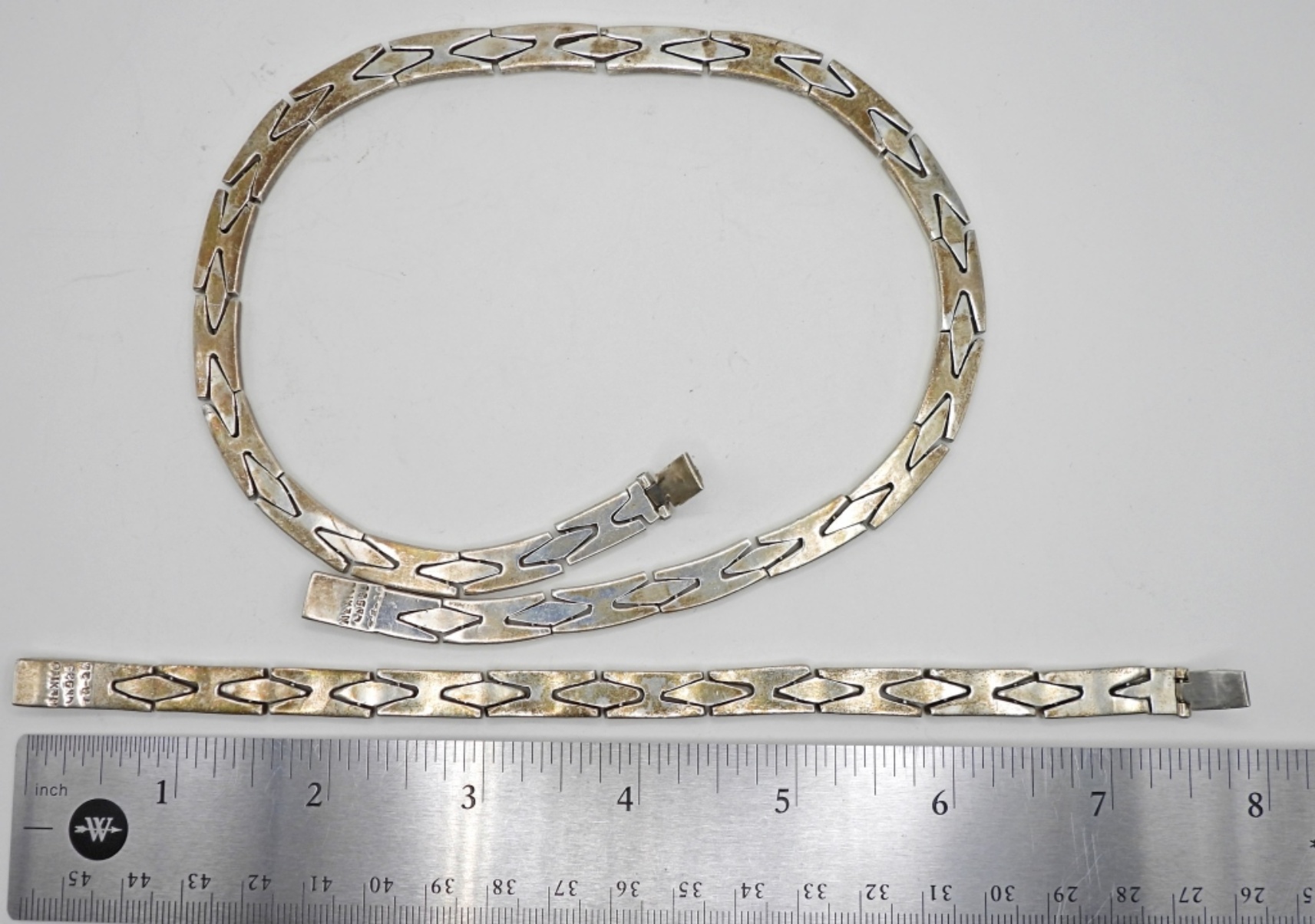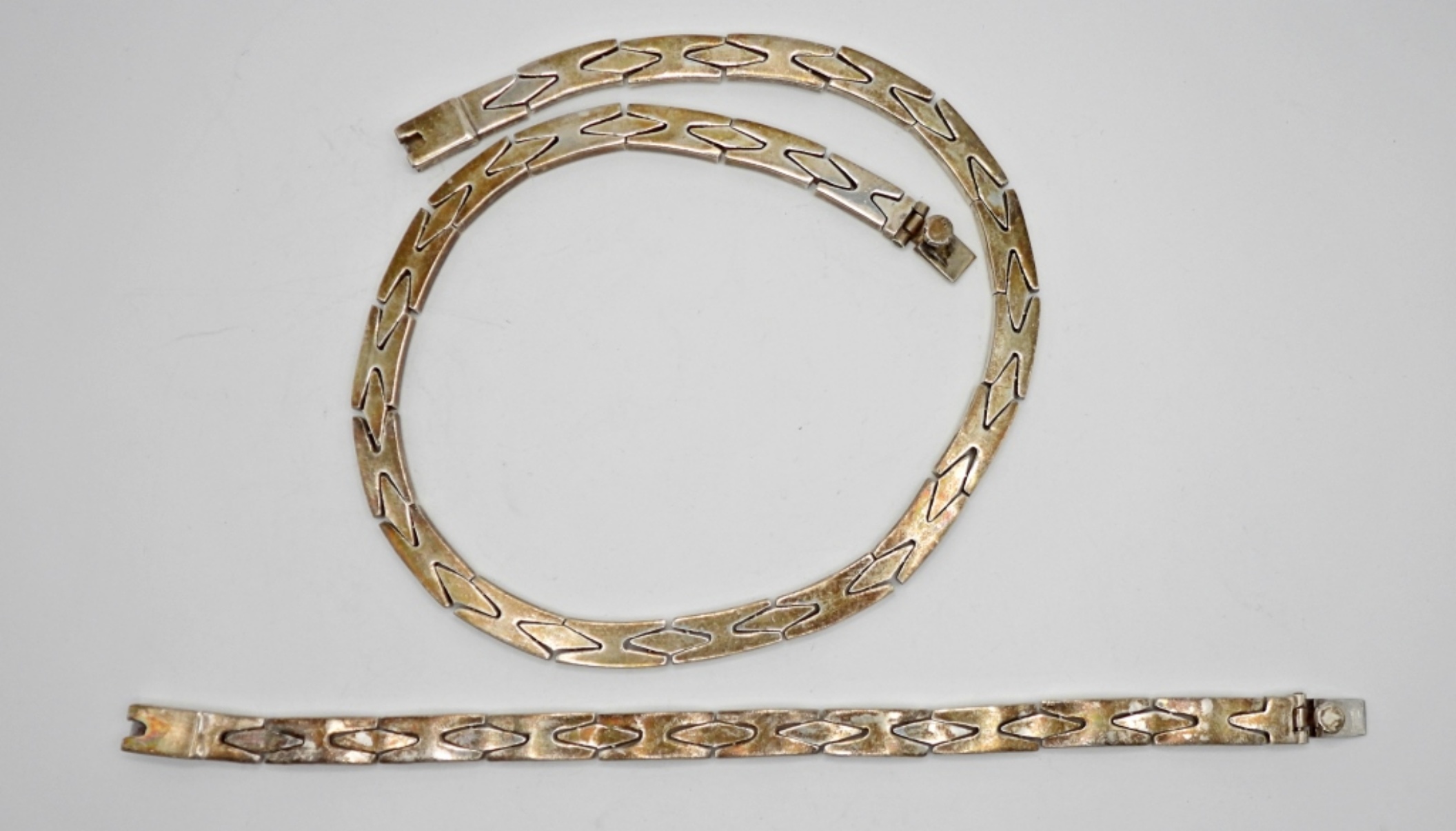 1 MEXICO STERLING SILVER MENS CHAIN 17INCH, 1 MEXICO MENS STERLING SILVER BRACELET 8INCH 86.2DWT
