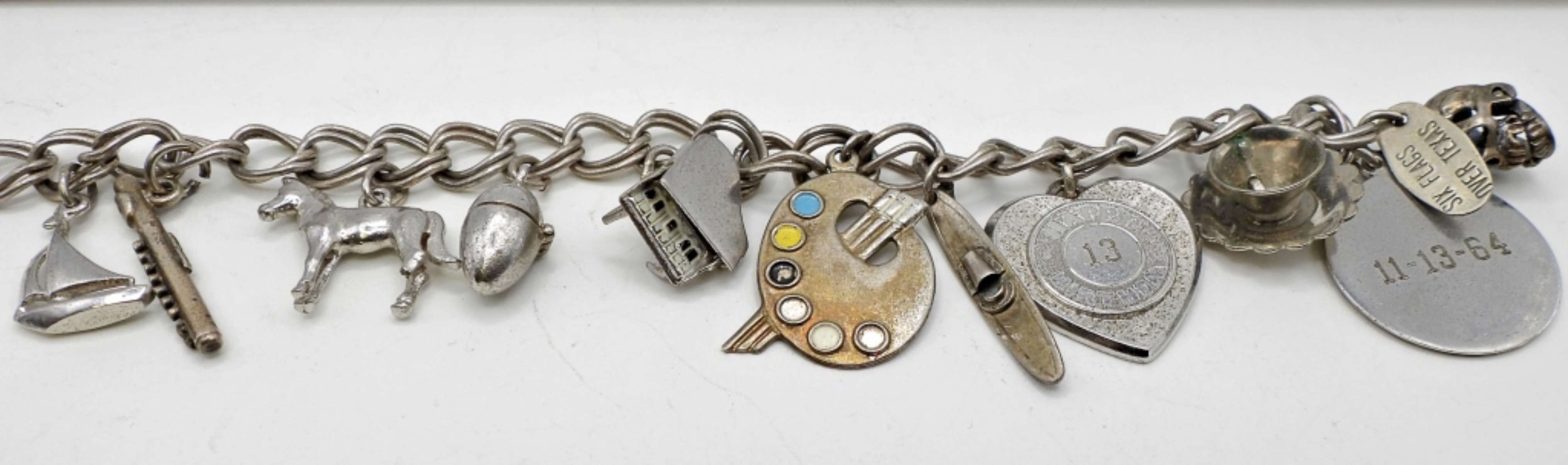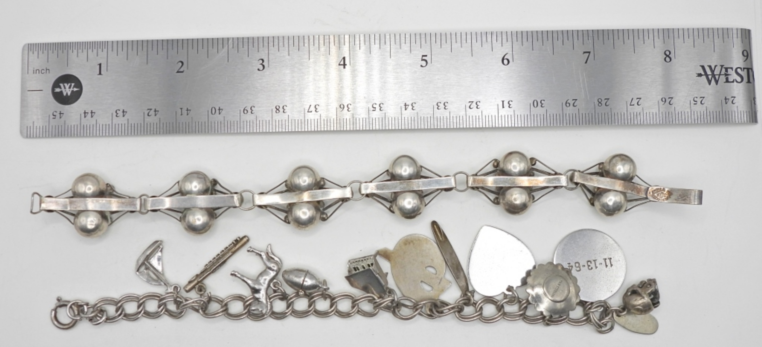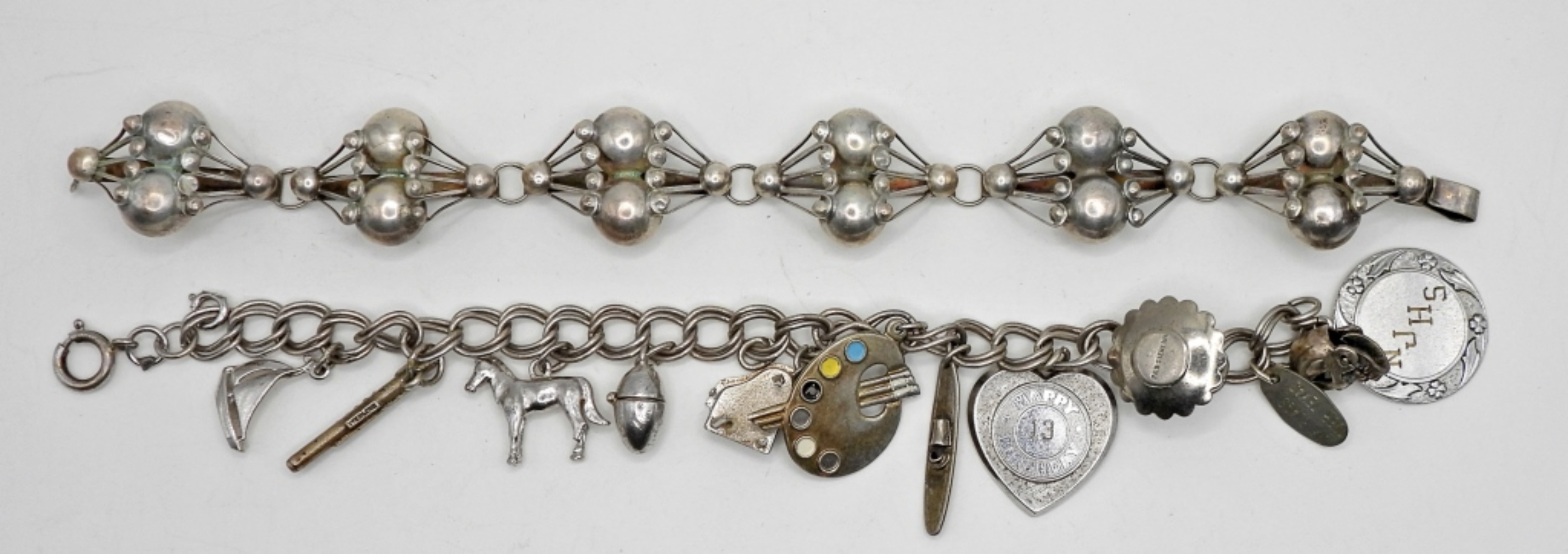 1 STERLING SILVER CHARM BRACELET 7INCH, 1 LADIES FASHION BRACELET 7.5INCH. 34.4DWT
