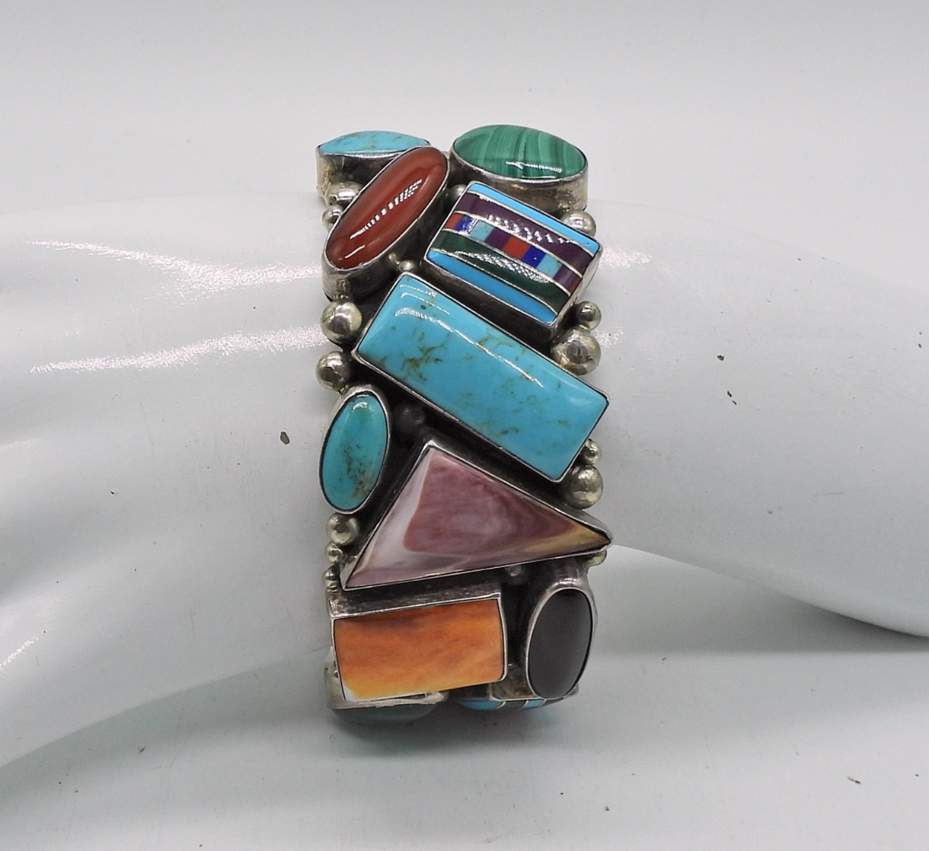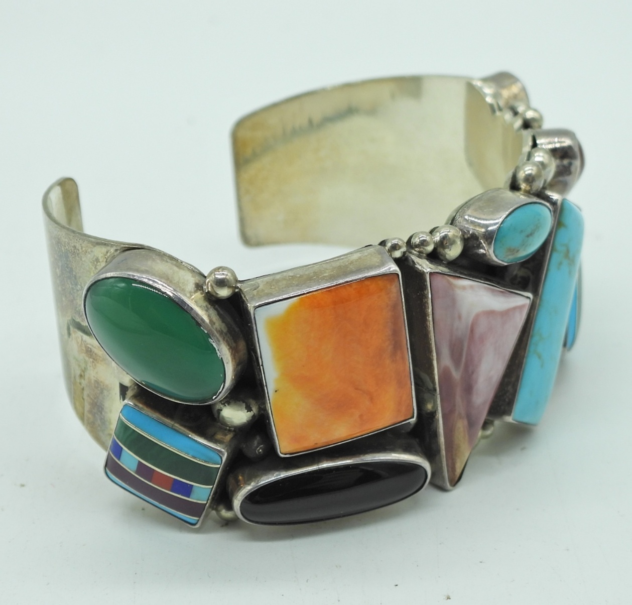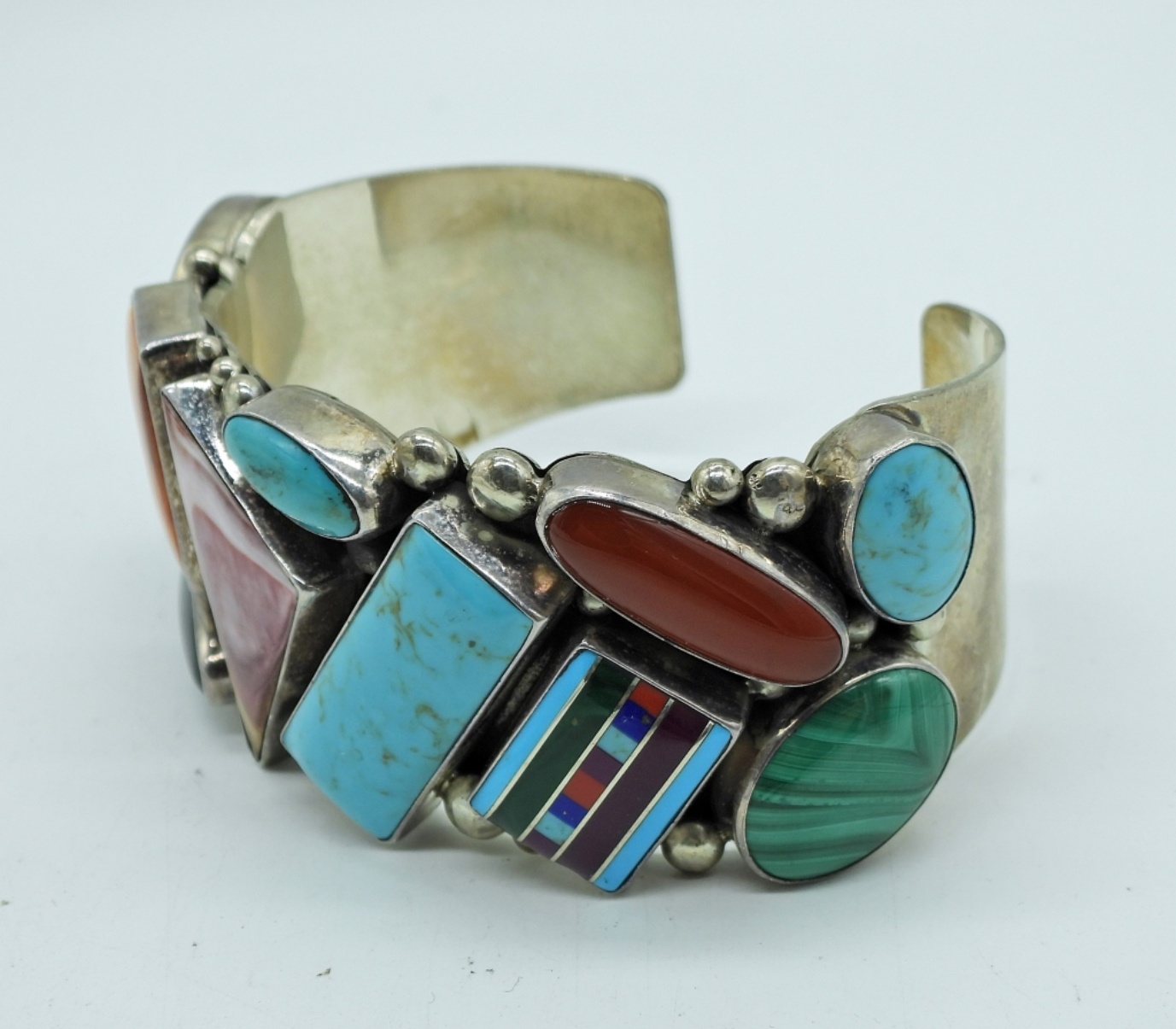 BEAUTIFUL STERLING SOUTHWEST GARCIA MULTI STONE CUFF BRACELET. 56.4 DWT