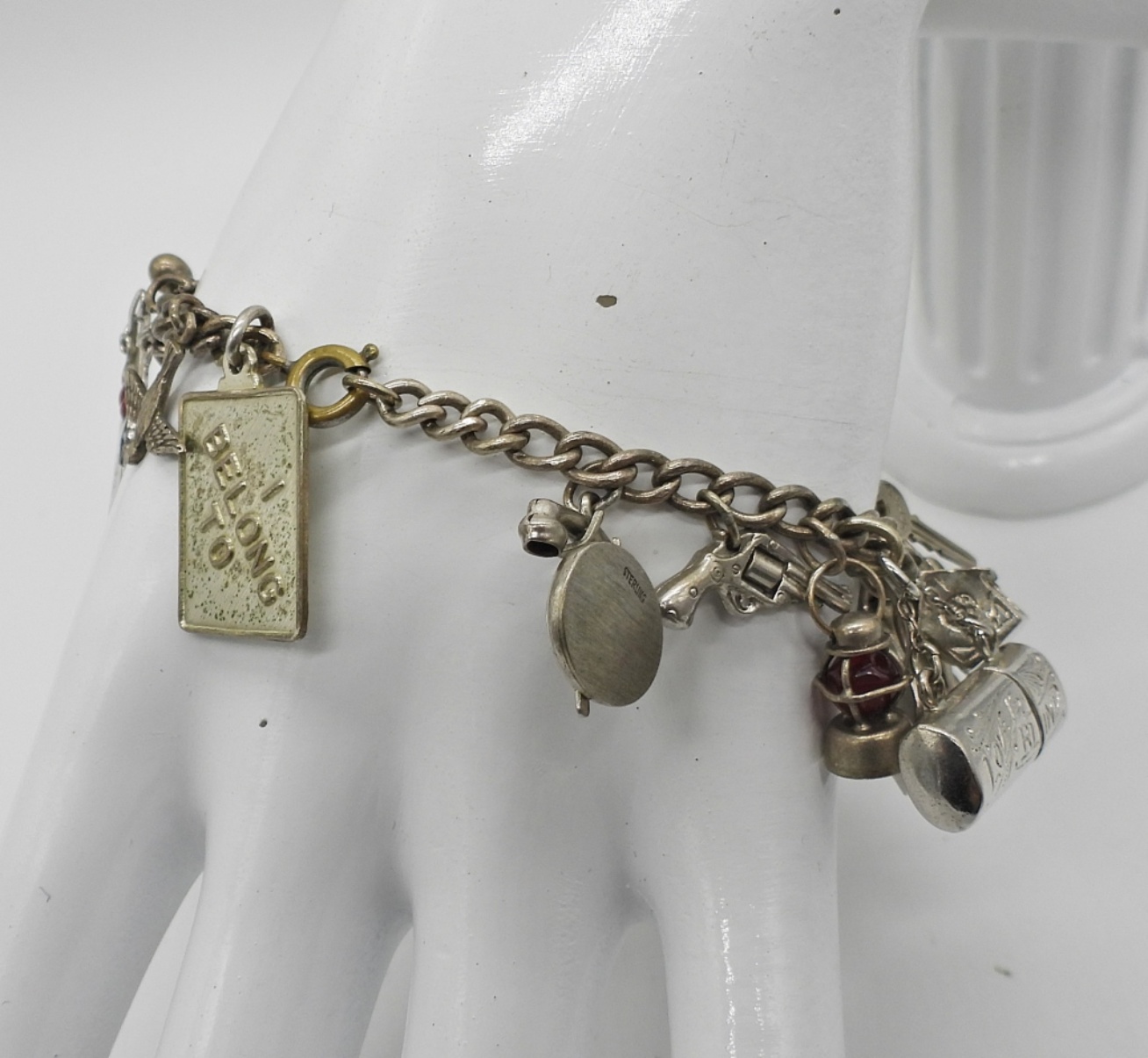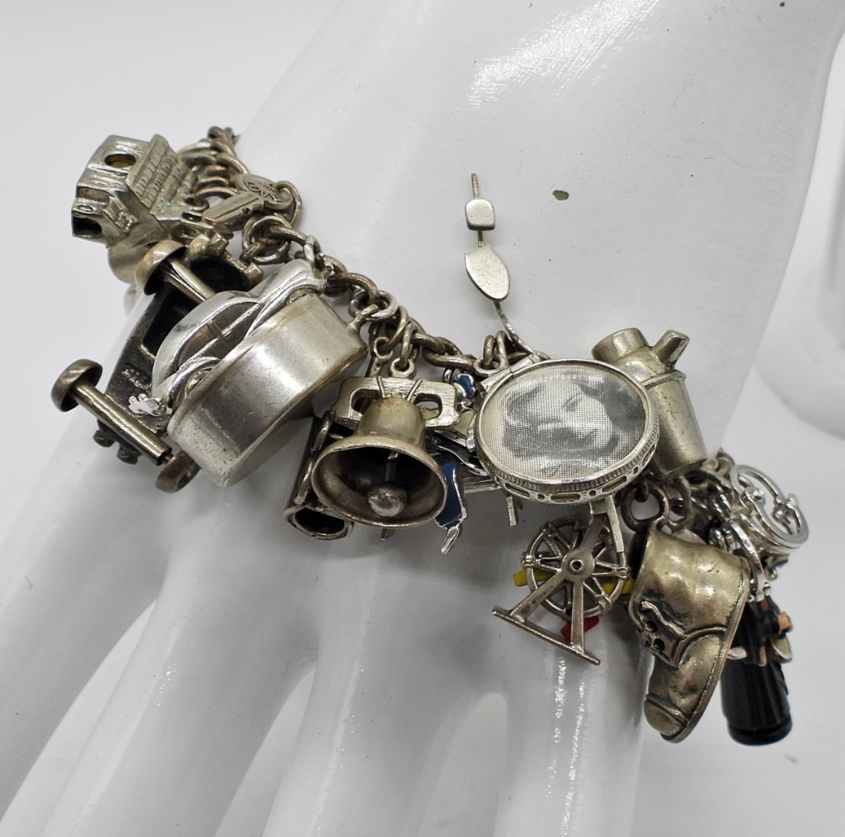 VINTAGE STERLING CHARM BRACELET, 7″ WITH 30 CHARMS, CIRCA 1963. 51 DWT