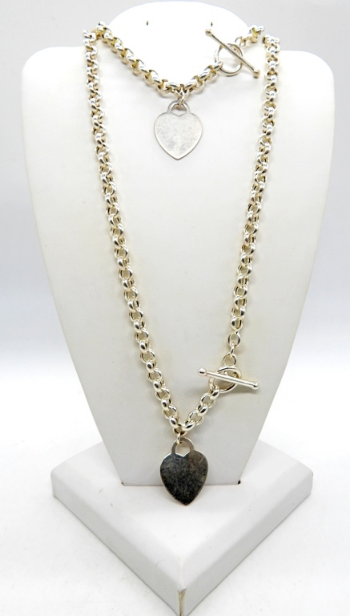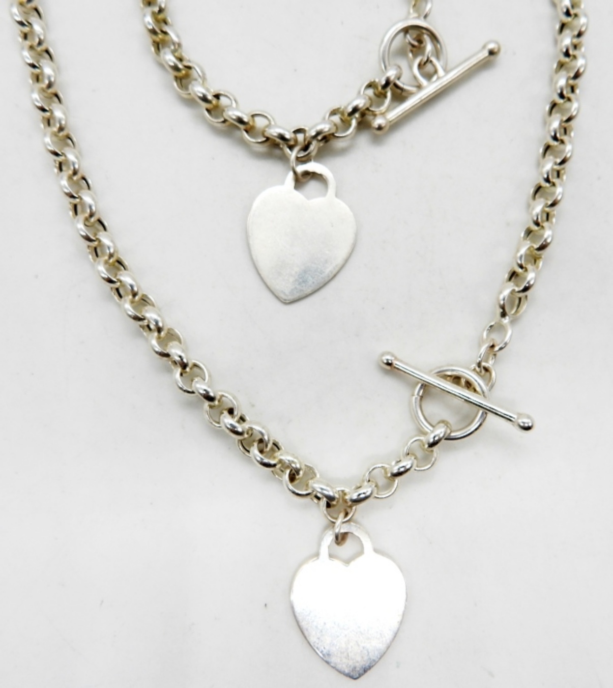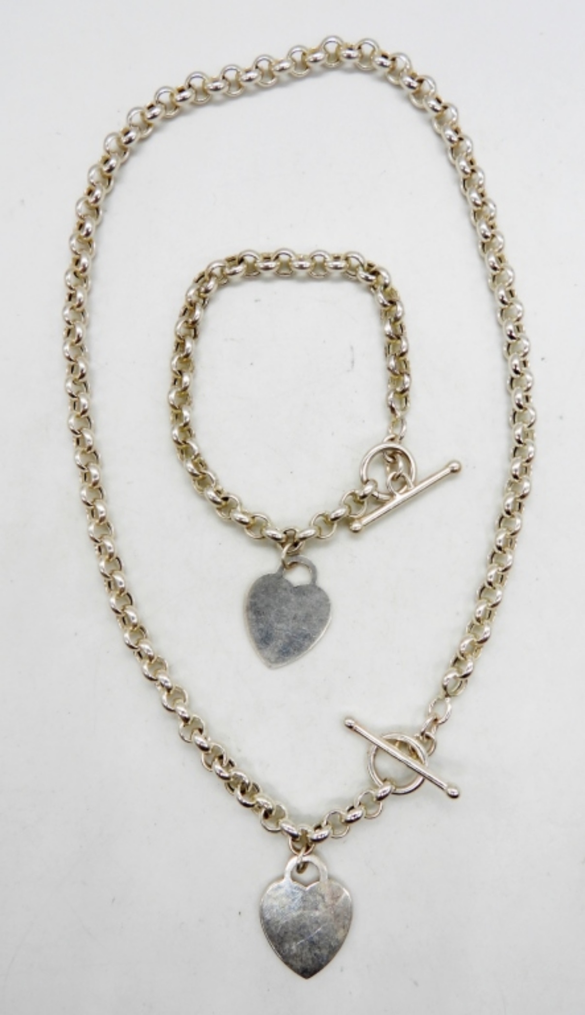 27DWT, BOTH STAMPED 925, NECKLACE 19″ LONG, BRACELET 8″ LONG, BOTH WITH TOGGLE CLASP
